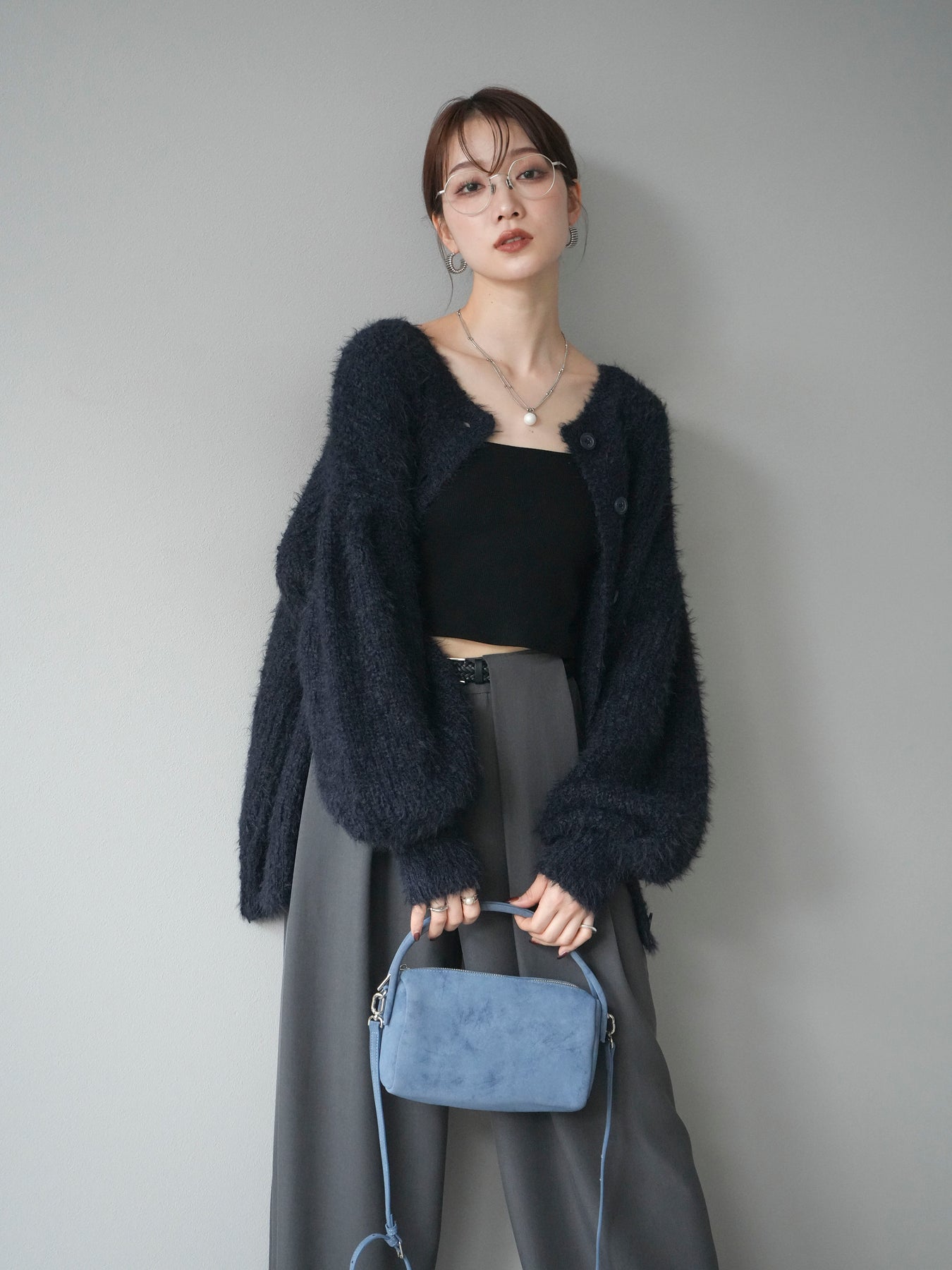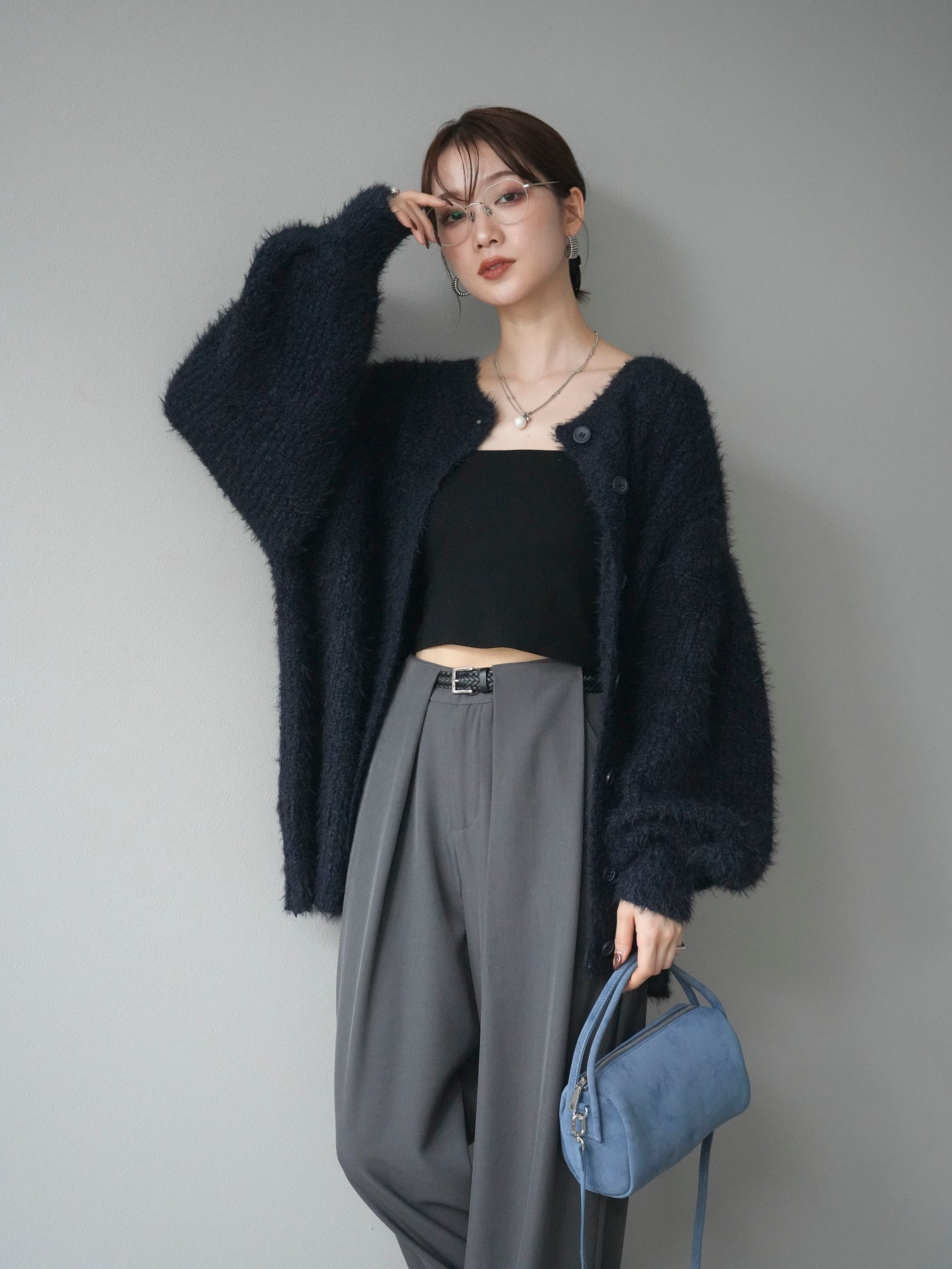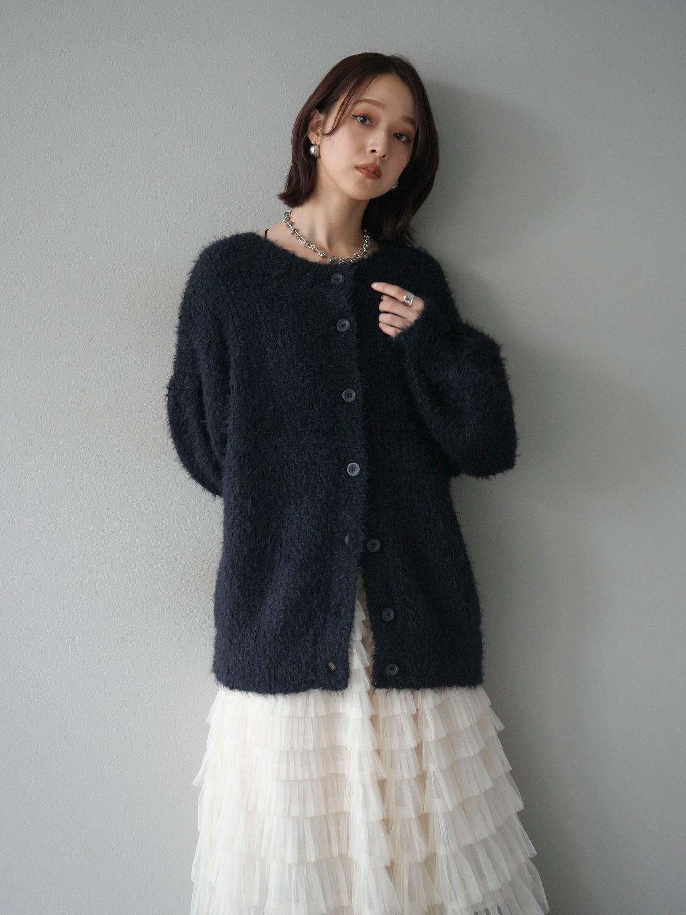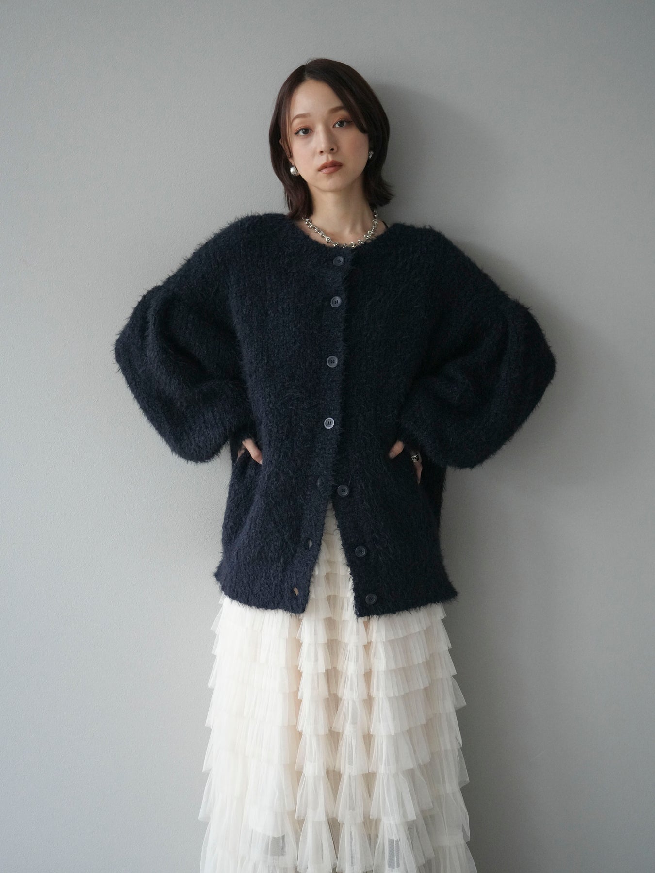 圓領開襟衫,採用柔軟、隨興的毛茸茸材質。它具有輕盈的感覺和女性化的輪廓,適合從日常穿著到特殊場合等各種場合。這件作品散發著迷人和時尚的感覺。 ※除下裝、吊帶背心(內衣)以外的所有商品均不包含內衣。