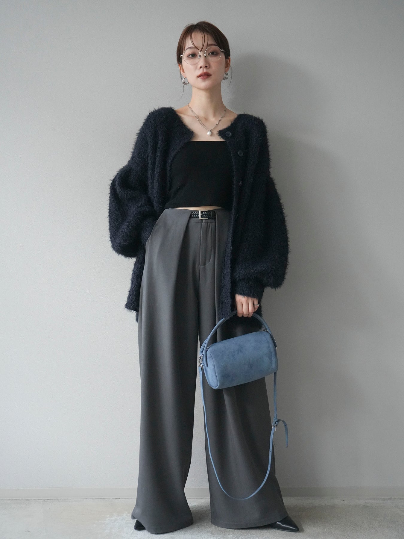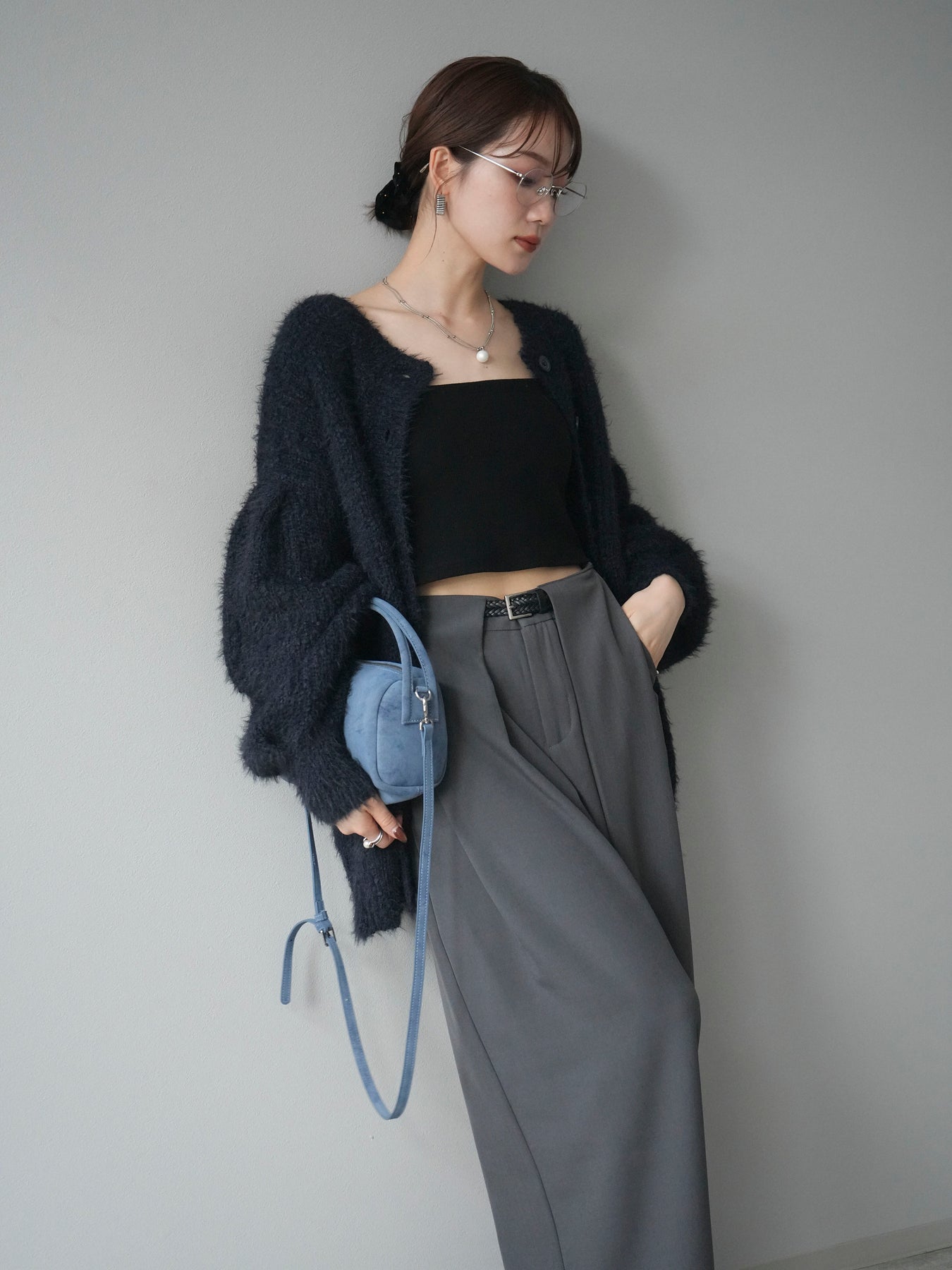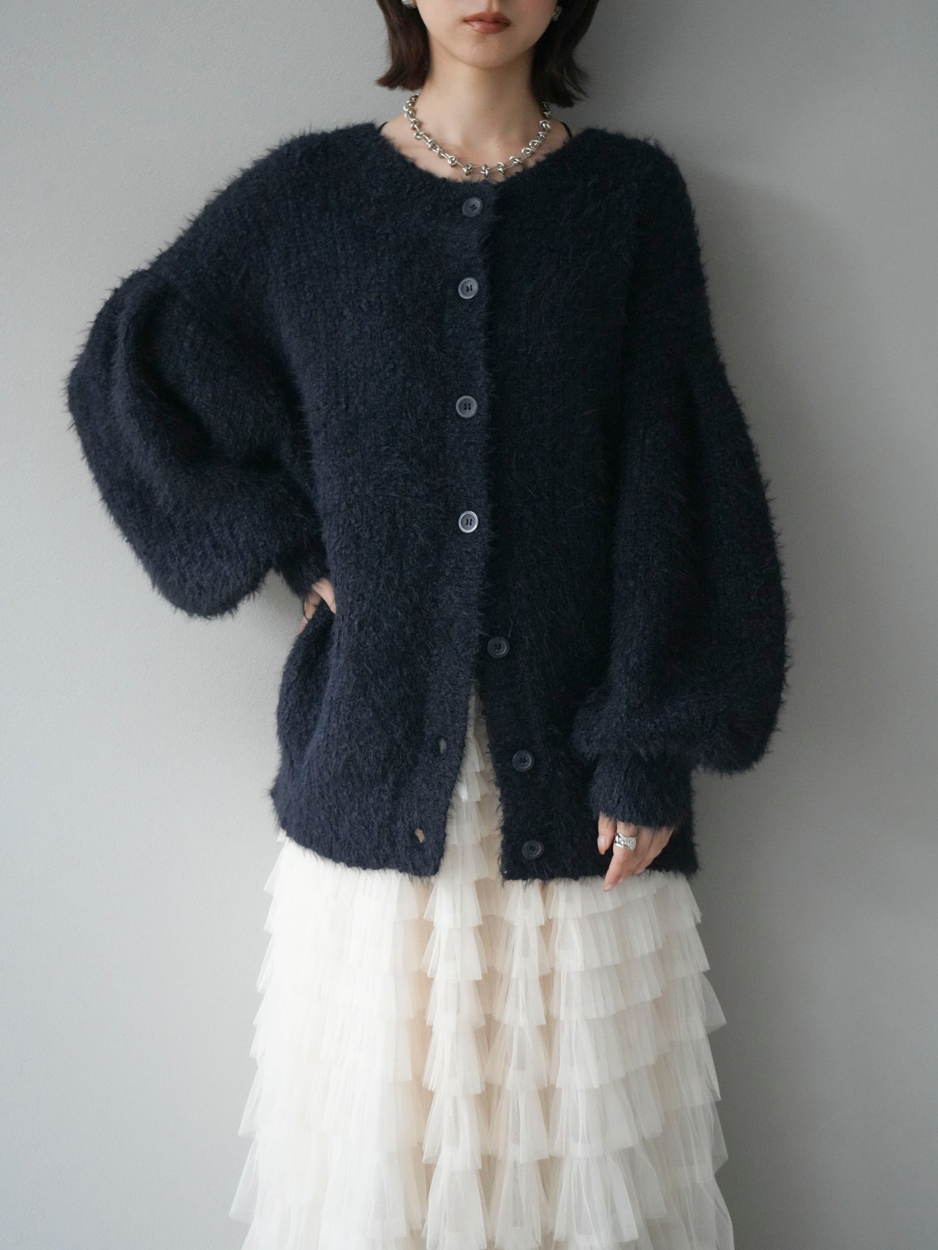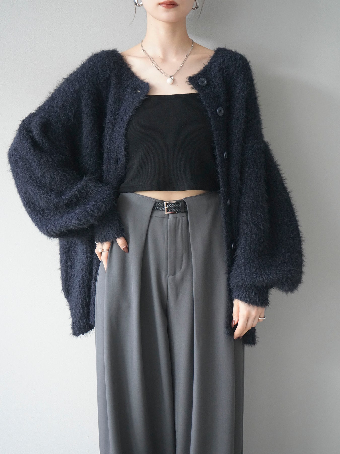 圓領開襟衫,採用柔軟、隨興的毛茸茸材質。它具有輕盈的感覺和女性化的輪廓,適合從日常穿著到特殊場合等各種場合。這件作品散發著迷人和時尚的感覺。 ※除下裝、吊帶背心(內衣)以外的所有商品均不包含內衣。