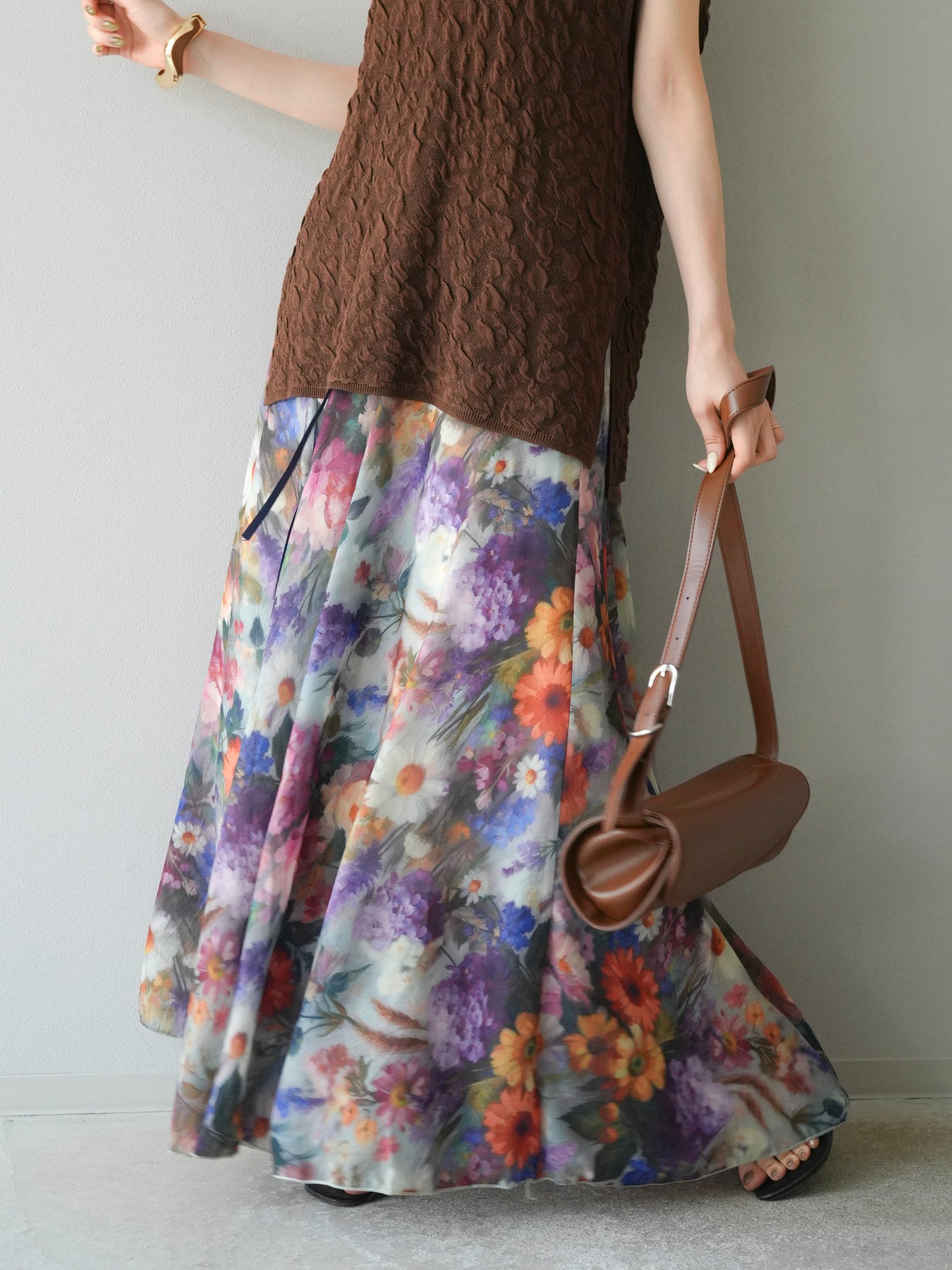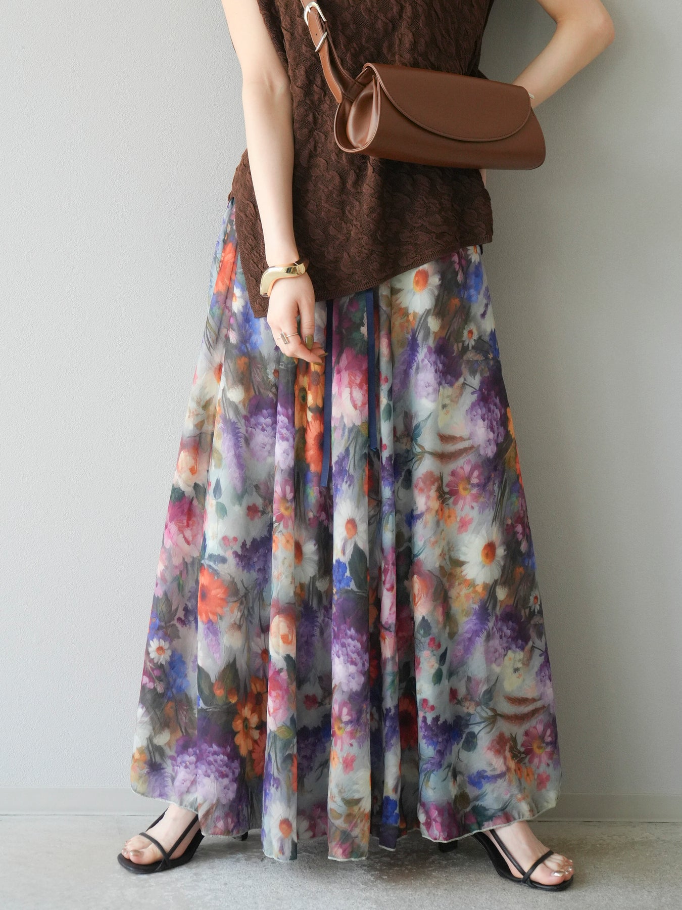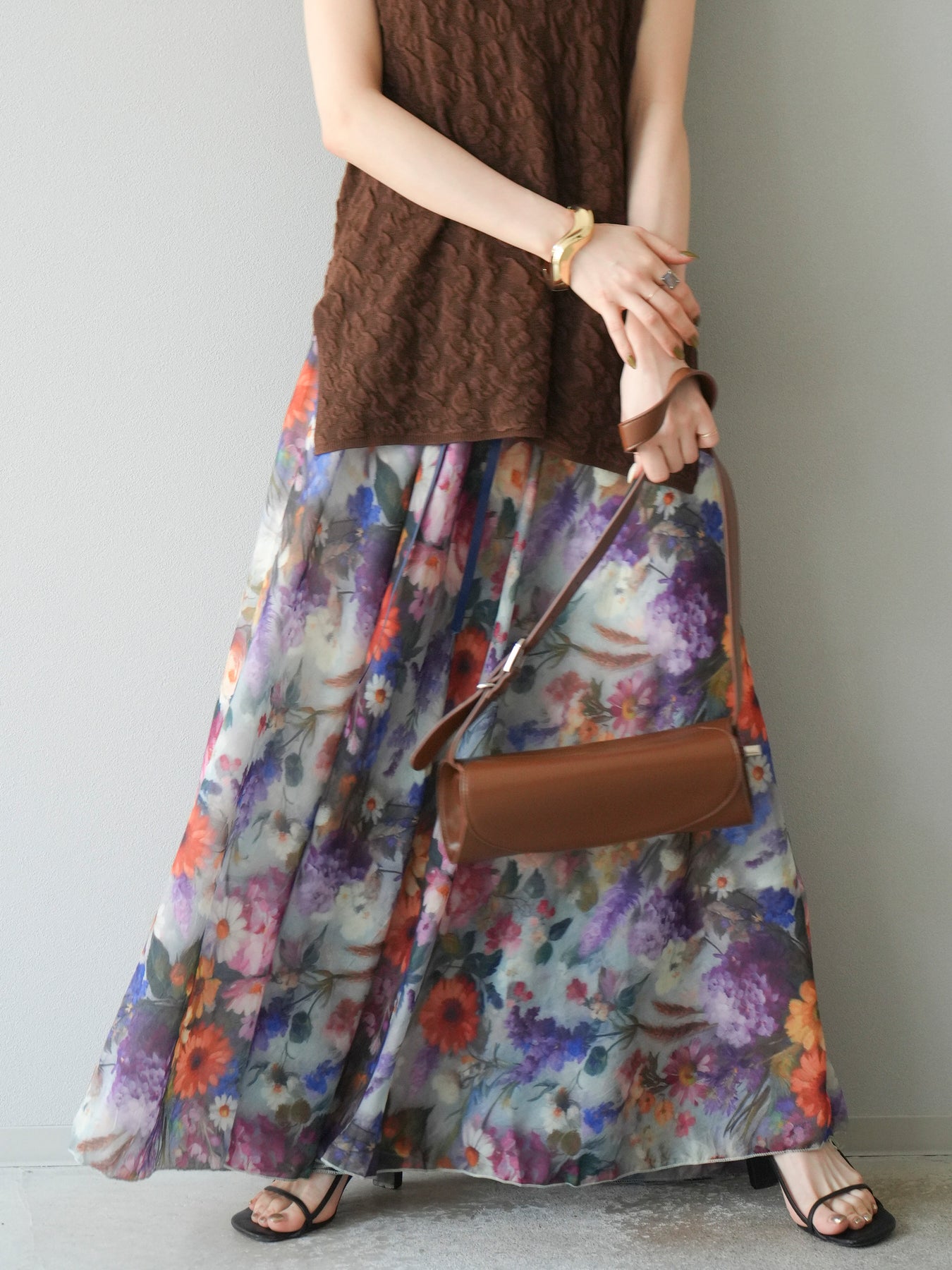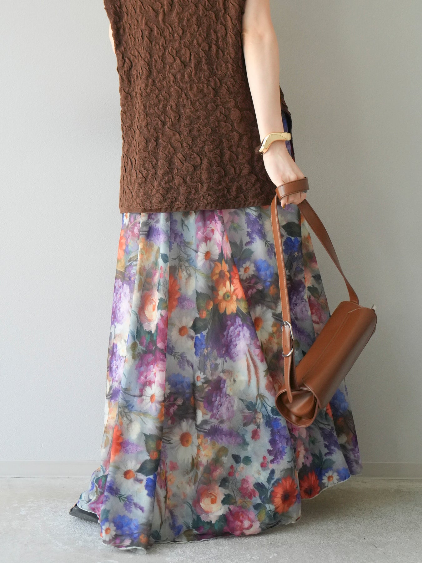 用墊圈材料製成的喇叭裙,具有各種華麗而醒目的圖案。 輕盈的質感和適度的紋理營造出自然的外觀,柔和的輪廓凸顯了女性氣質。 寬大的下擺隨著每個動作擺動,為您的外觀增添休閒而迷人的氣息。 鬆緊皮帶讓穿著舒適,非常適合日常使用。 可與 T 卹或背心隨意搭配,或搭配襯衫。 這款印花裙是適合一年四季穿著的時尚單品。