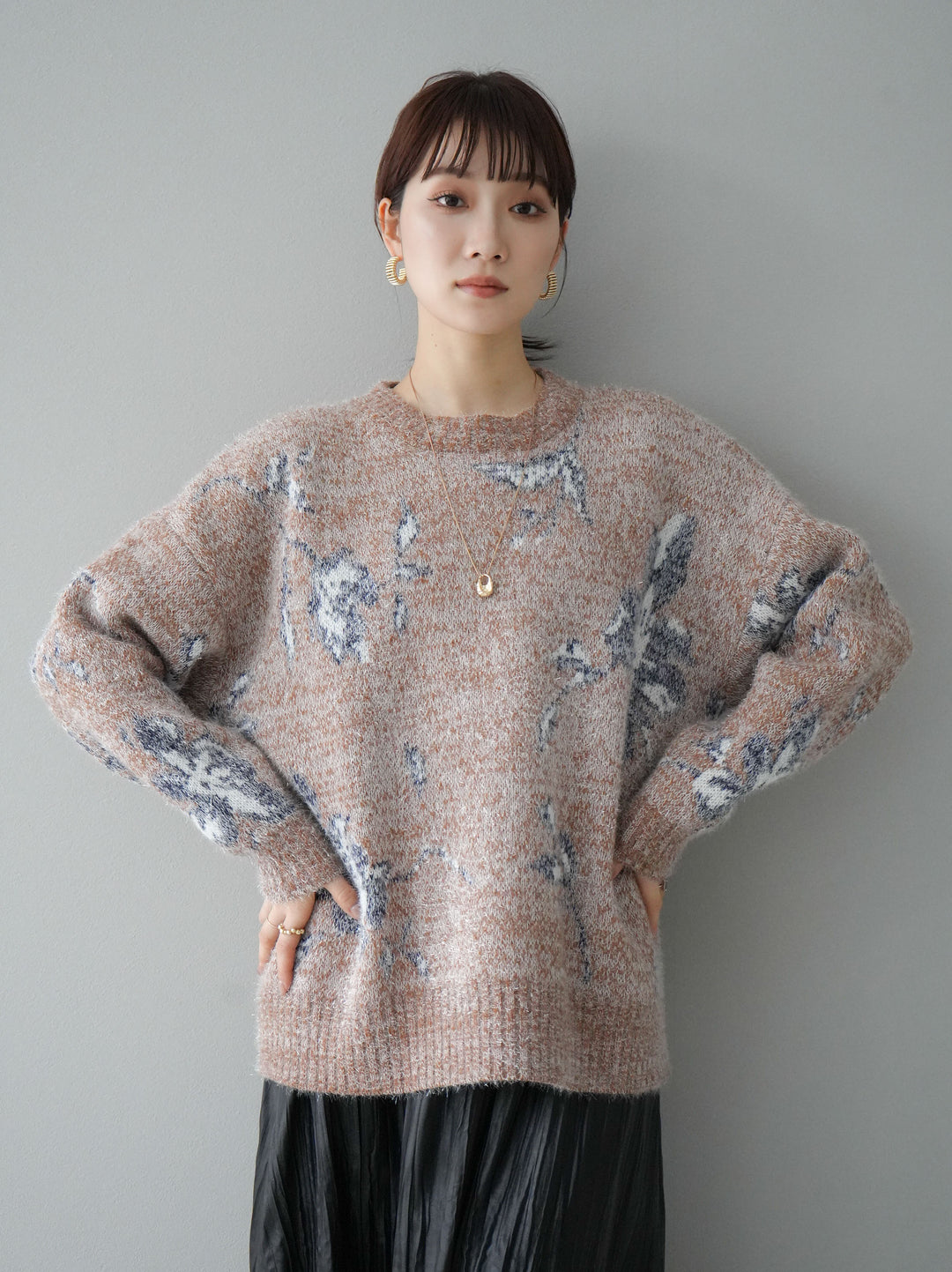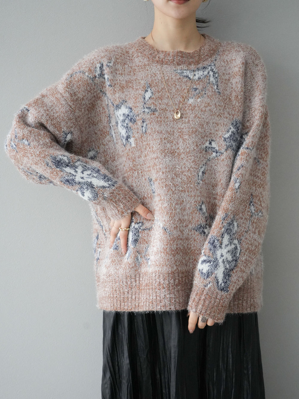 [預訂] 花提花金銀絲針織套頭衫/棕色