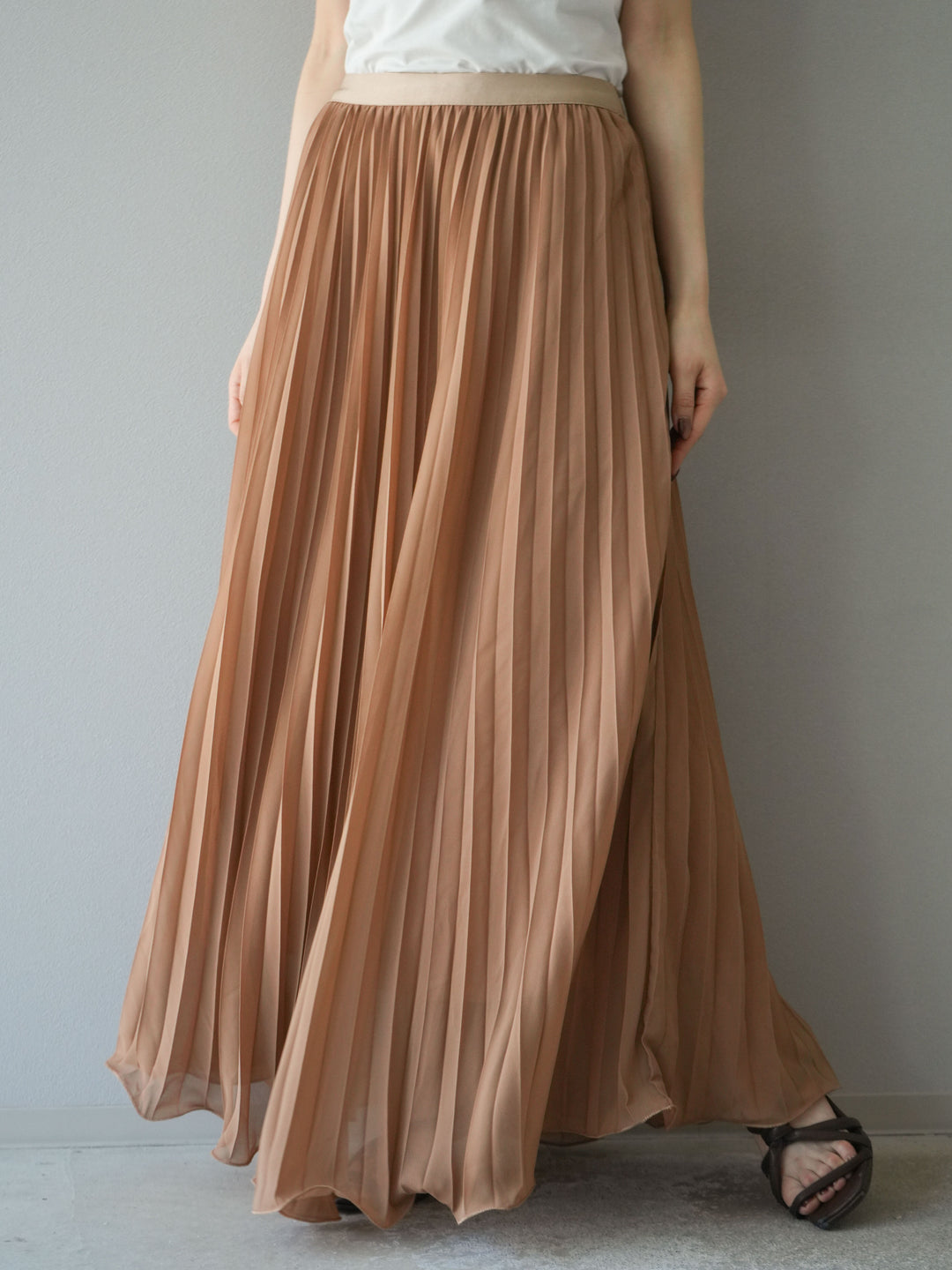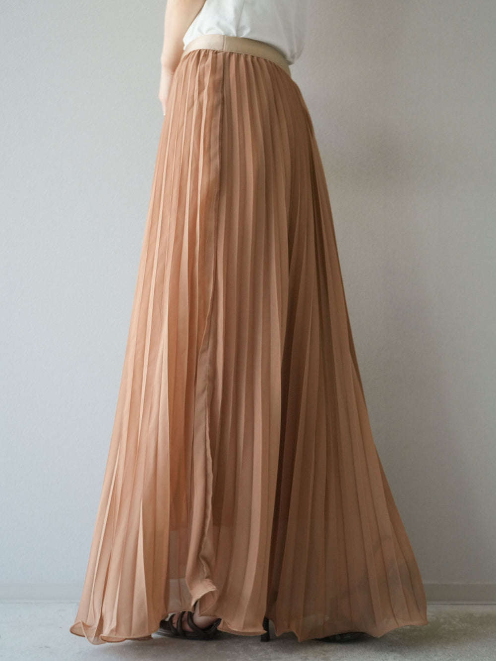 [予約]シフォンプリーツパイピングスカート/キャメル