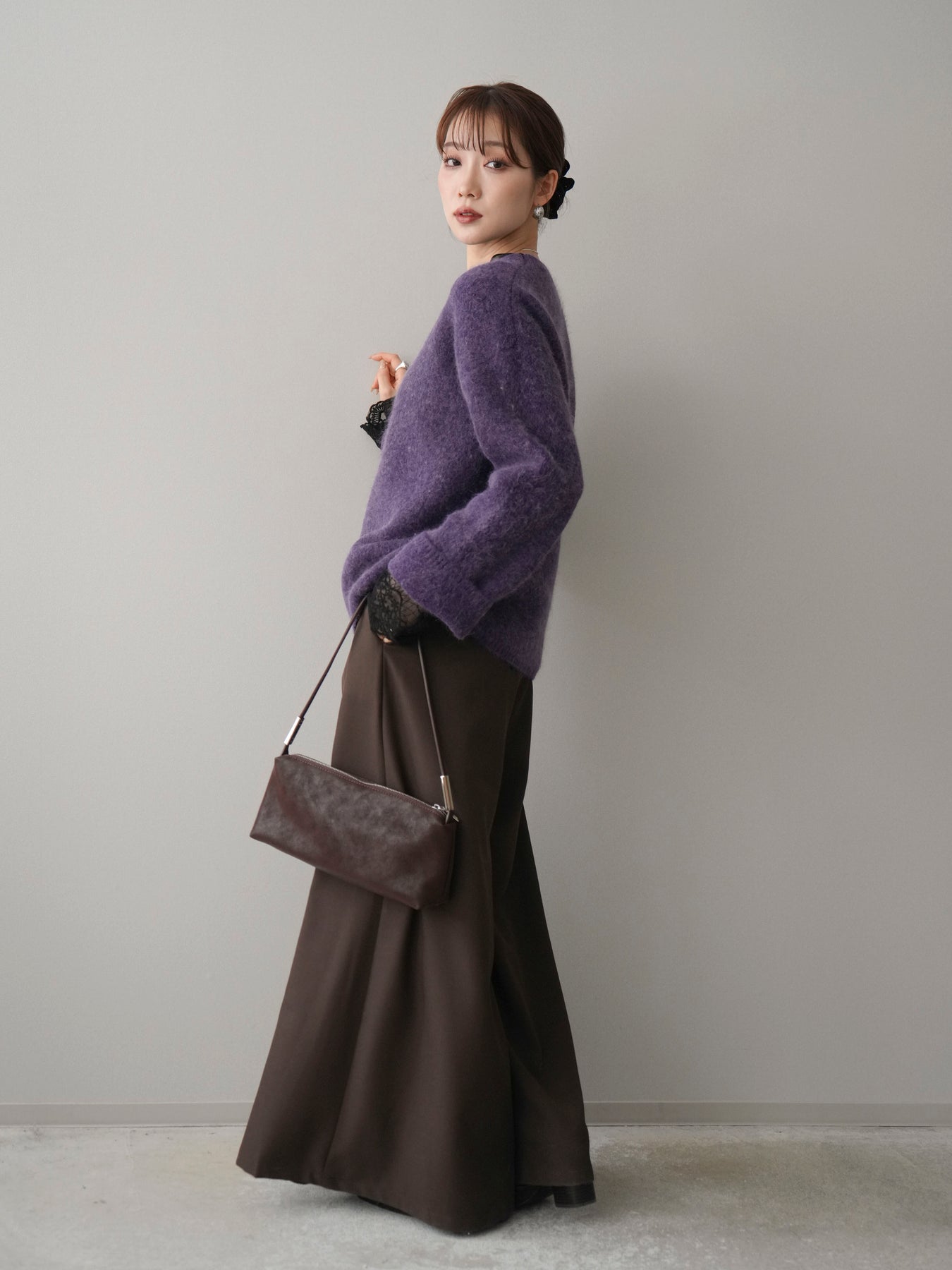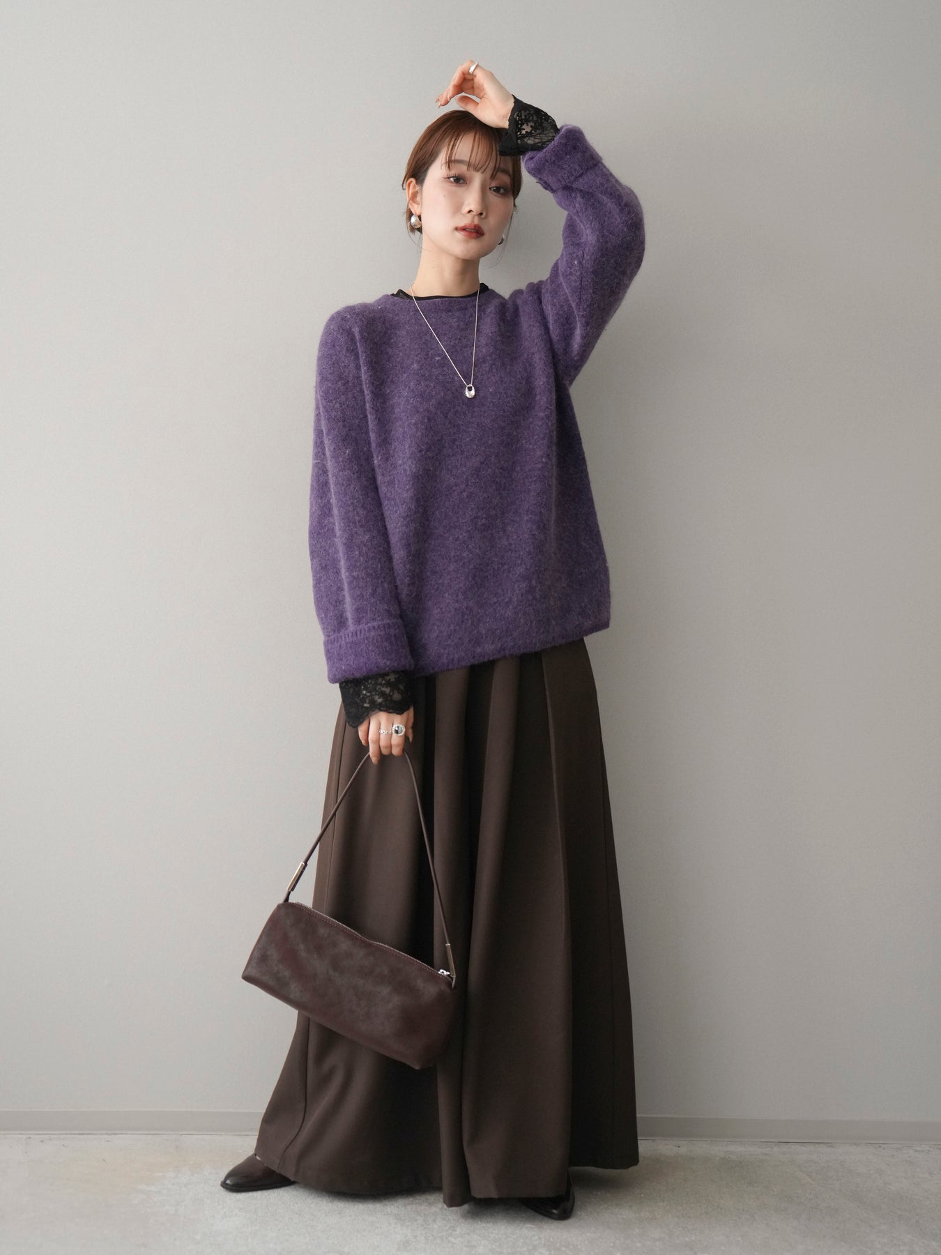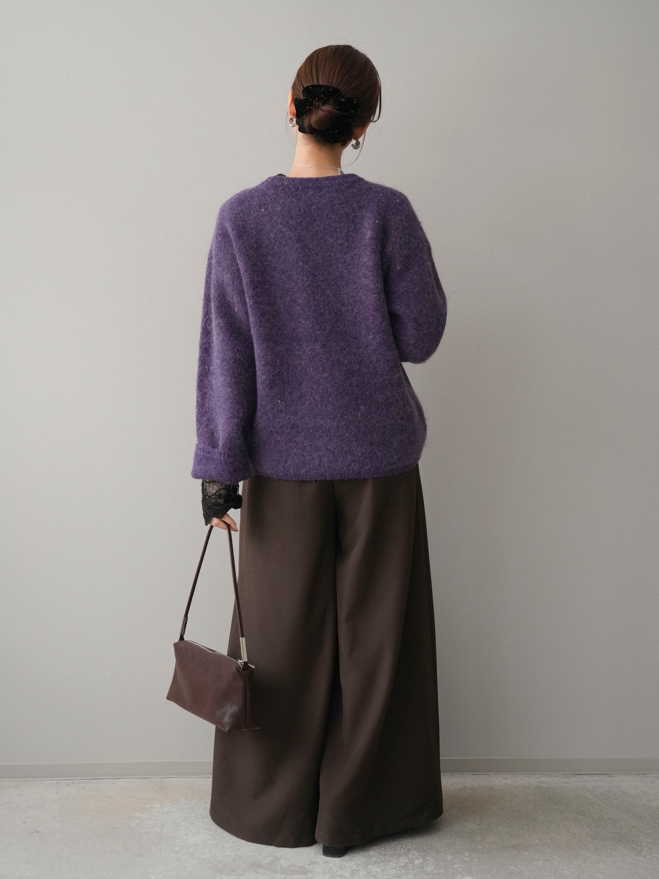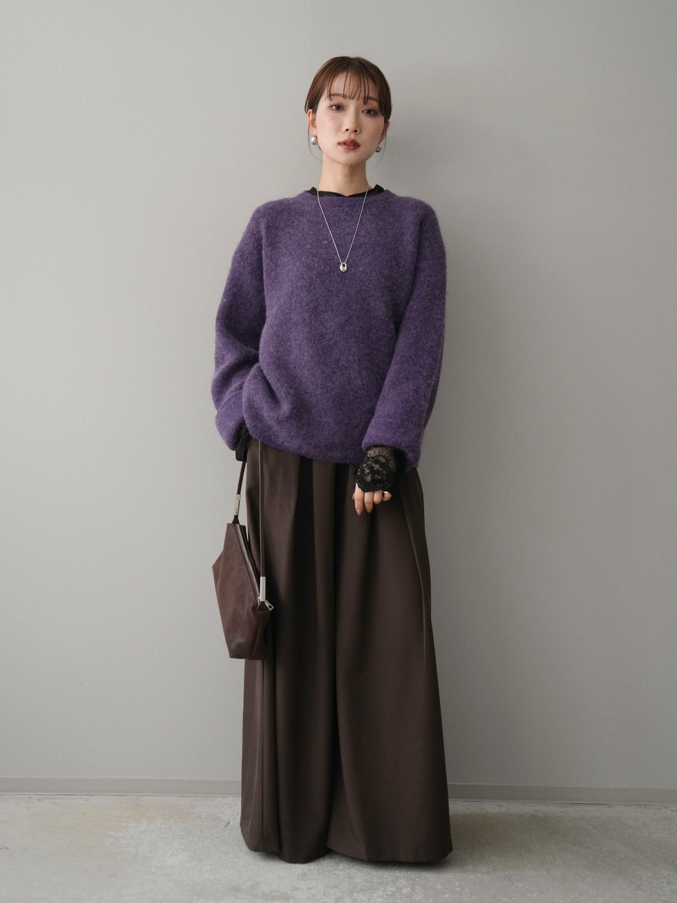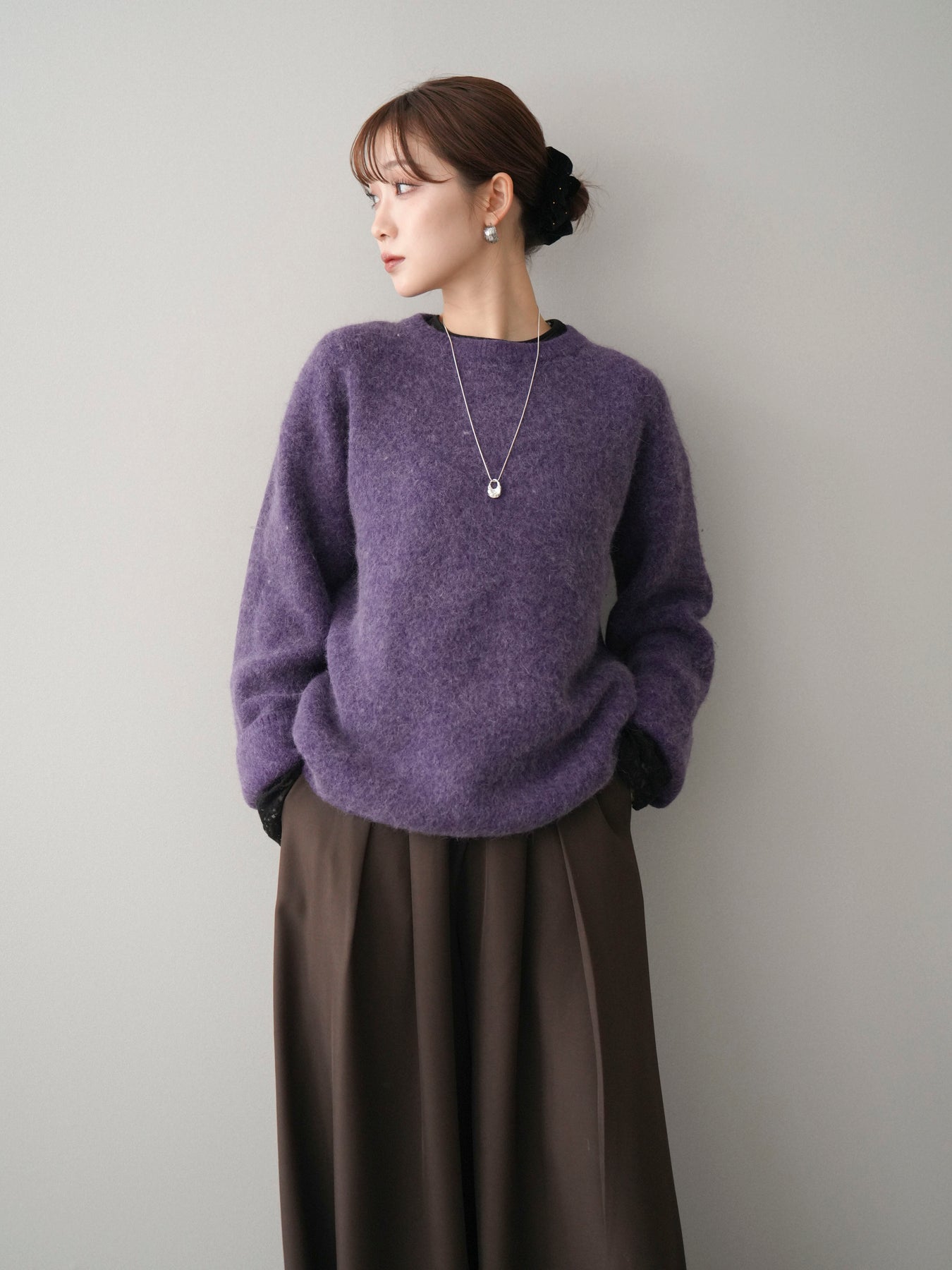 ふんわりとした起毛感が魅力のアンゴラタッチニットプルオーバー。 やさしく包み込まれるような風合いで、シーズンムードをぐっと高めてくれる一着です。 ベーシックなクルーネックデザインは首元をすっきりと見せ、どんなスタイリングにも自然になじむのがポイント。 程よいボリューム感のあるシルエットで、シンプルながらも存在感があり、1枚で着てもレイヤードしてもバランス良く決まります。 デイリーコーデからきれいめスタイルまで幅広く活躍する、着回し力の高いニットです。