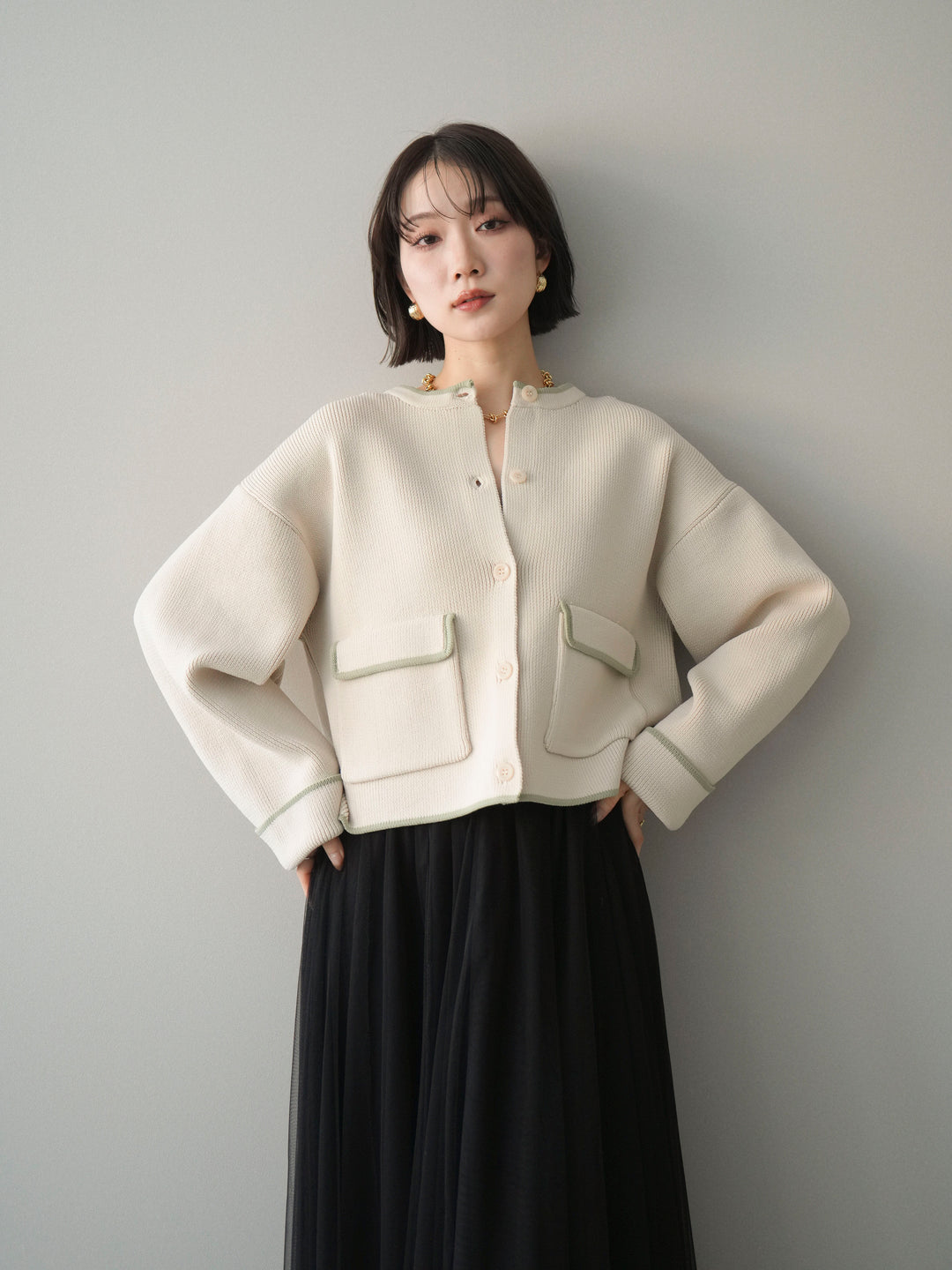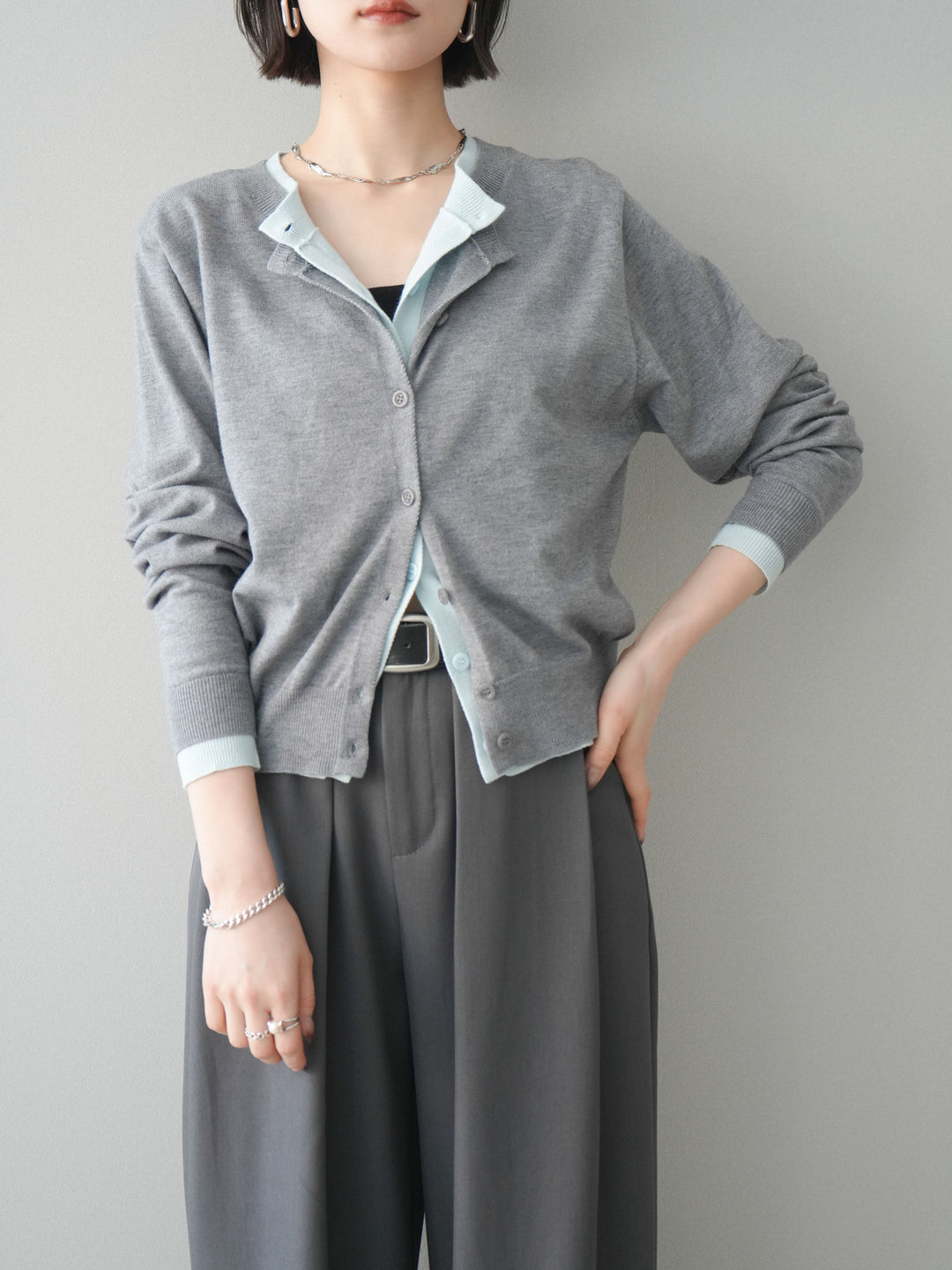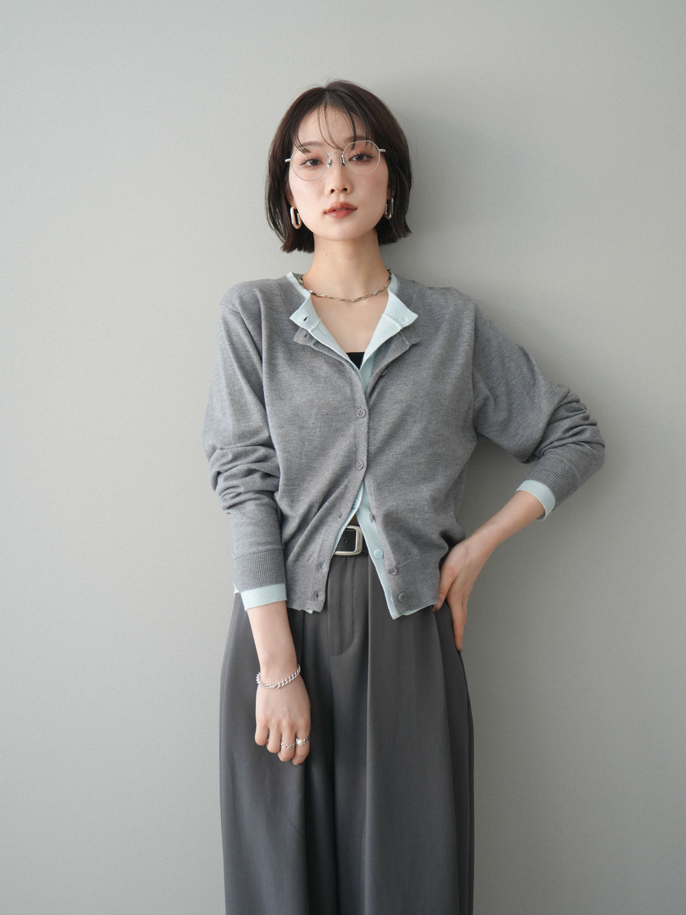 [SET]配色レイヤードニットカーディガン+選べるアクセセット(2set)