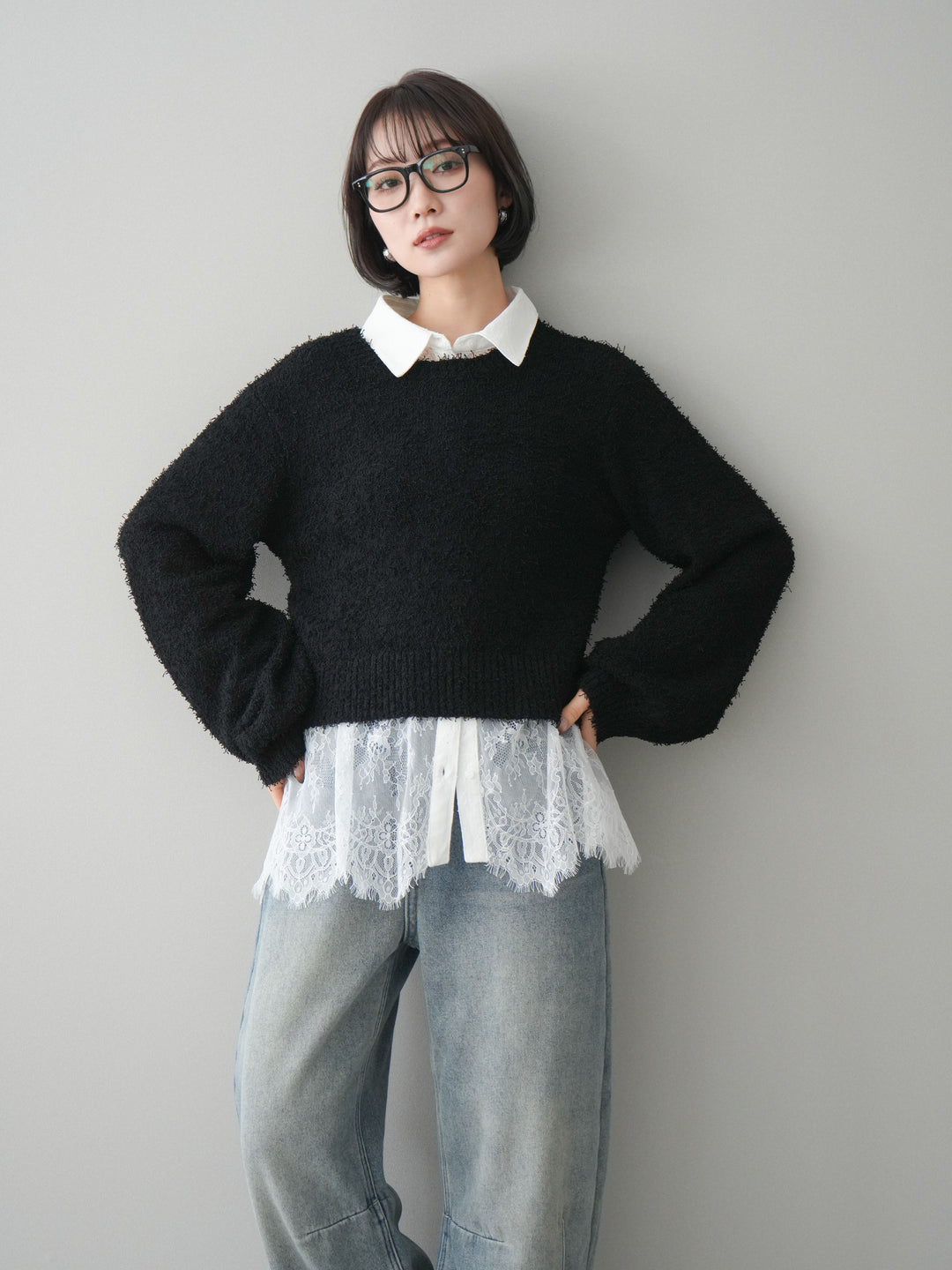 [SET]シャツドッキングミックスネップニットプルオーバー+選べるアクセセット(2set)