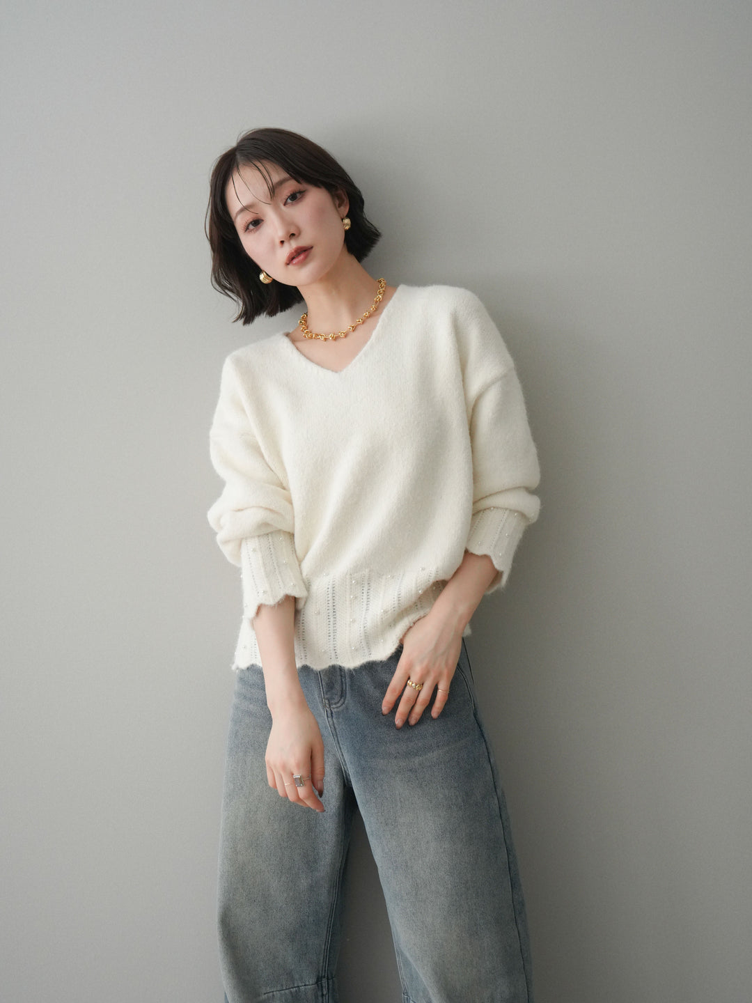 [SET]パールフリルリブヘムニットプルオーバー+選べるアクセセット(2set)