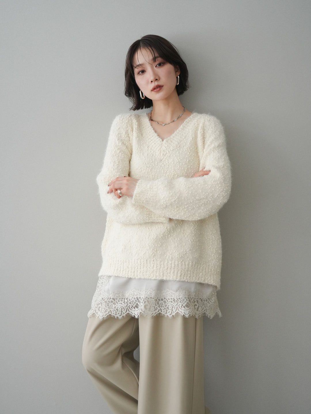 [SET]シャギーデザインニットプルオーバー+選べるアクセセット(2set)