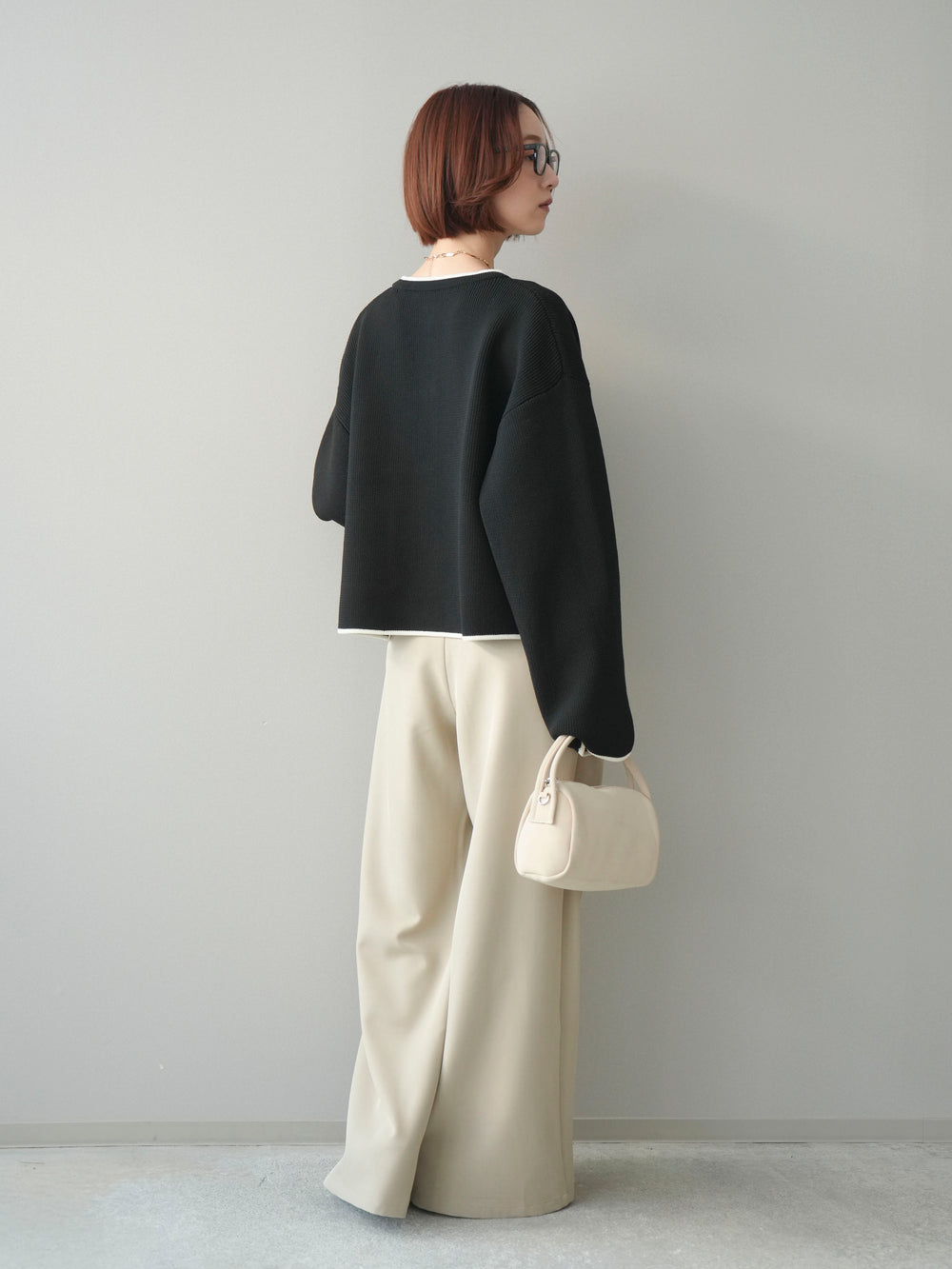 [SET]ポリエステル配色ニットカーディガン+ウエストレースタックワイドパンツ(2set)