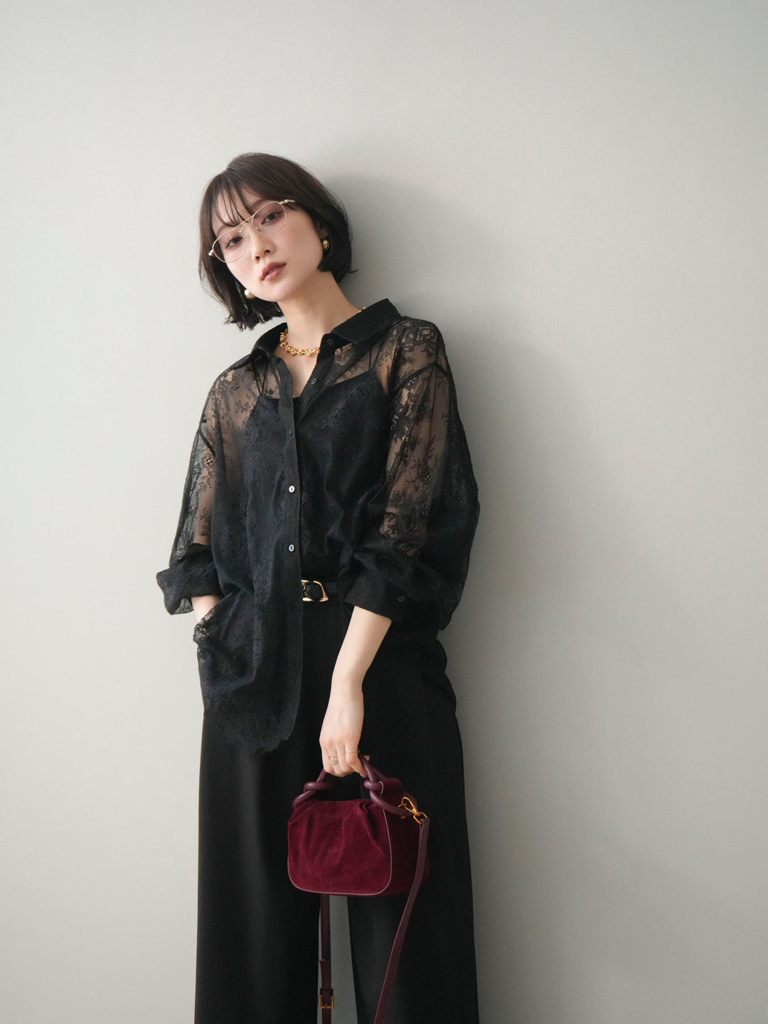 [SET]総レースボリュームスリーブシャツ+選べるアクセセット(2set)