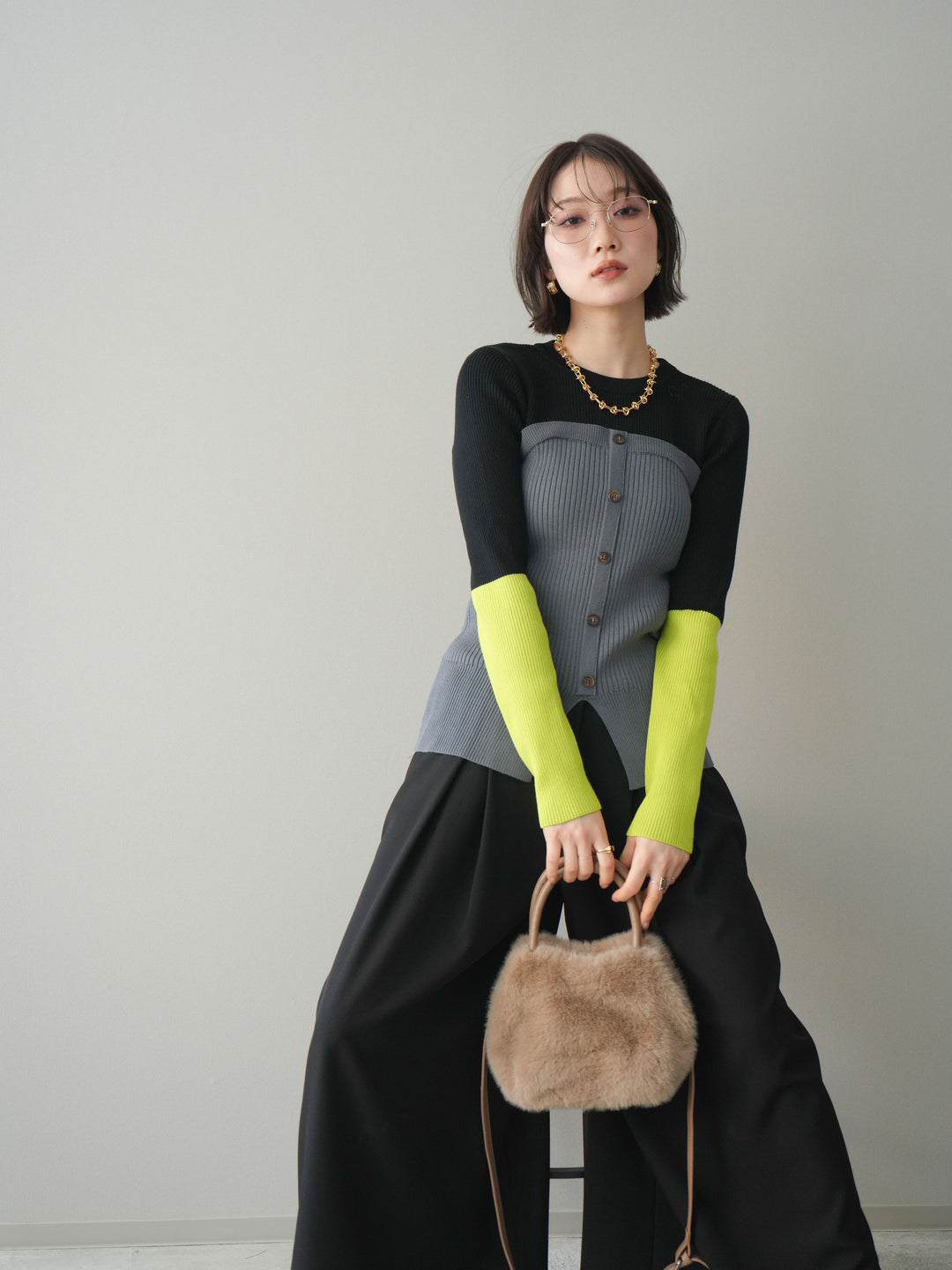 [SET]配色ビスチェドッキングリブニットトップス+選べるアクセセット(2set)