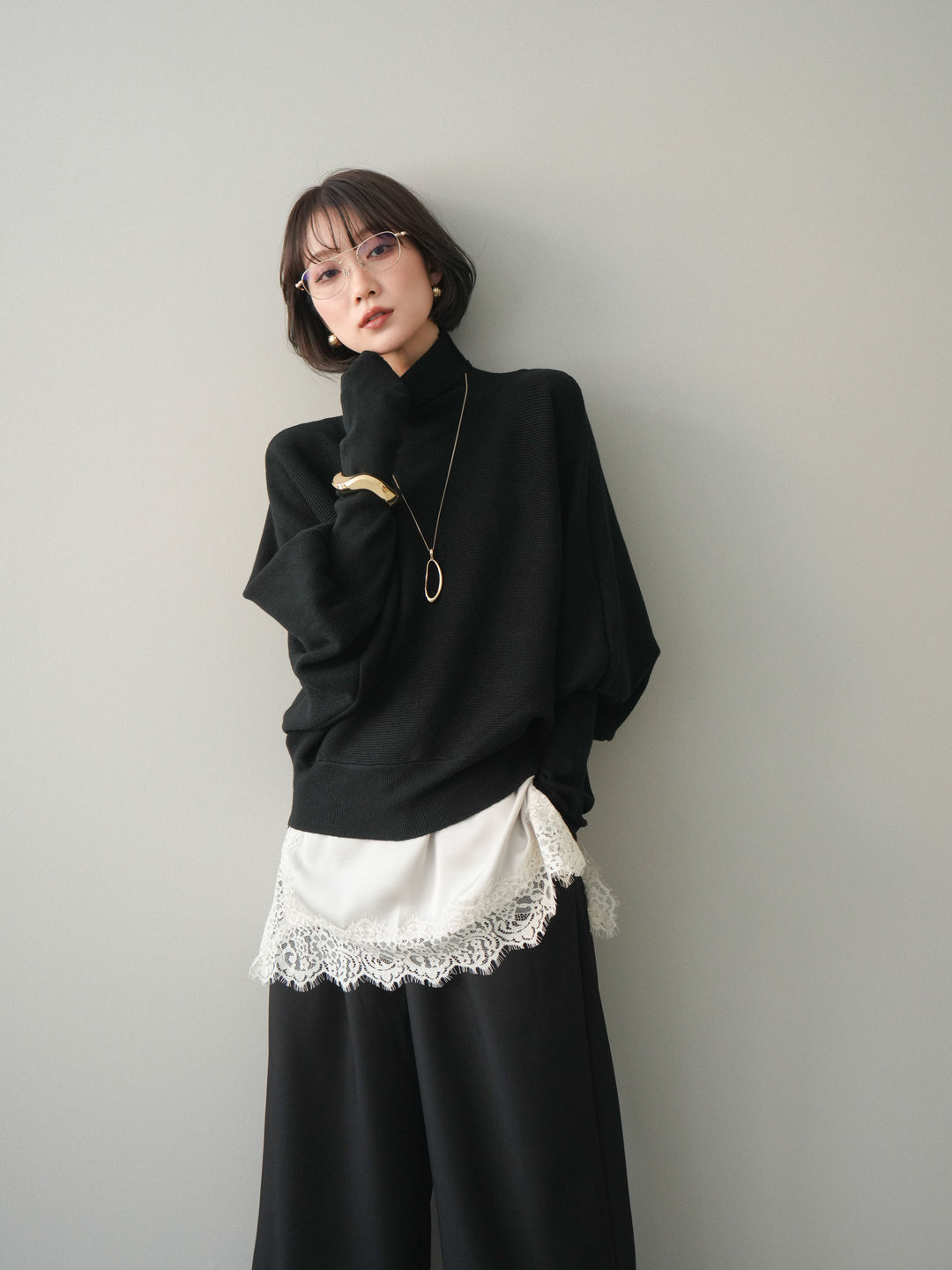 [SET]ボリュームドルマンタートルニットプルオーバー+選べるアクセセット(2set)