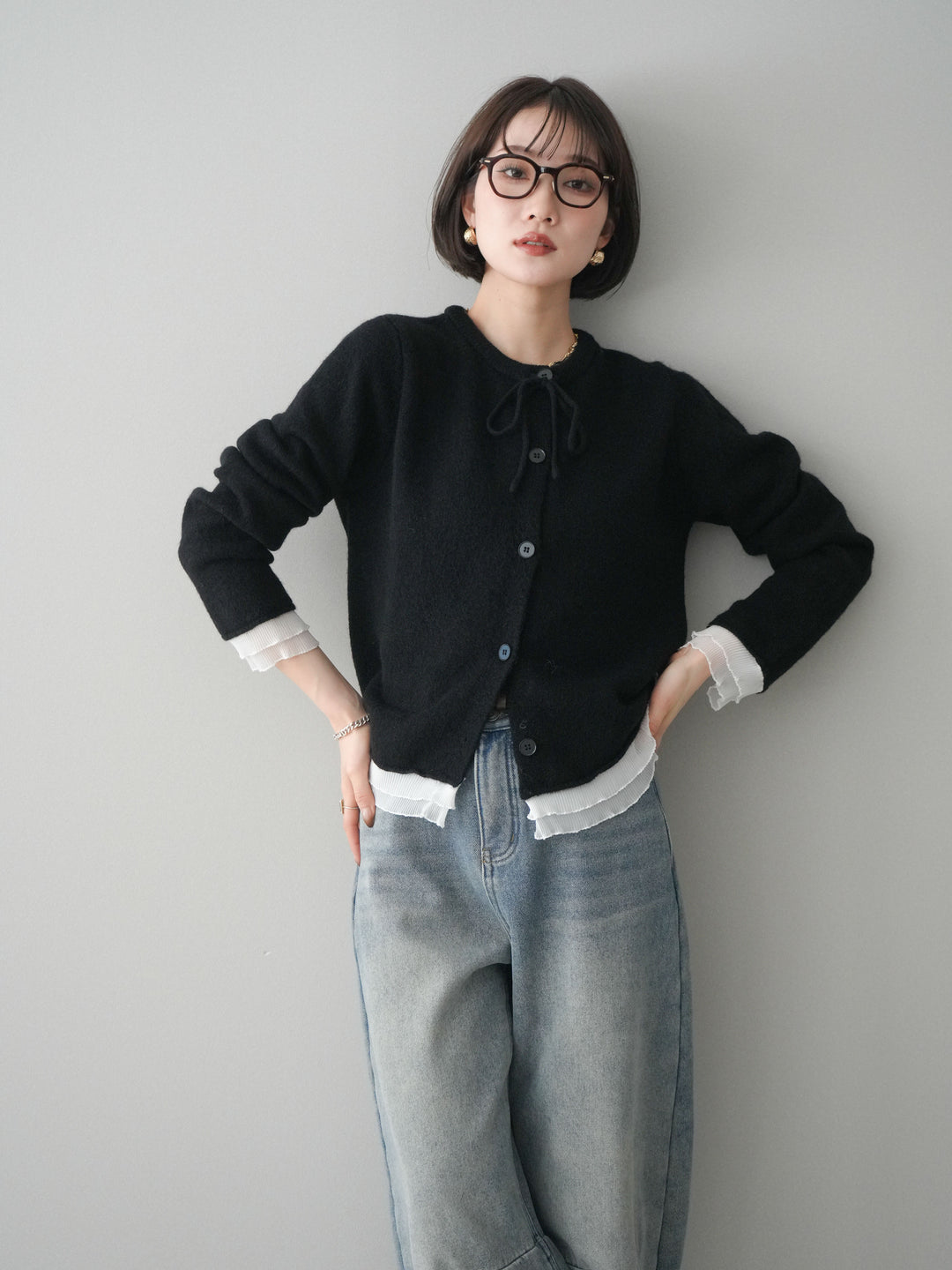 [SET]裾シフォンプリーツニットカーディガン+選べるアクセセット(2set)