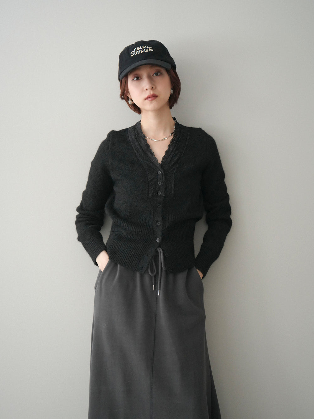 [SET]レースネックコンパクトニットカーディガン+選べるアクセセット(2set)