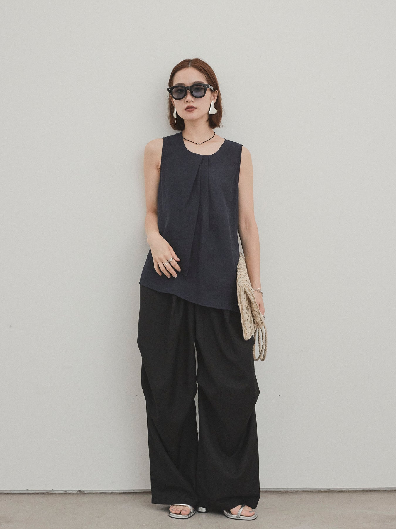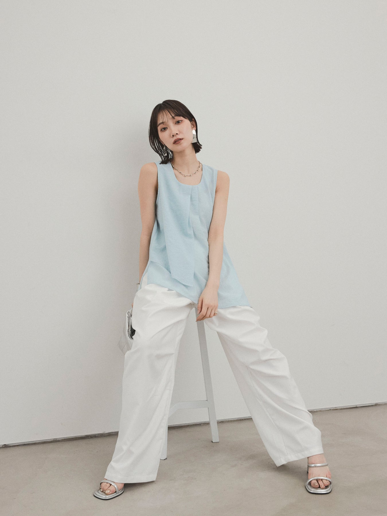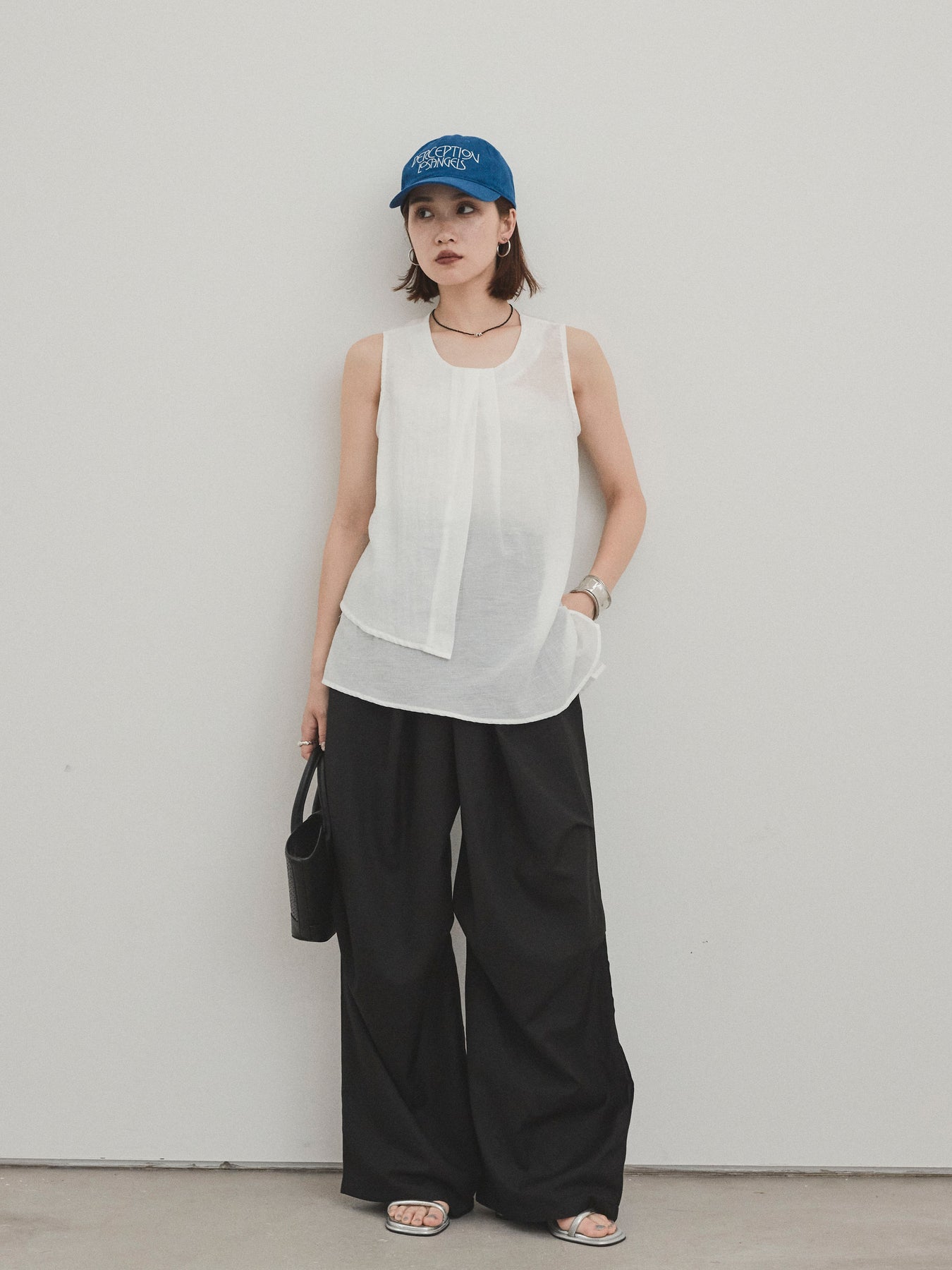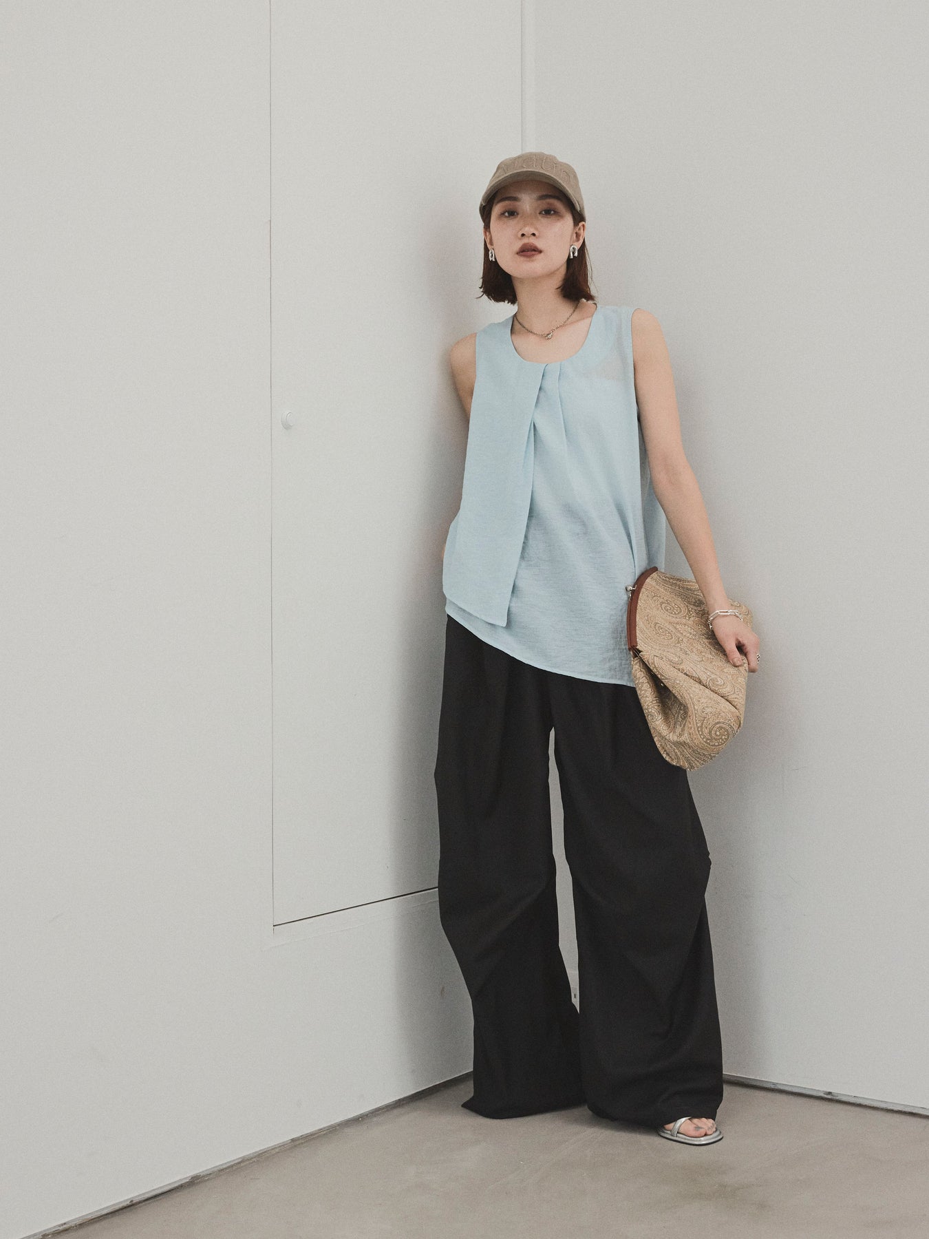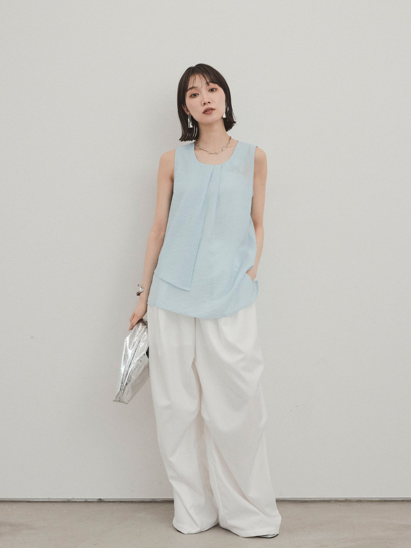 [SET] 透視褶皺不對稱上衣 + 設計環側褶褲 (2 件組)