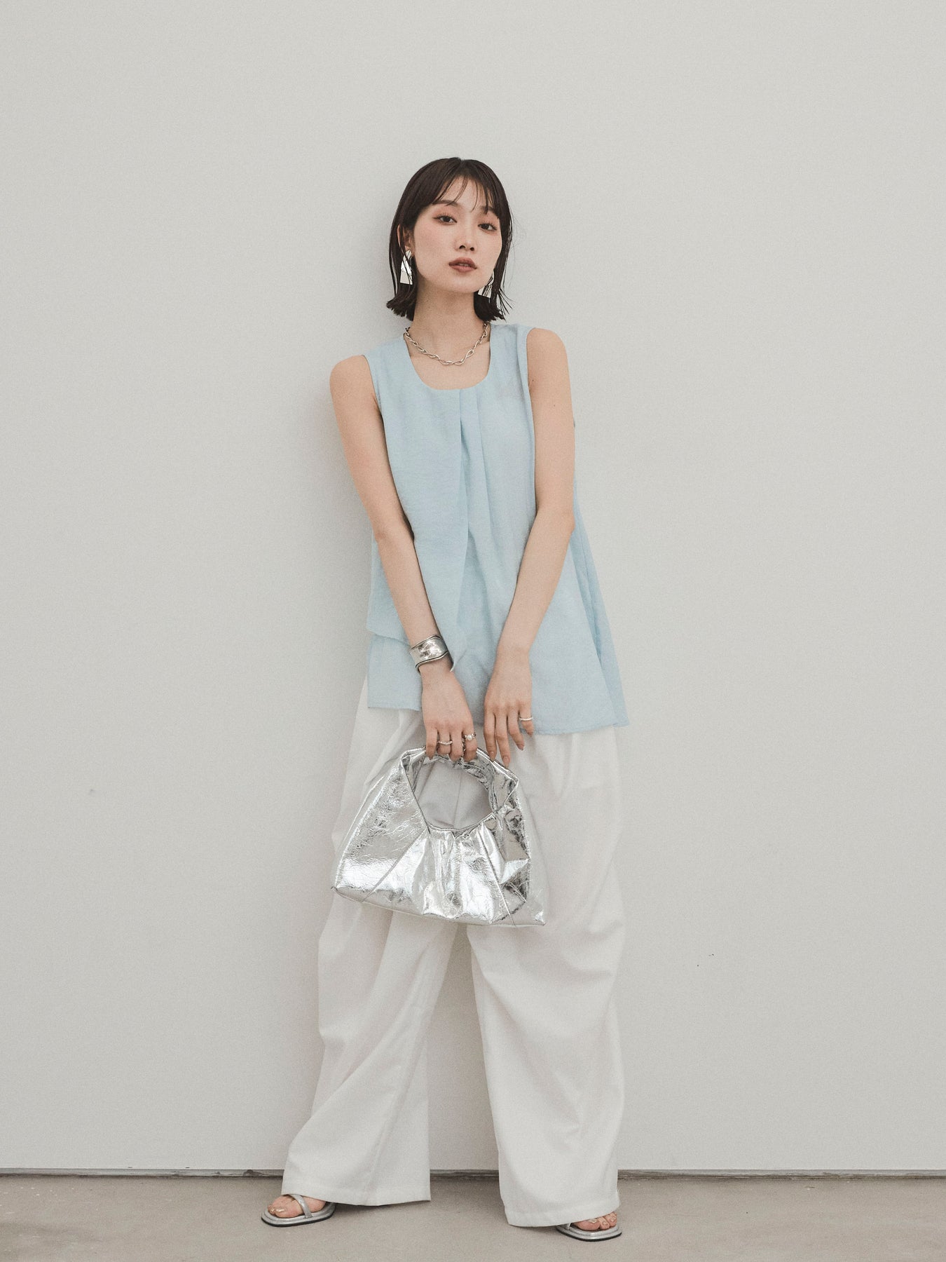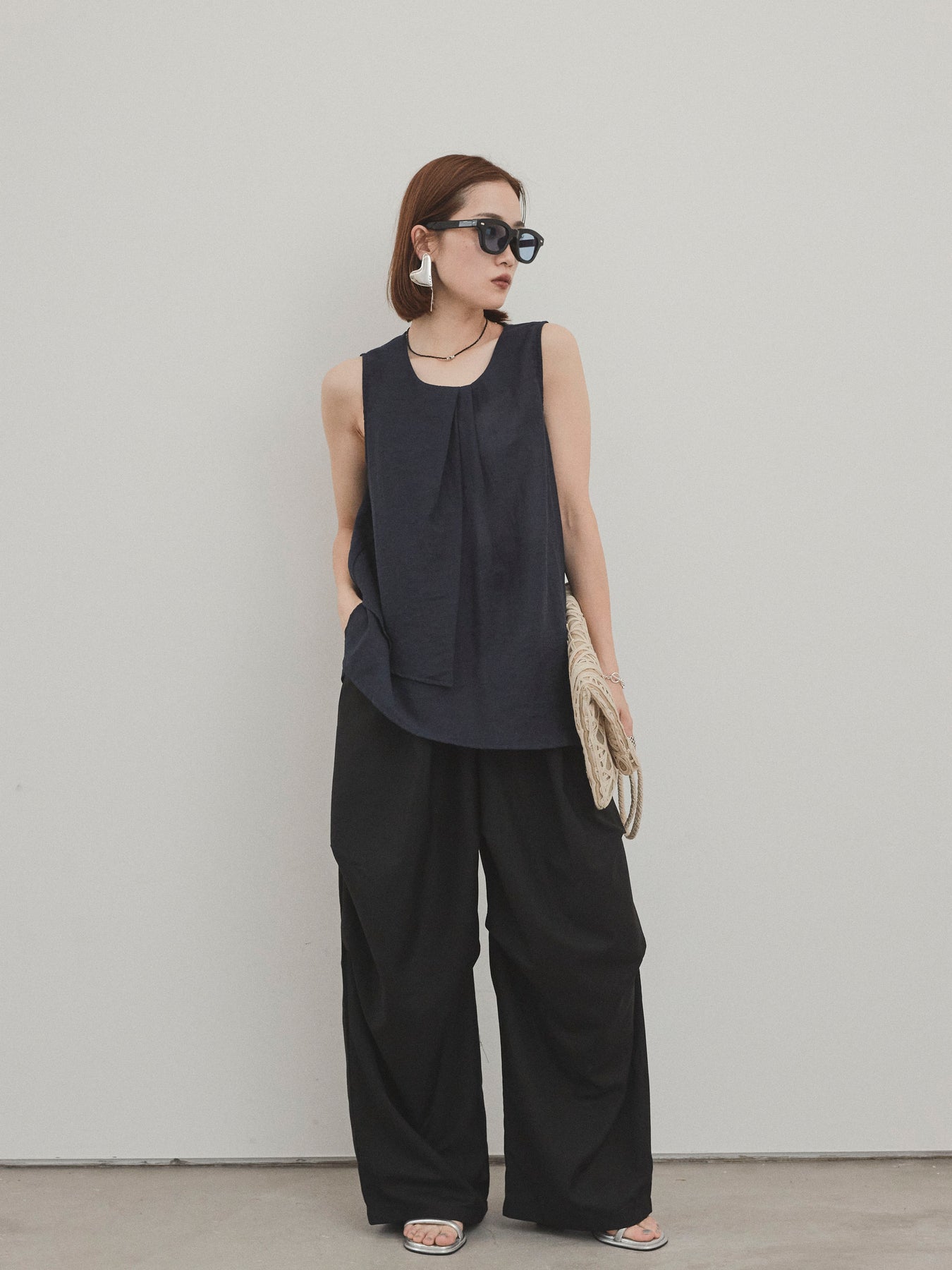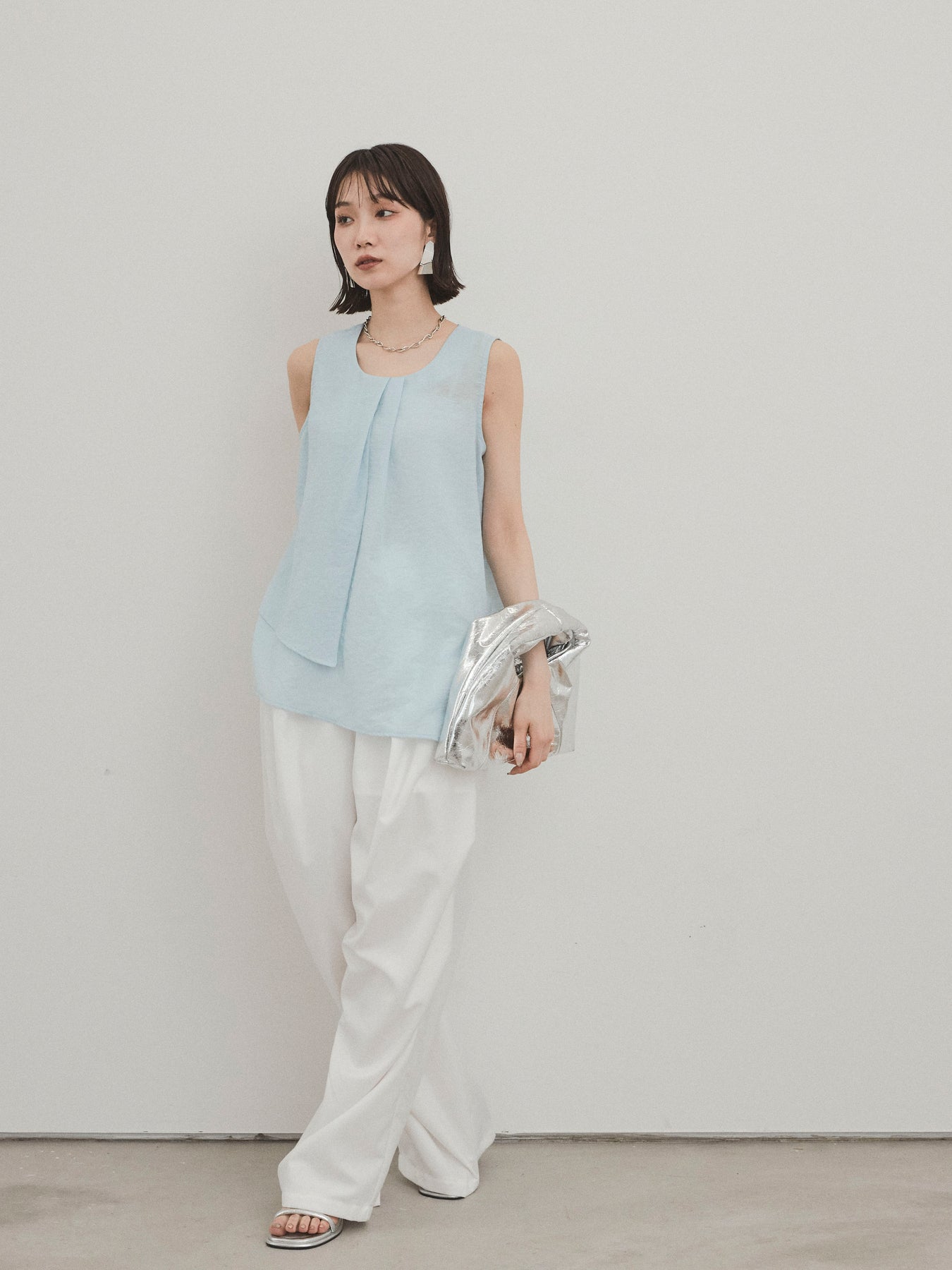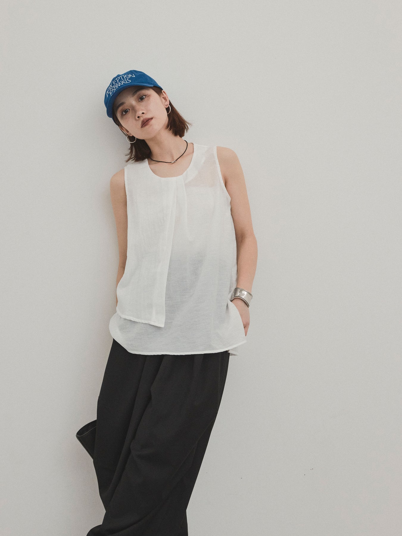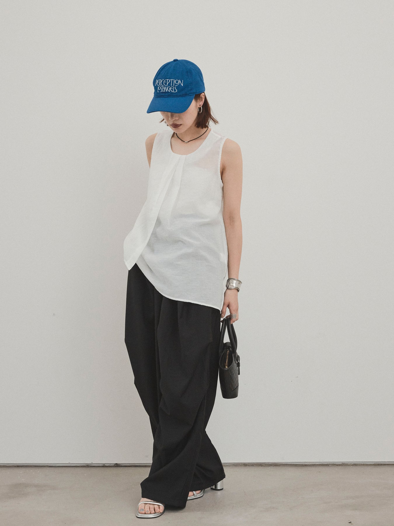 [SET] 透視褶皺不對稱上衣 + 設計環側褶褲 (2 件組)