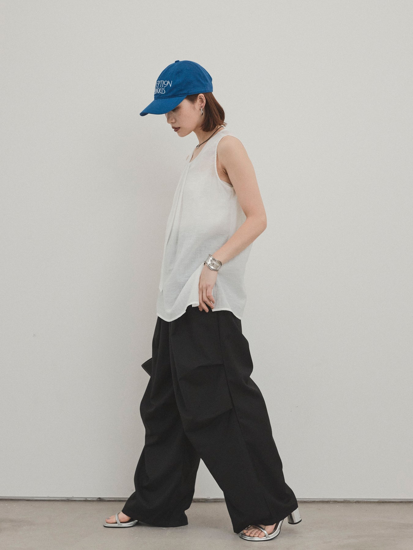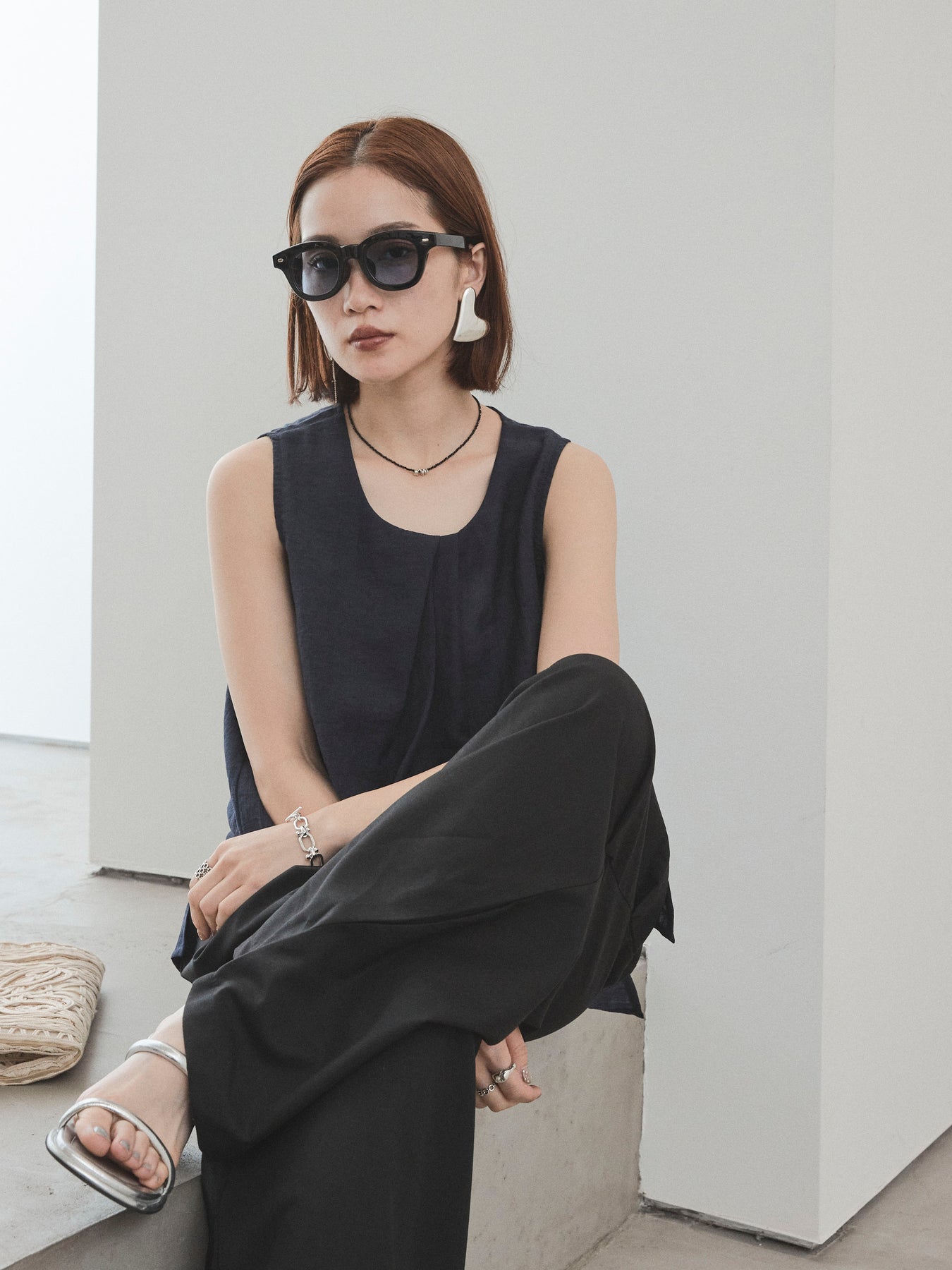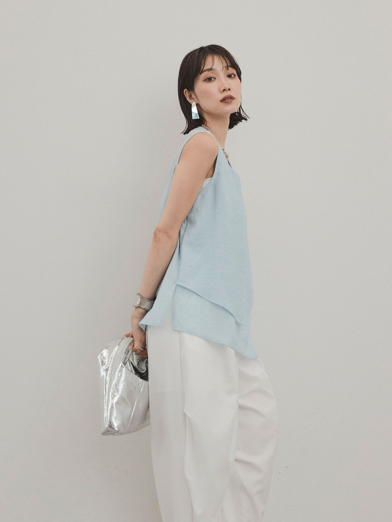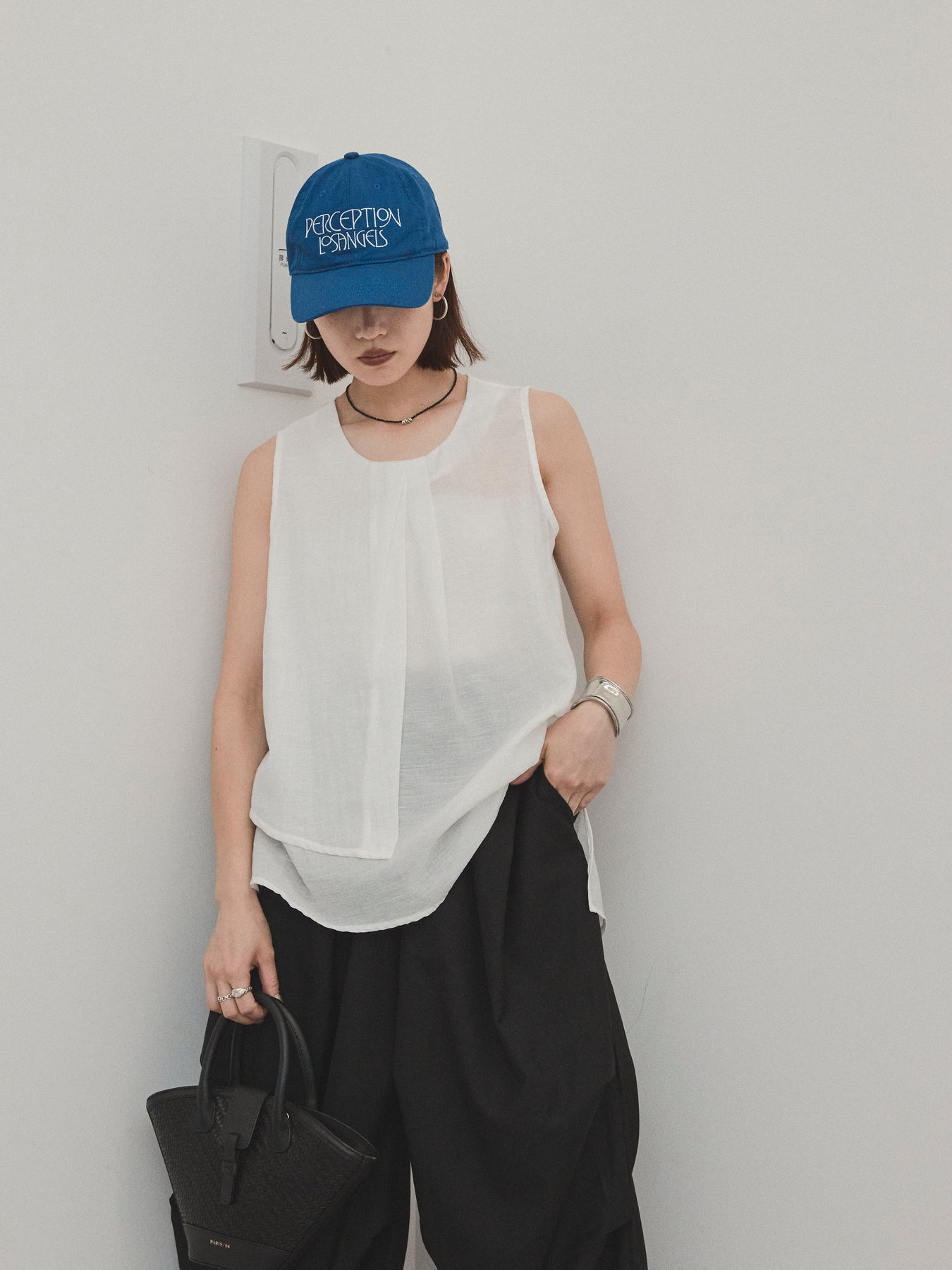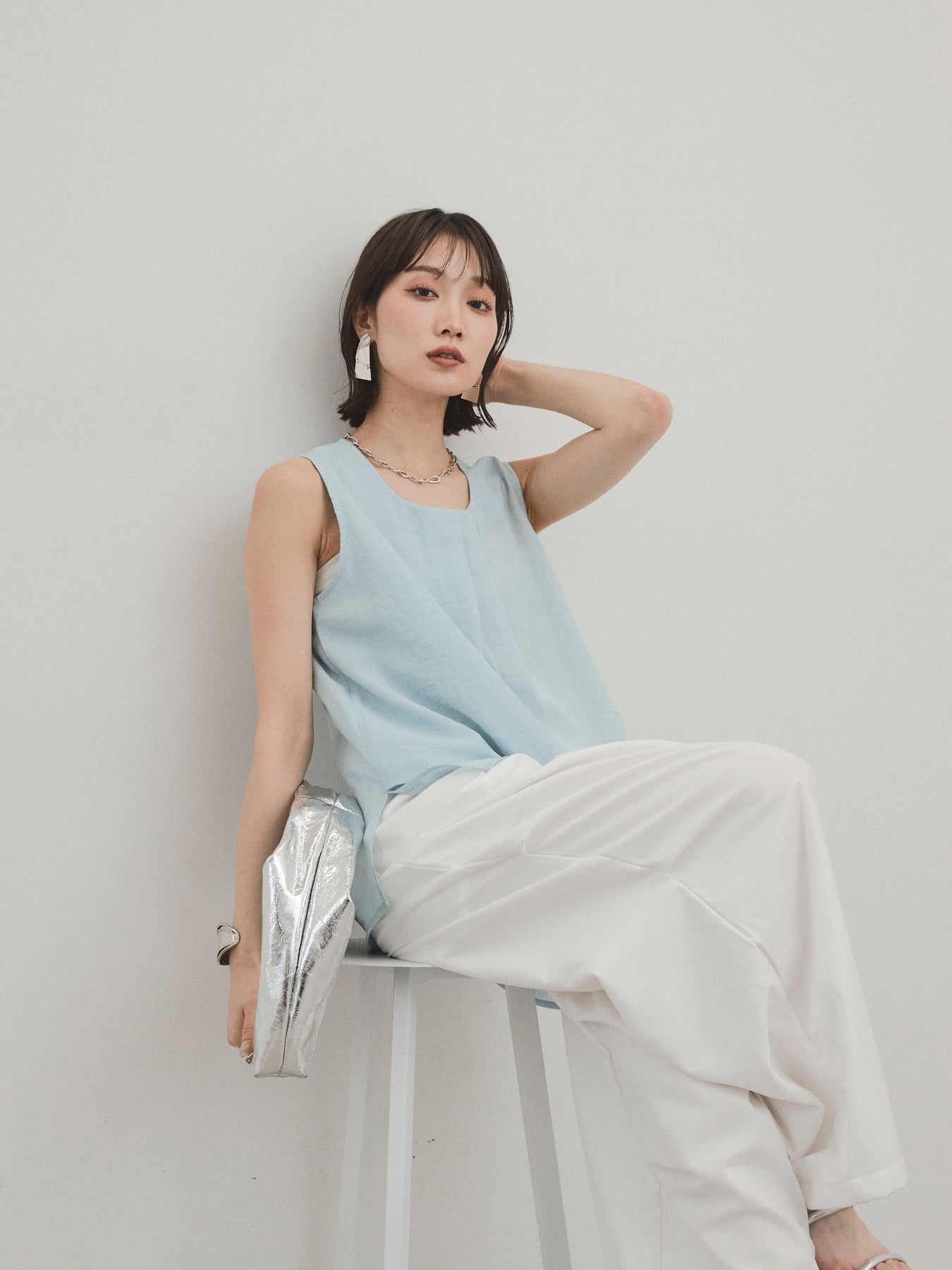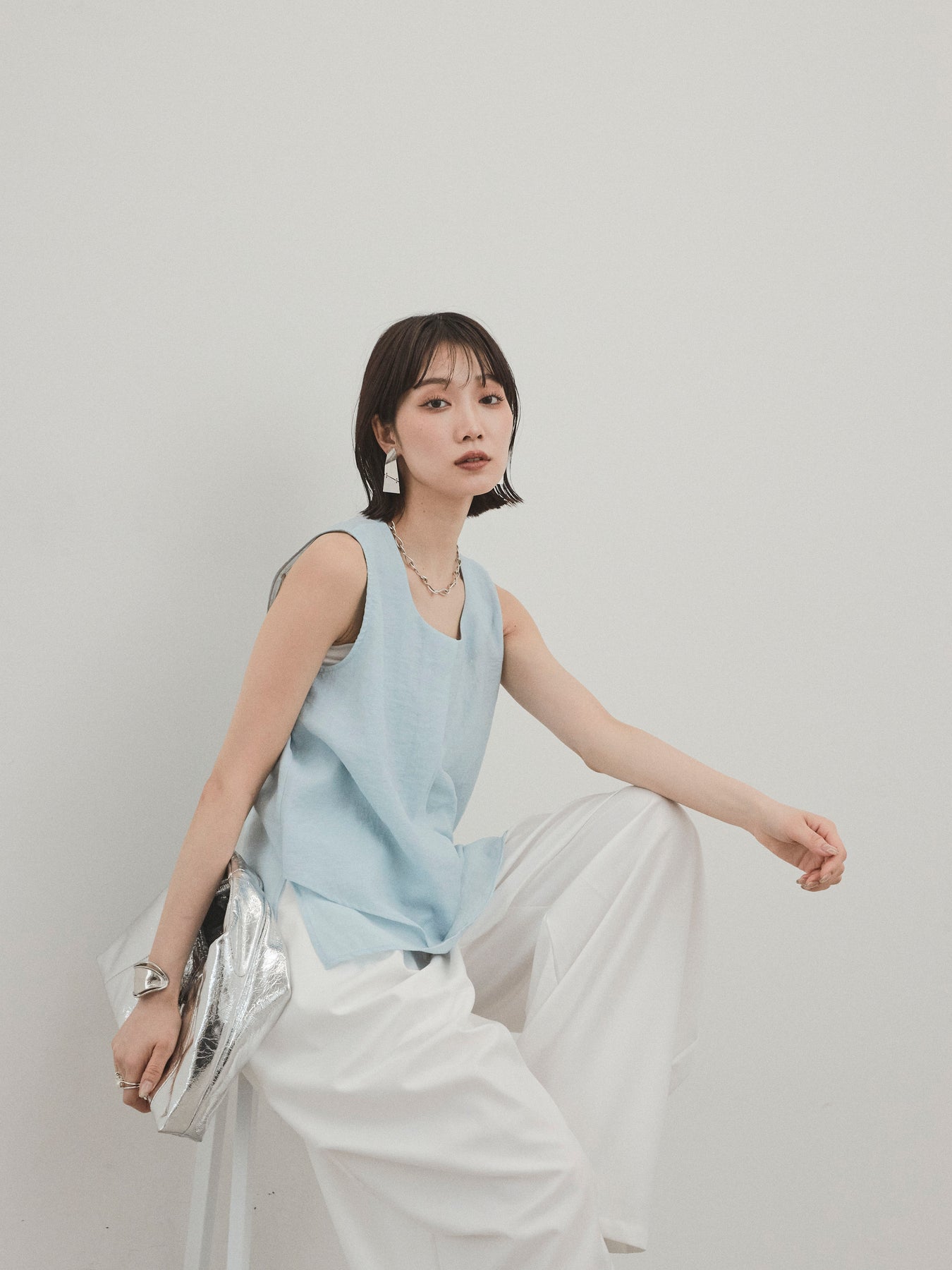 [SET] 透視褶皺不對稱上衣 + 設計環側褶褲 (2 件組)
