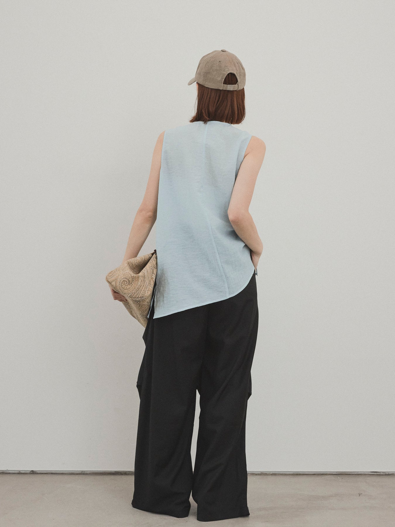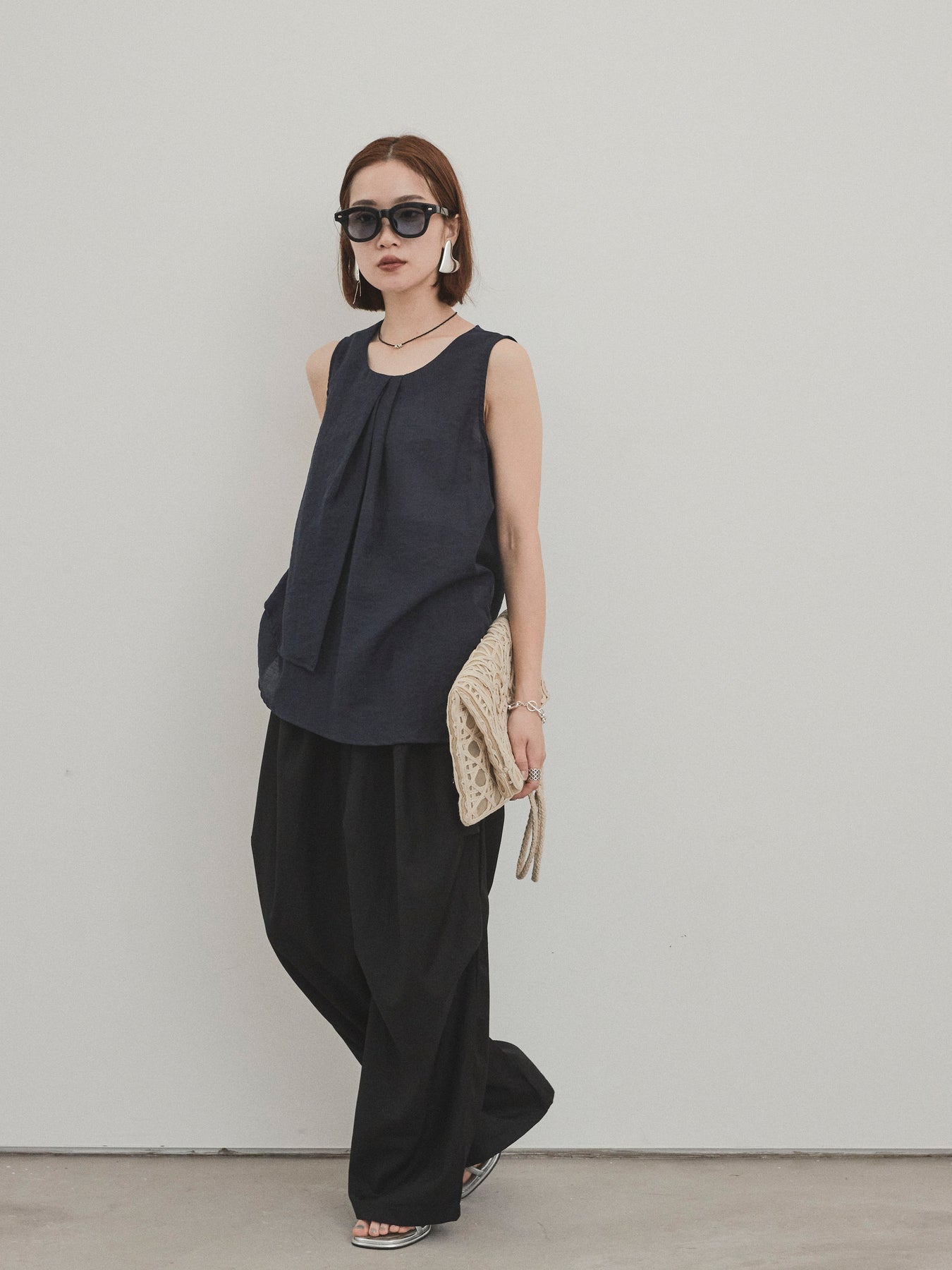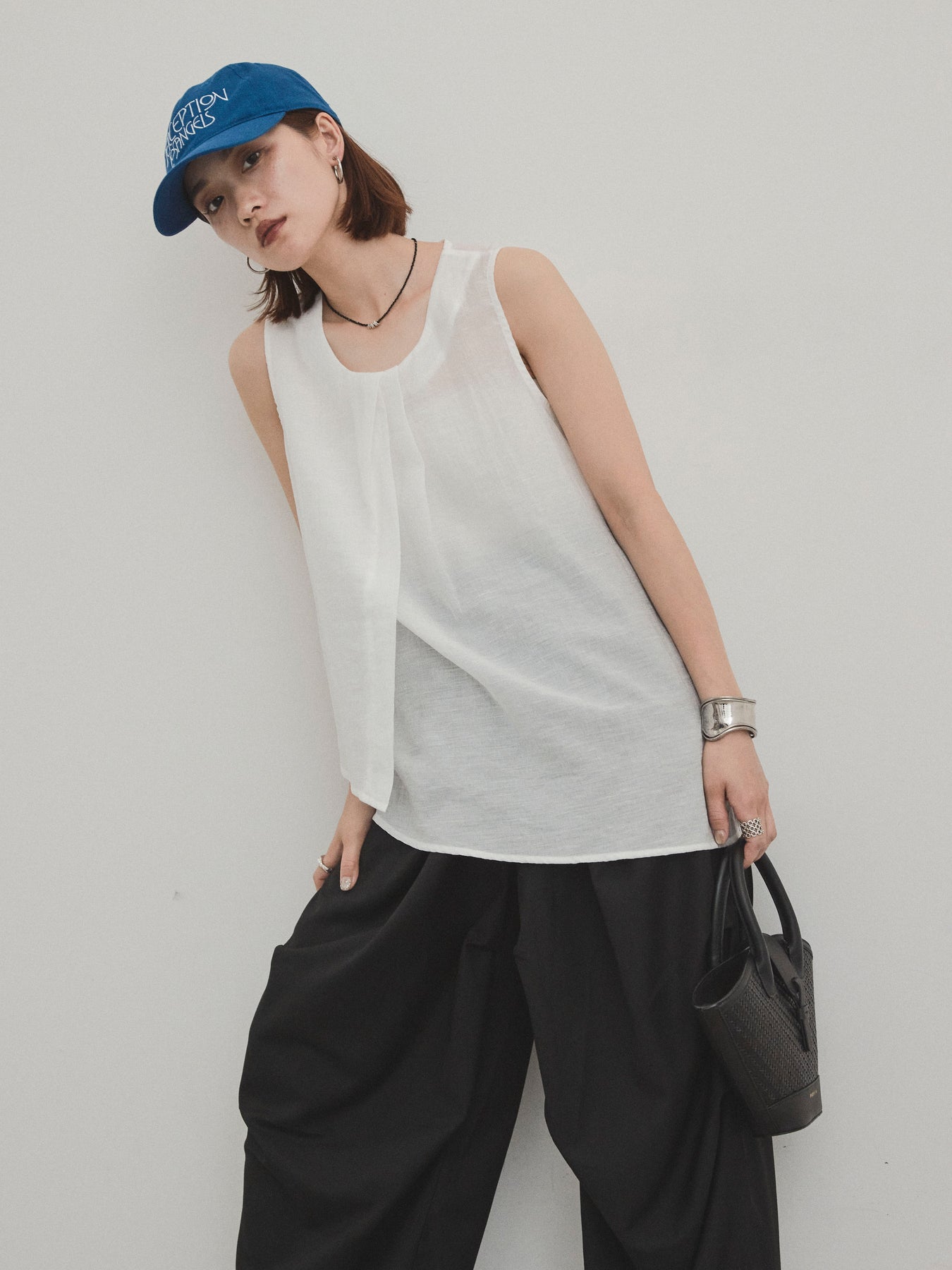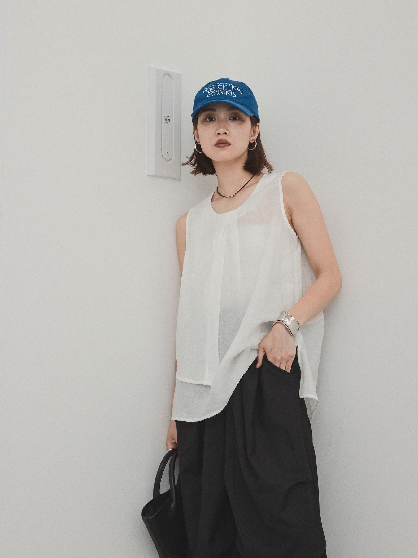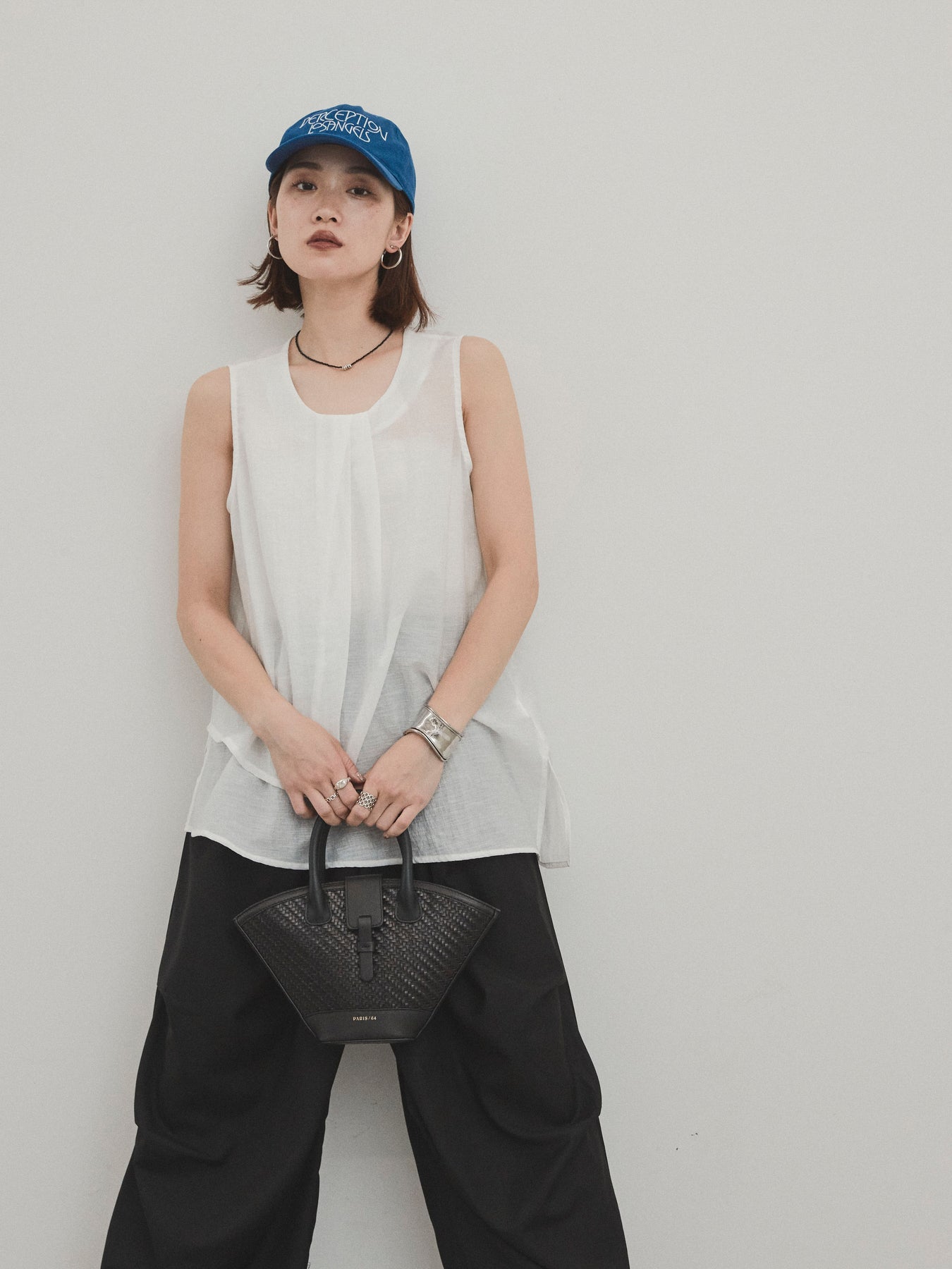 [SET] 透視褶皺不對稱上衣 + 設計環側褶褲 (2 件組)