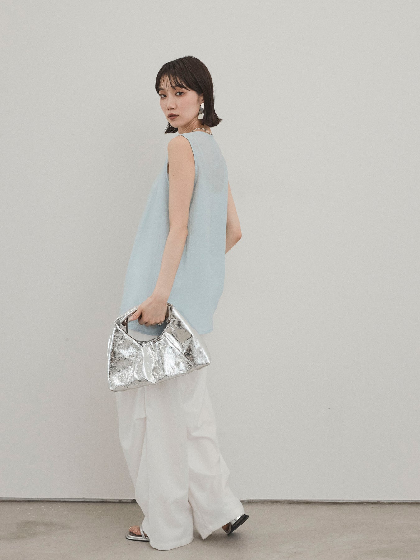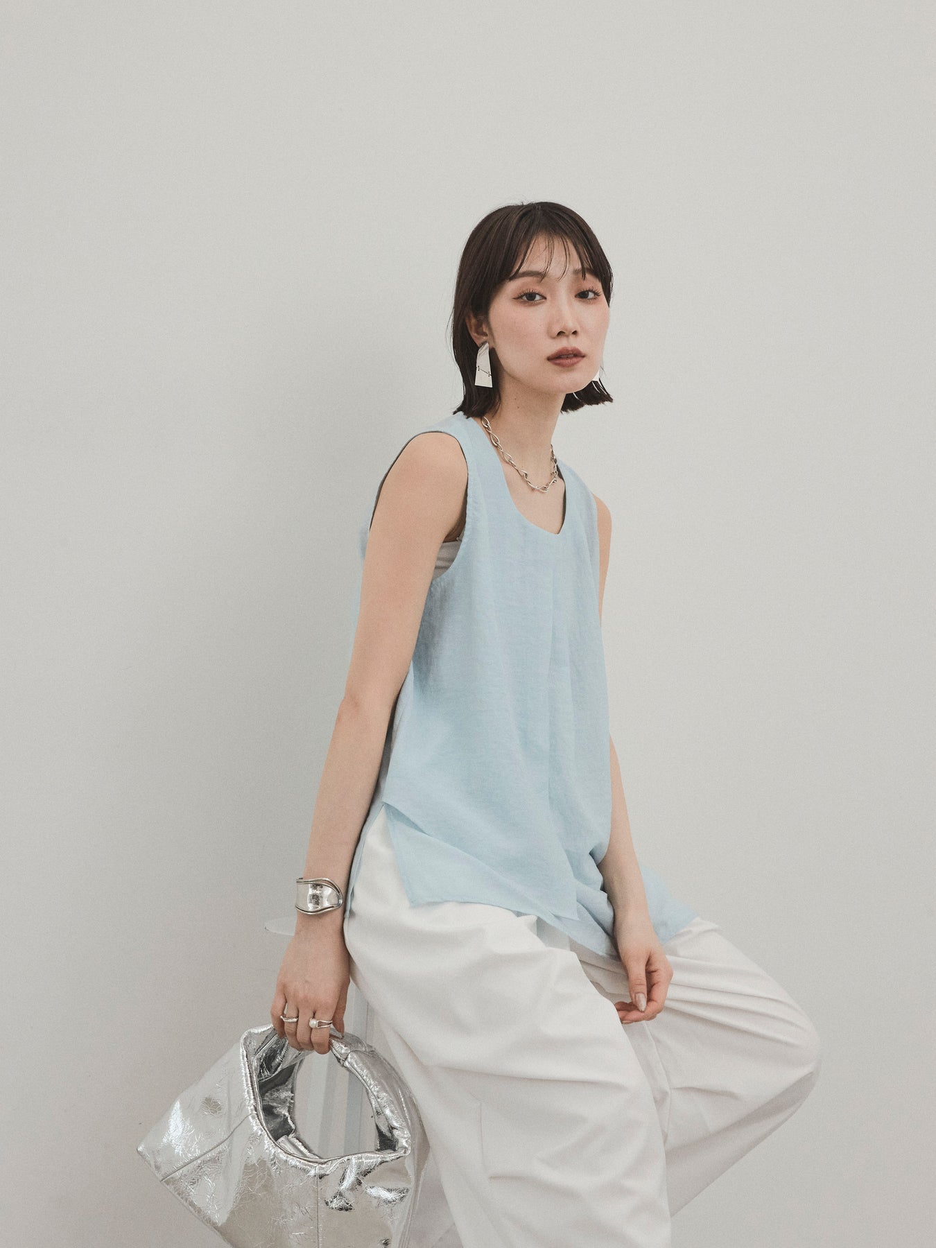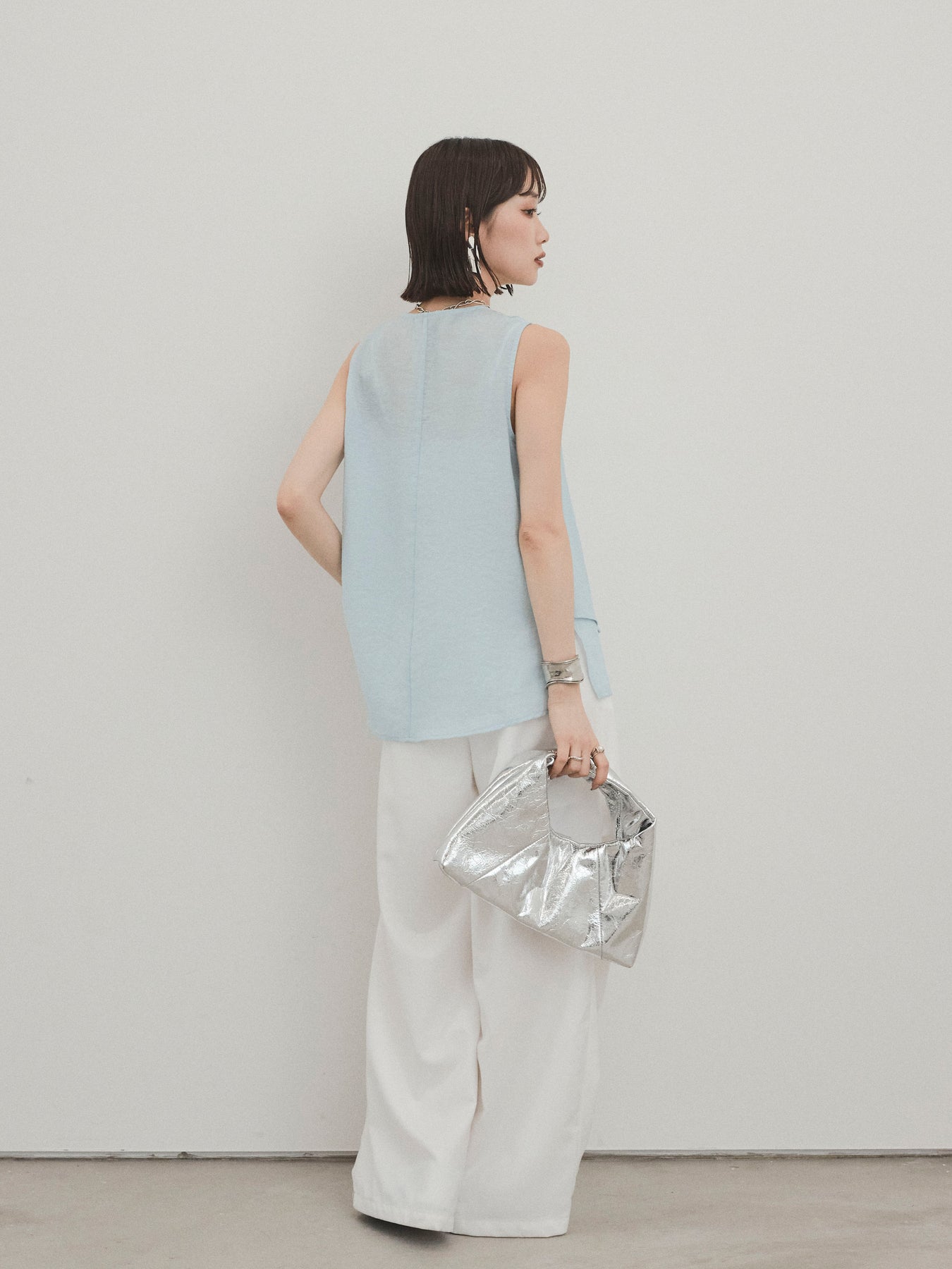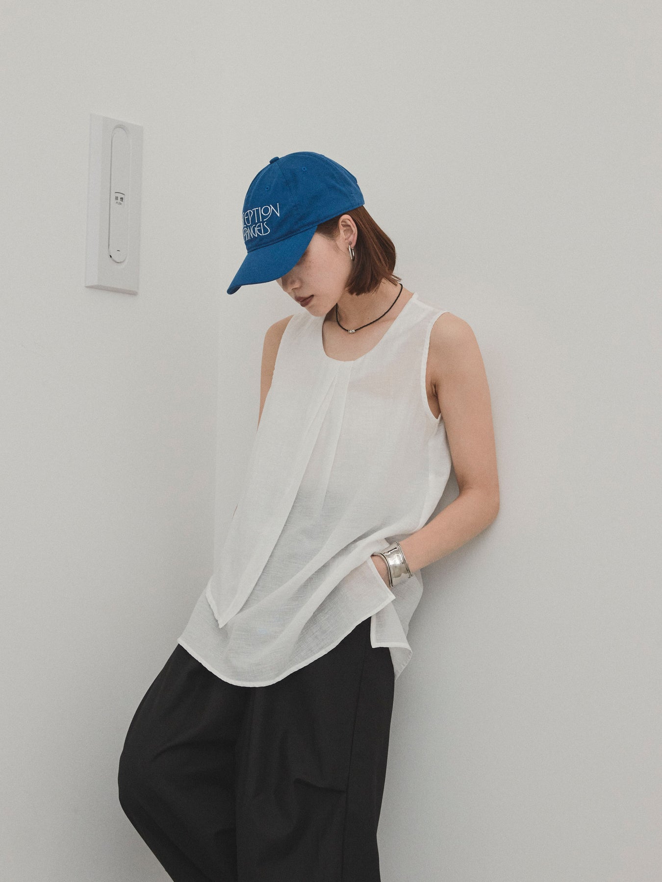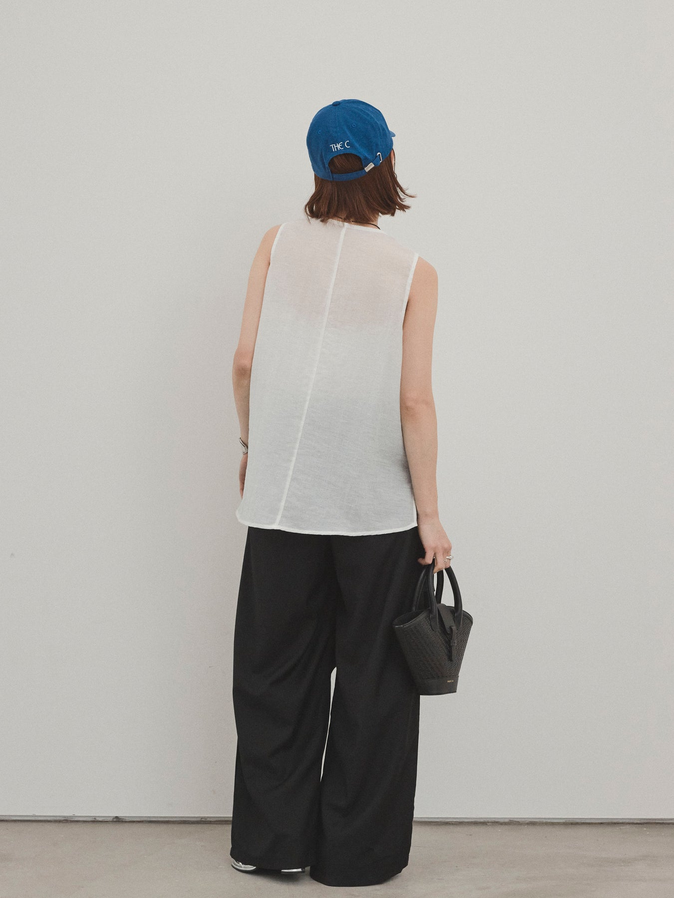 [SET] 透視褶皺不對稱上衣 + 設計環側褶褲 (2 件組)