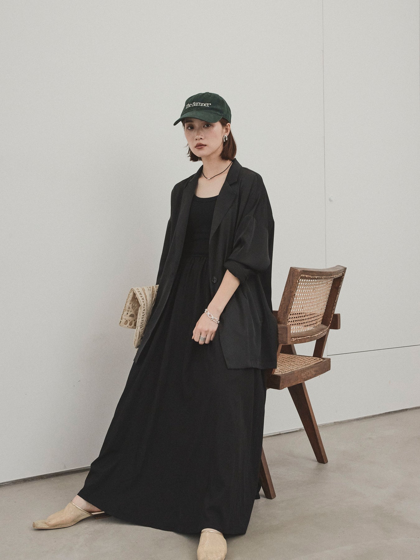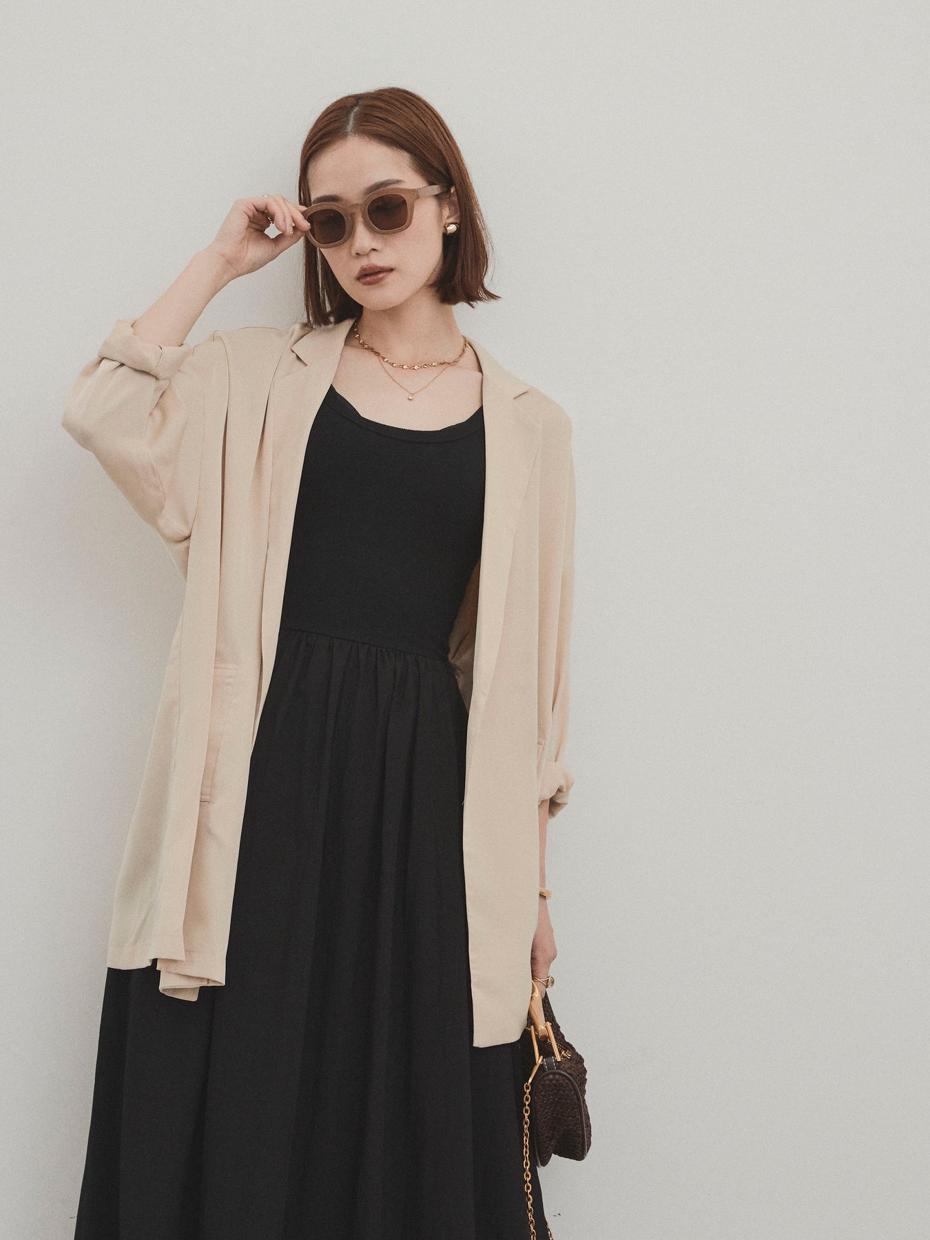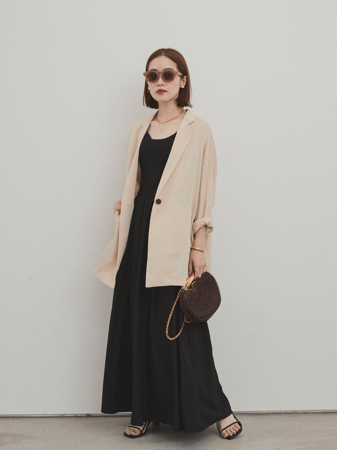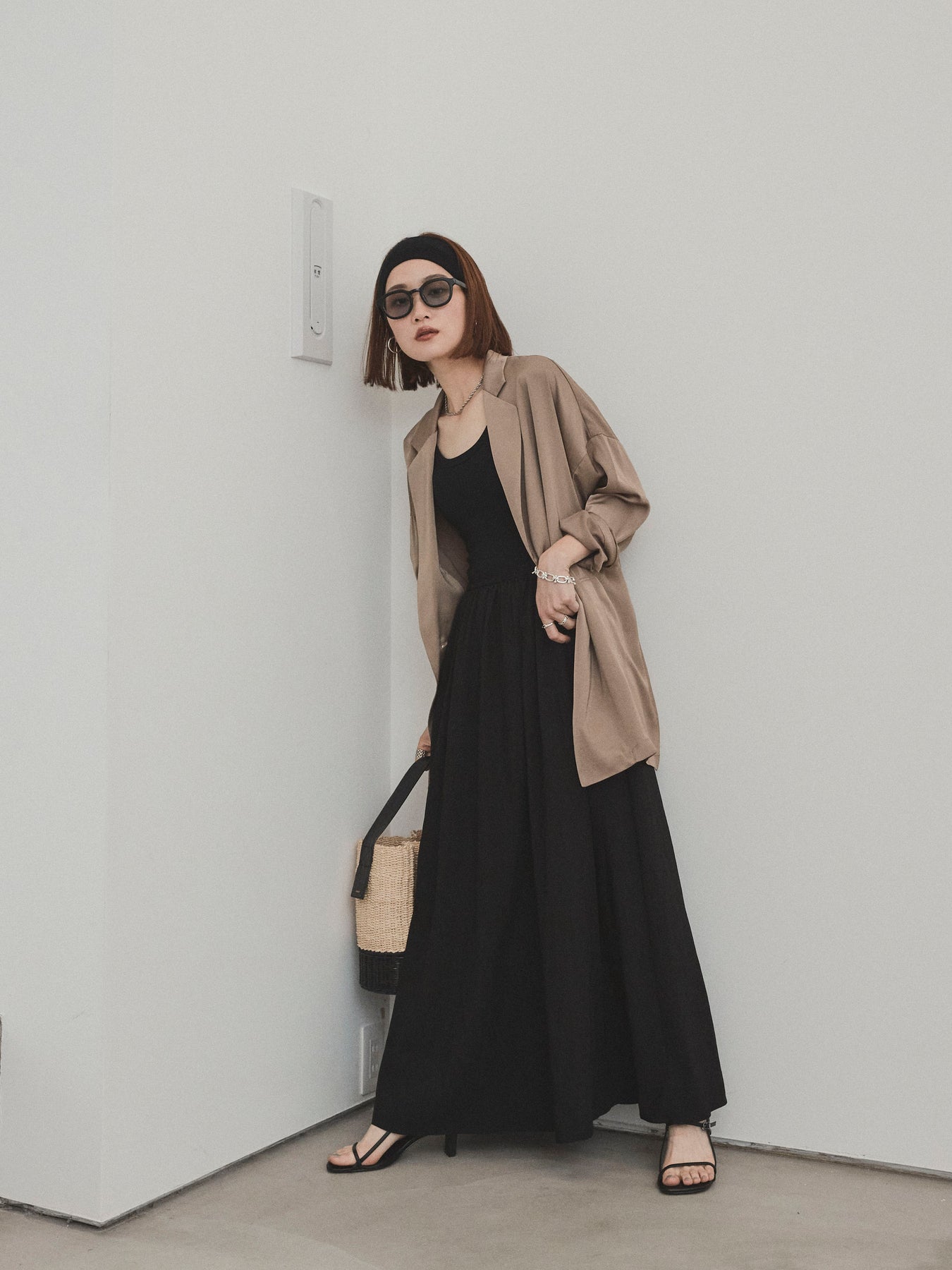 這款輕便外套採用霧面緞面材質製成,光澤度適中,營造出優雅而輕鬆的外觀。 光滑的垂墜自然貼合身體,只需穿上即可展現精緻的外觀。 它具有寬鬆的超大輪廓,並由輕質材料製成,易於穿戴。 捲起的袖子和自然的垂墜感賦予設計一種精緻的感覺。 只需搭配 T 卹或背心即可展現輕鬆休閒風格,或搭配洋裝和休閒褲即可展現更優雅的外觀。 這是一件適合四季穿著的服裝,它將成為您衣櫃中的必備品。