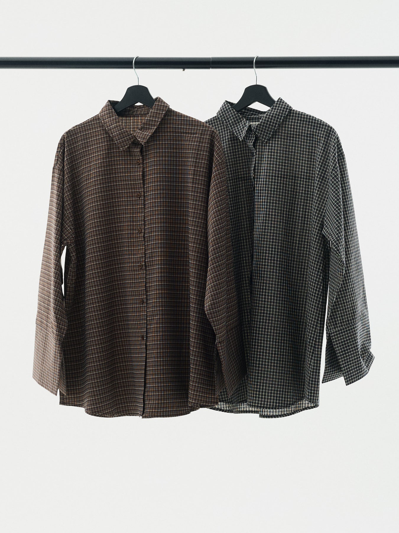 柔らかなオンブレチェック柄が目を惹くゆったりとしたオーバーシャツ。ボリューム袖とドロップショルダーでラフさを演出しつつ、程よい丈感がバランスの取れた着こなしに。羽織としても活躍し、シーズンを問わず着回せる万能アイテムです。