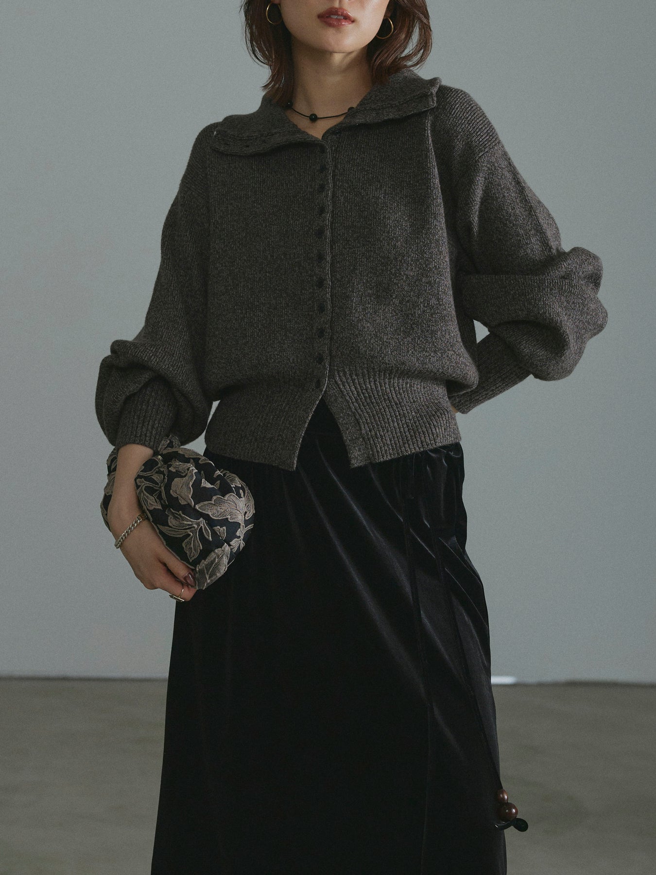 【Allure】[SET]ミックスハイネックカーディガン+ベロアナロースカート(2set)