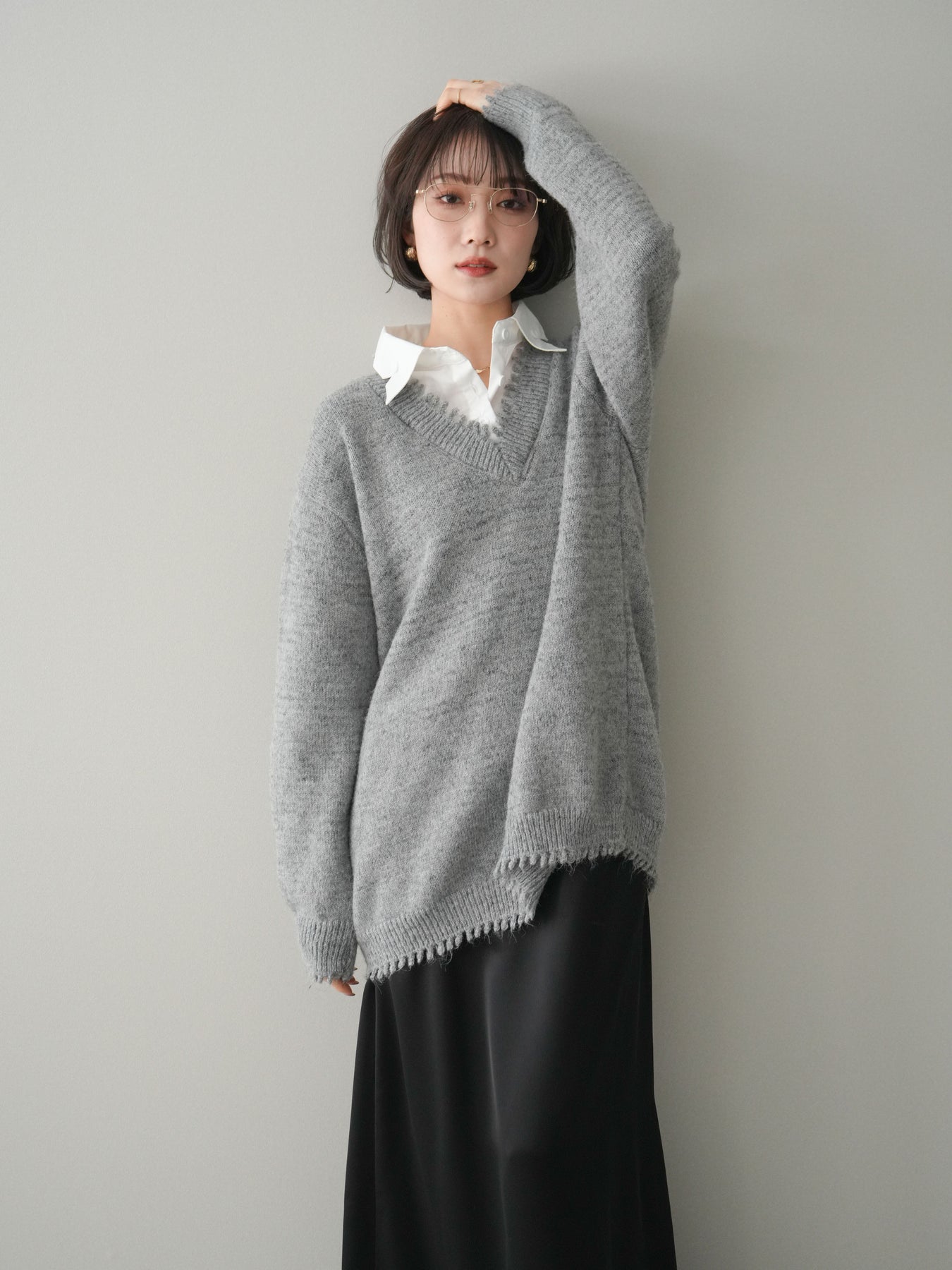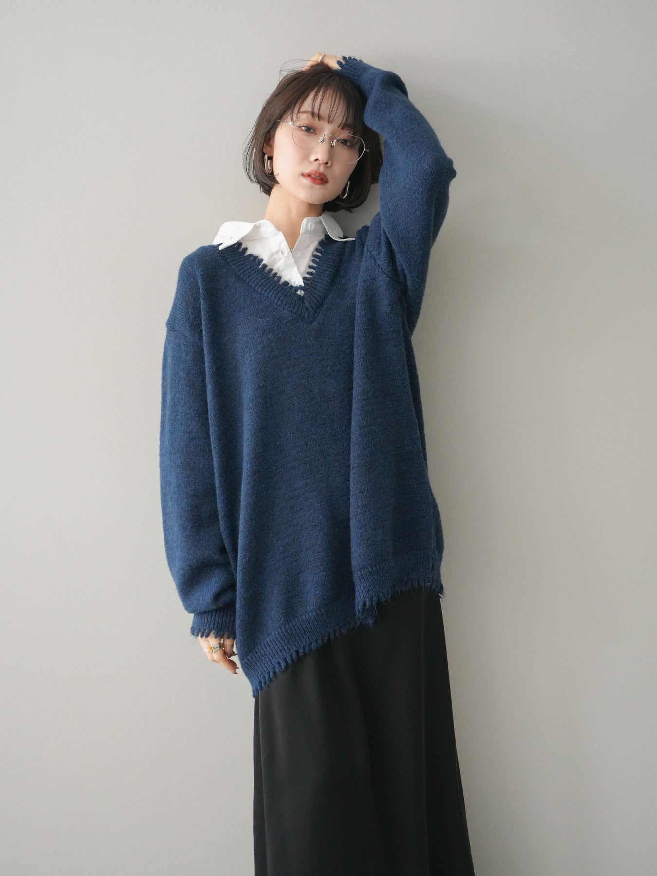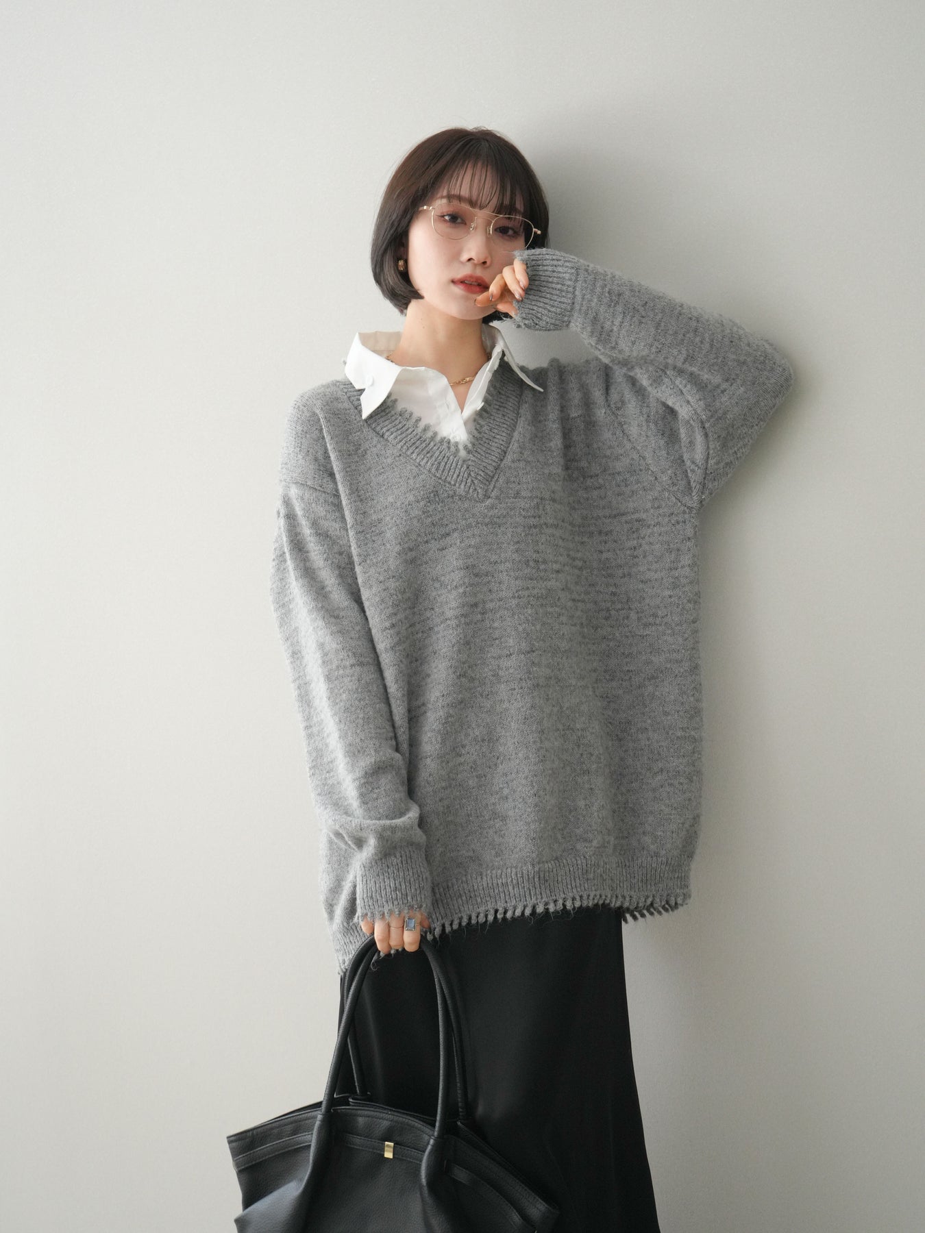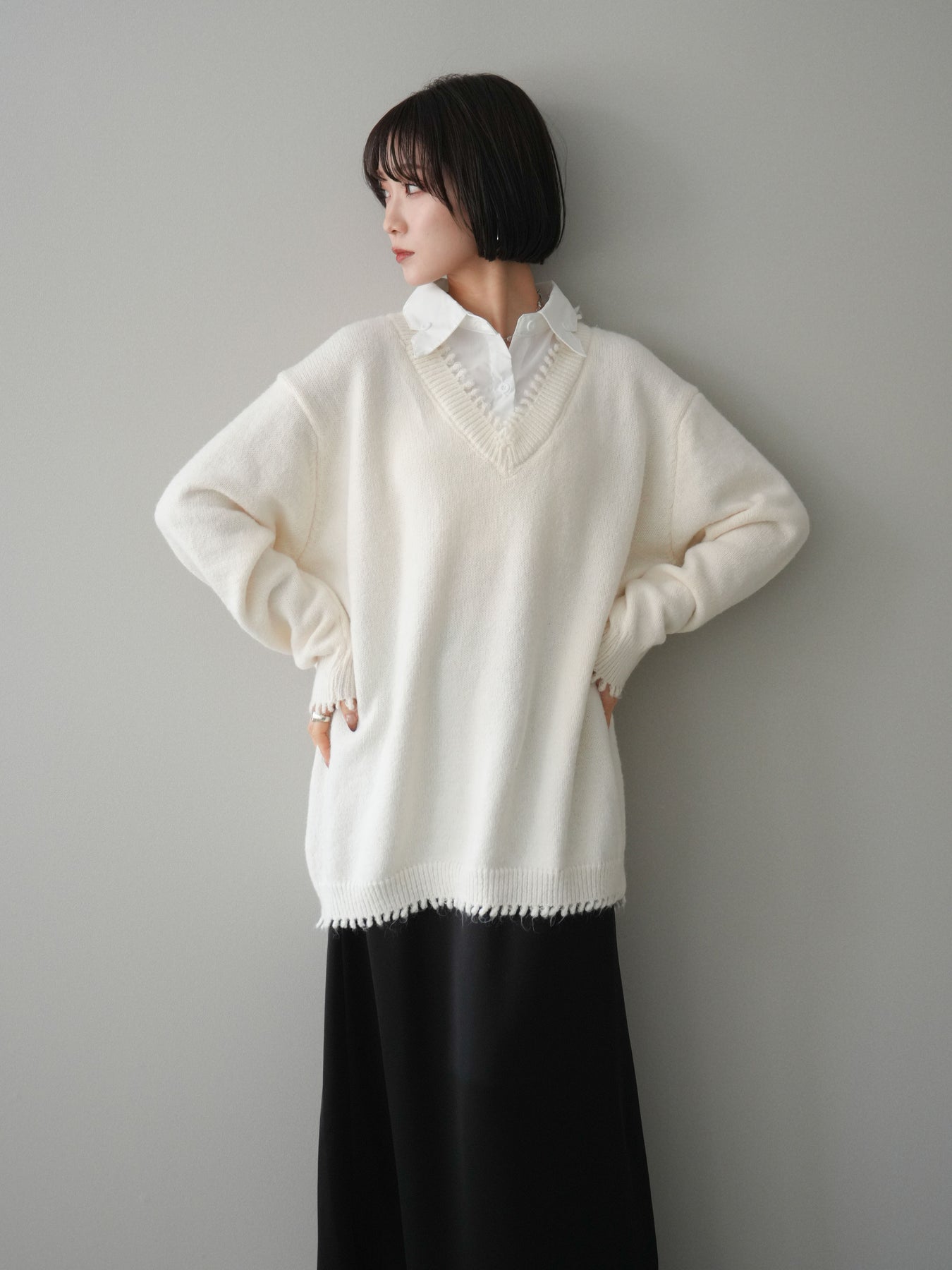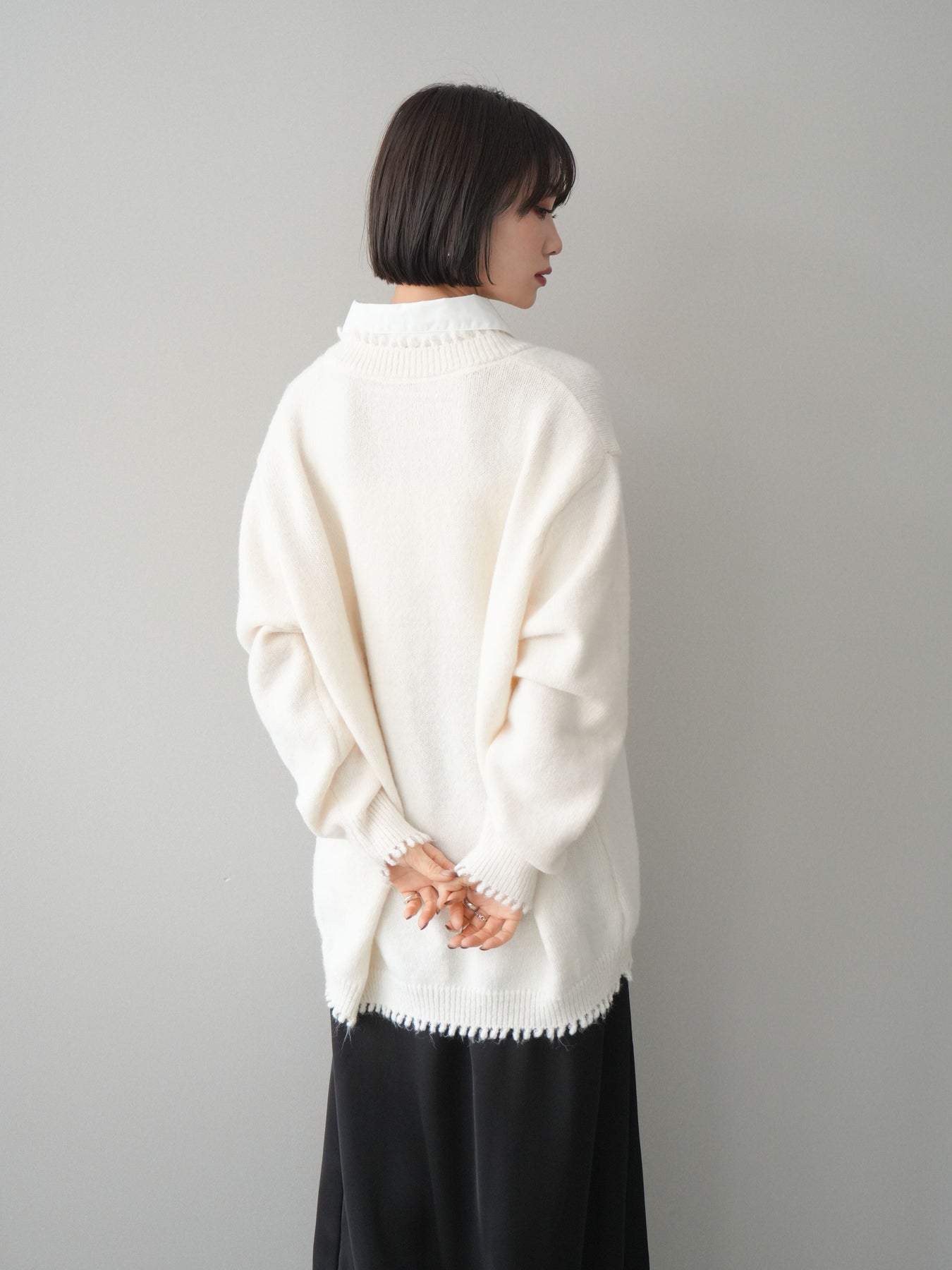 ◆ [予約]シャツドッキングVネックフリンジニットプルオーバー