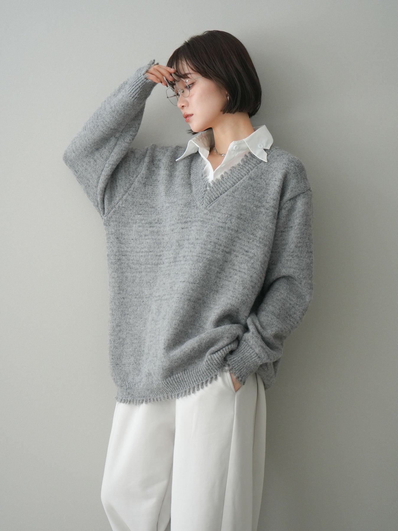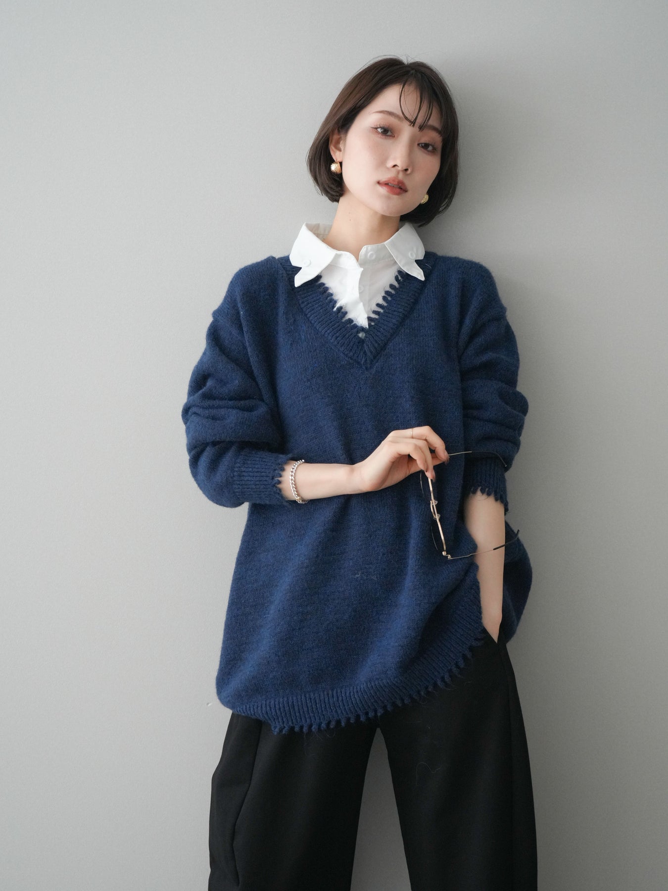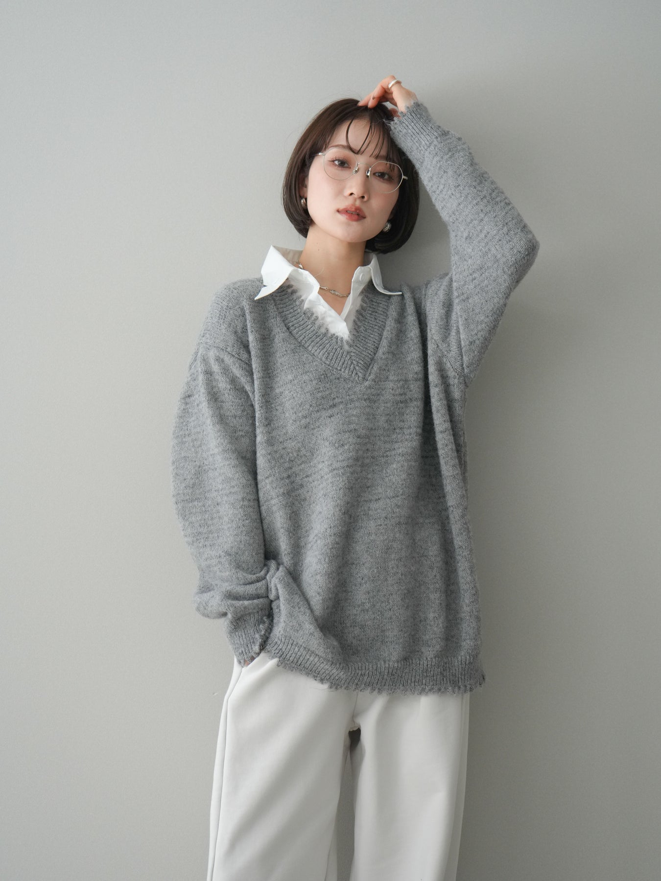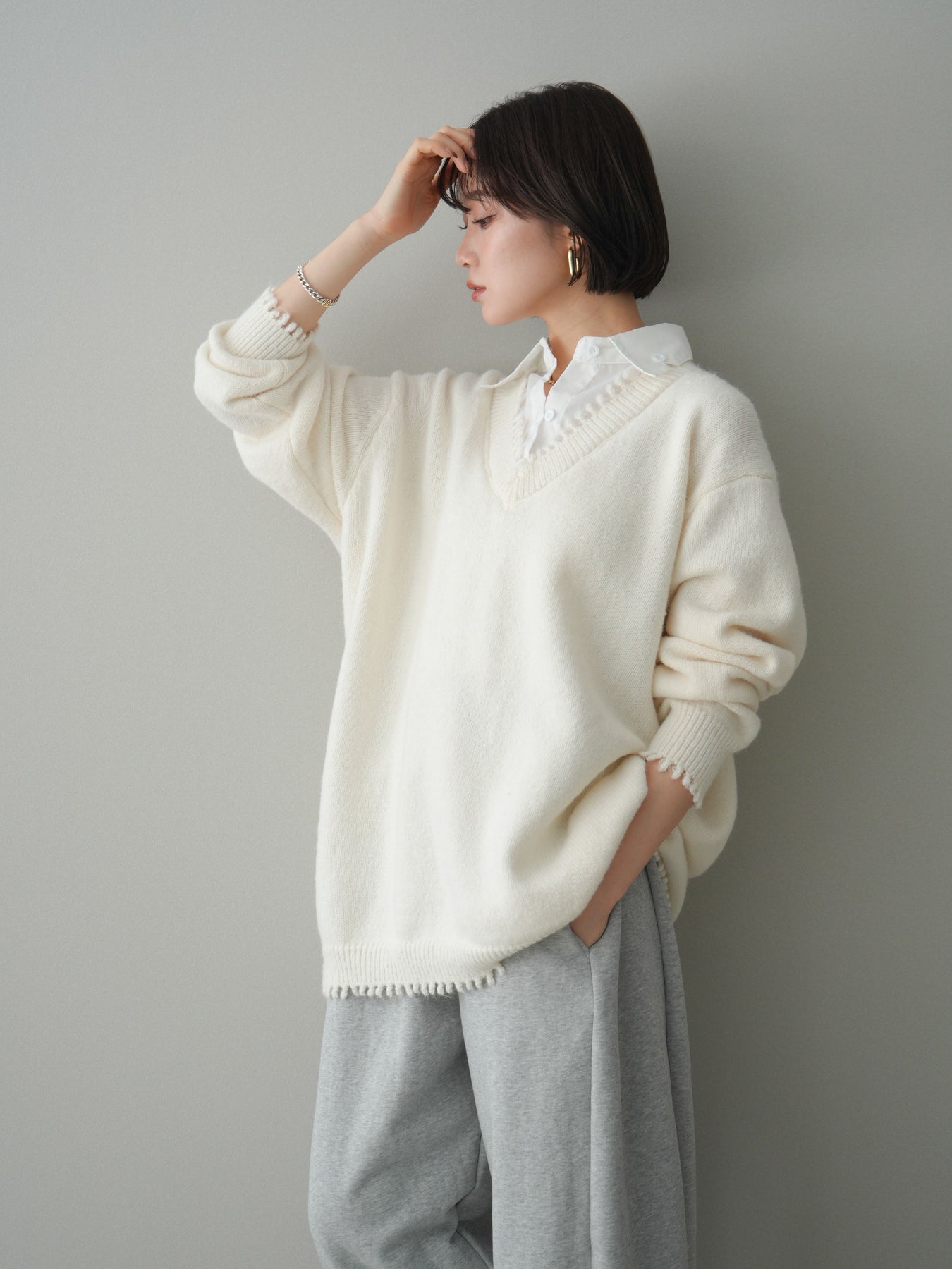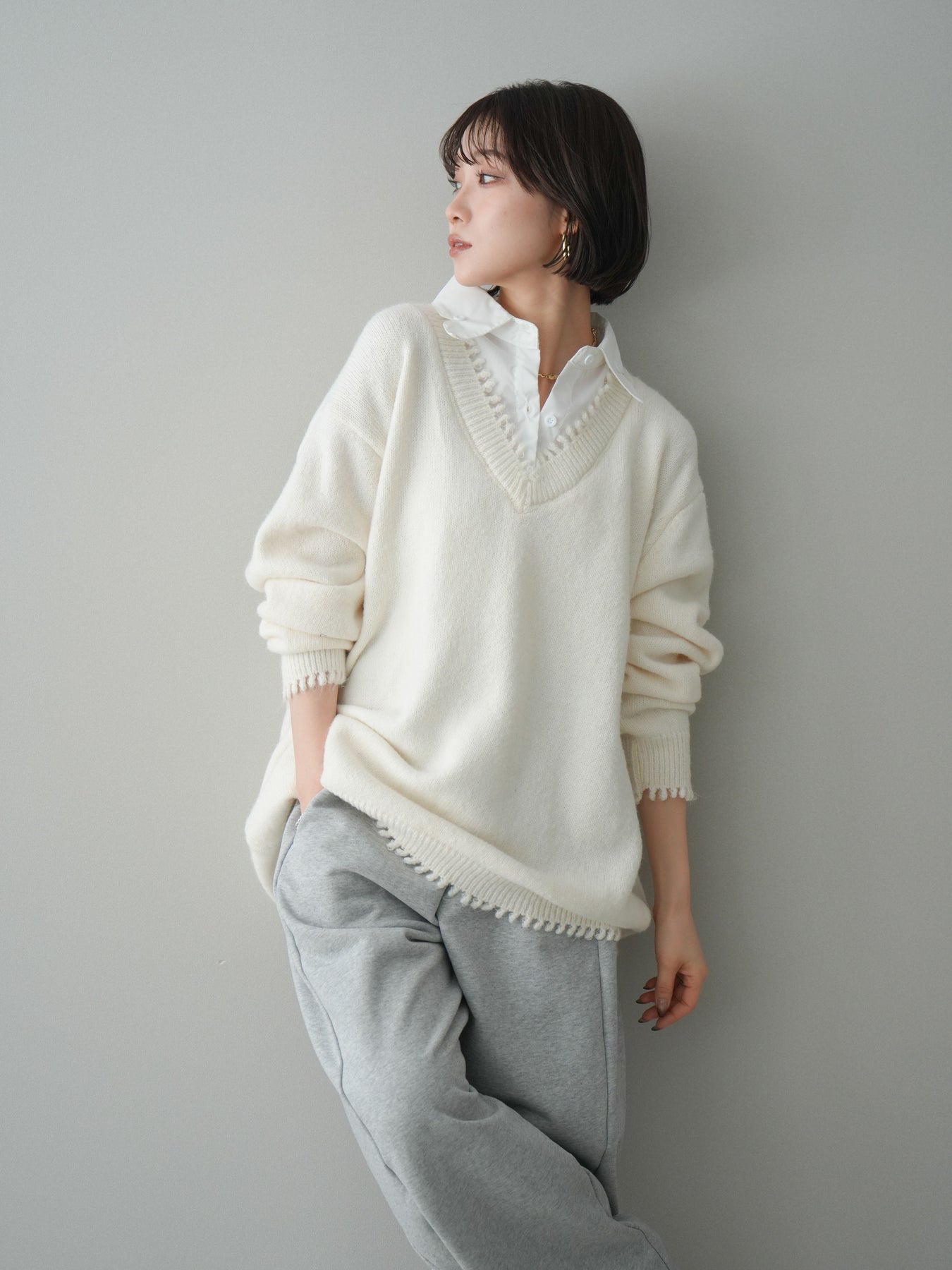 ◆ [予約]シャツドッキングVネックフリンジニットプルオーバー