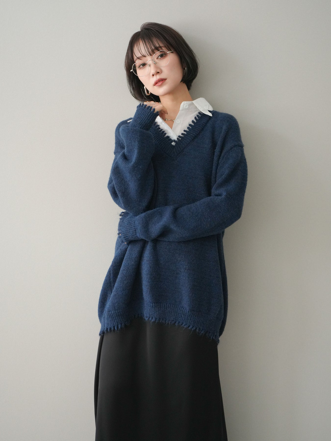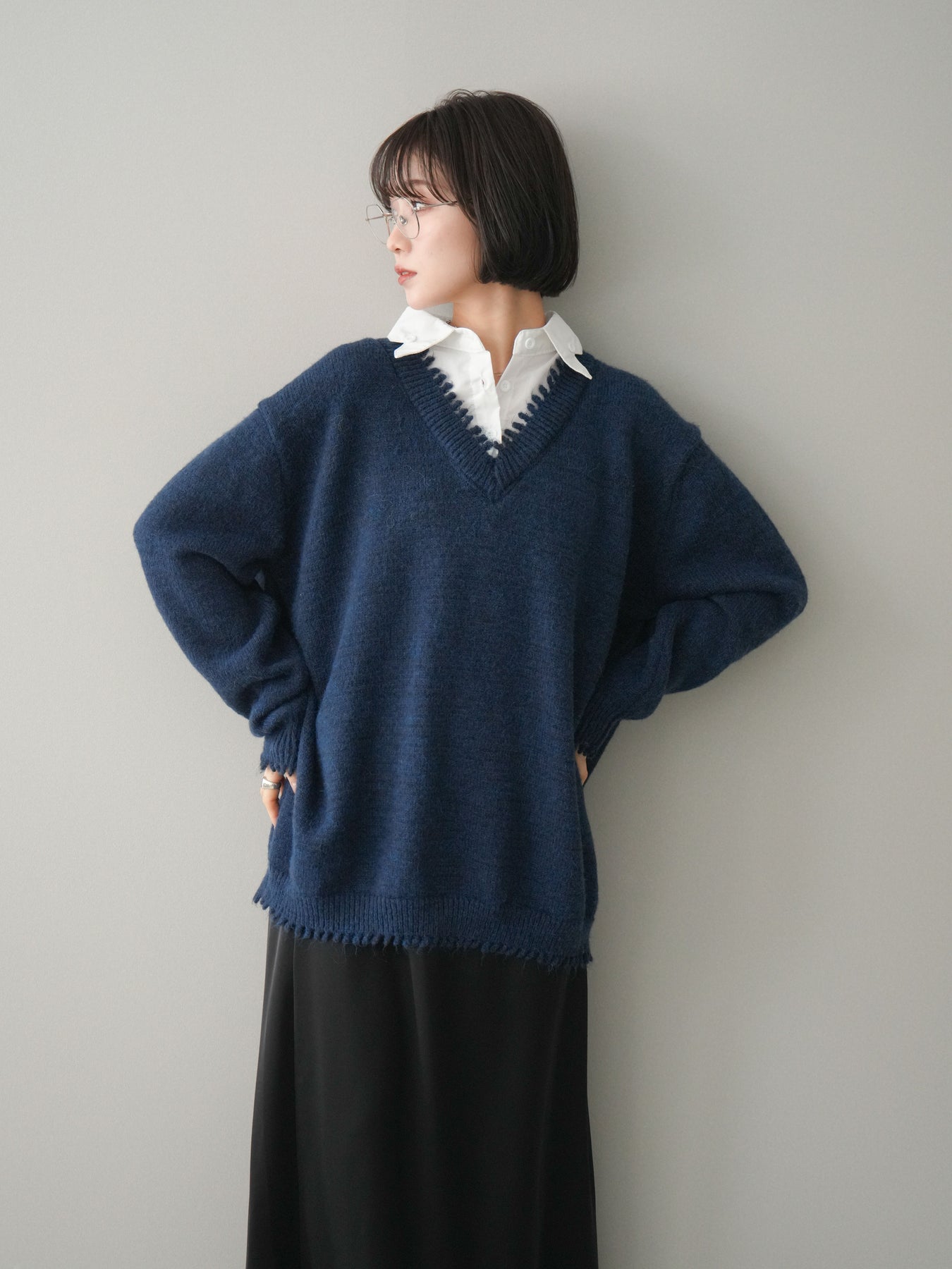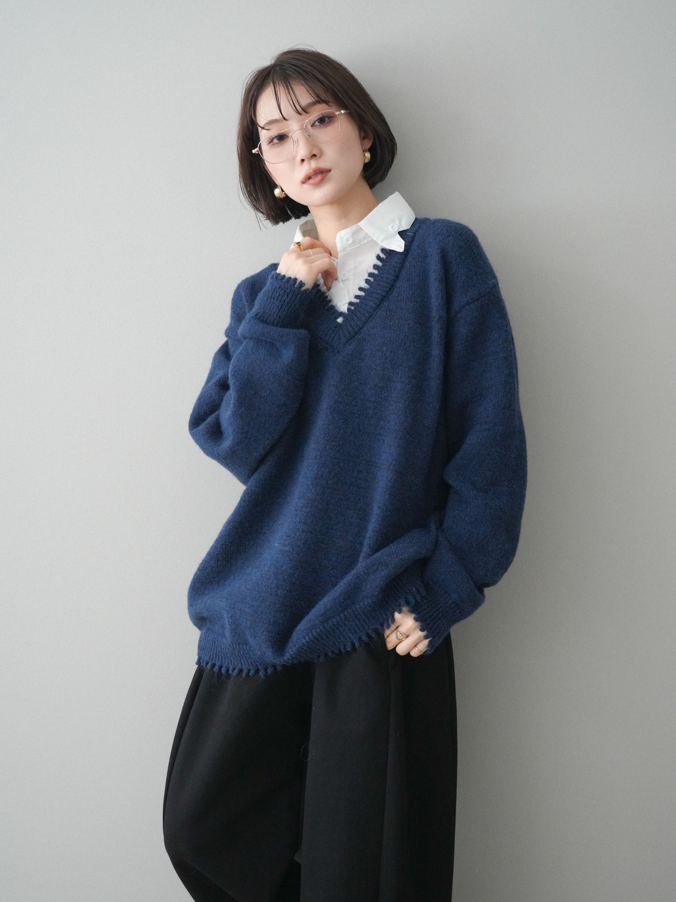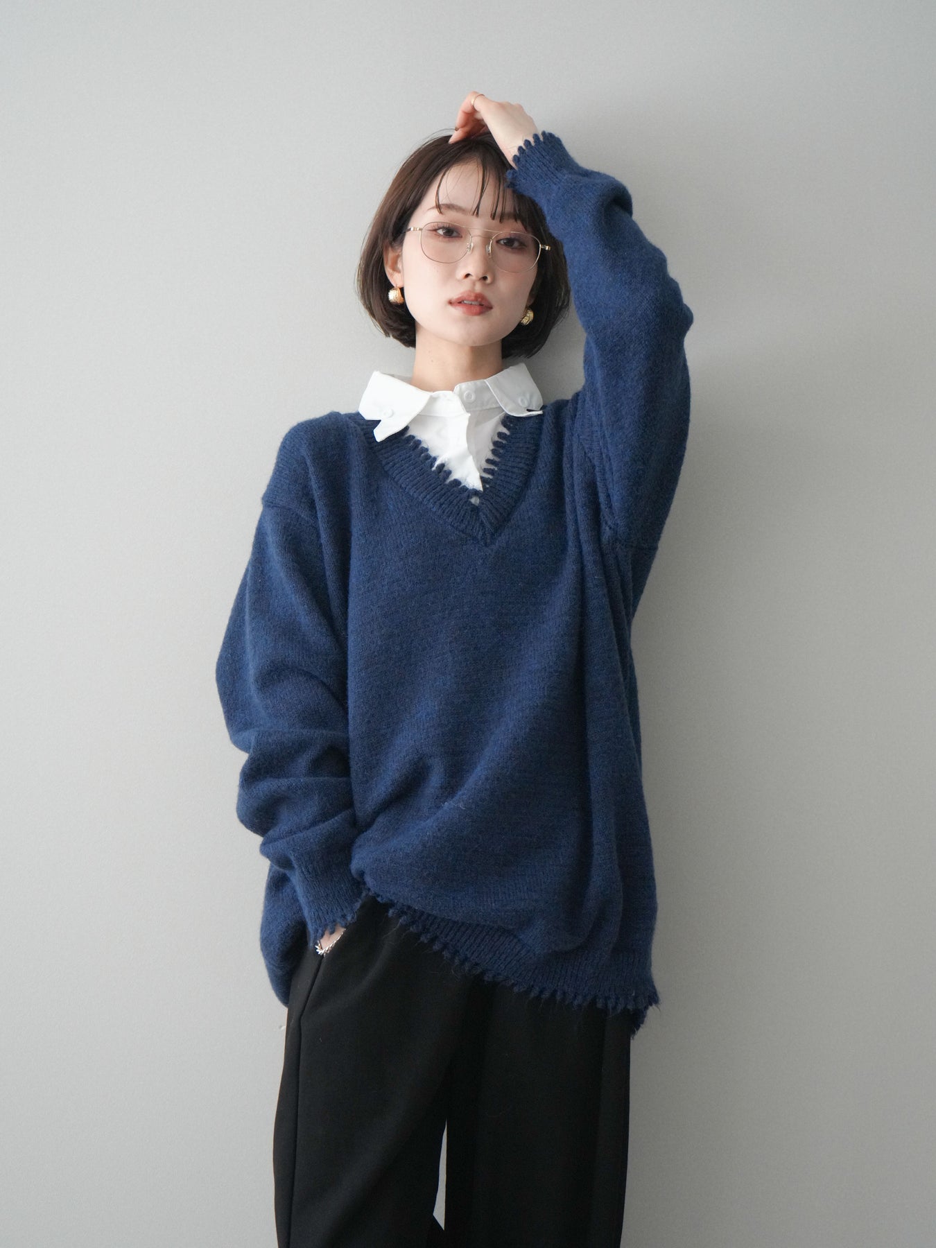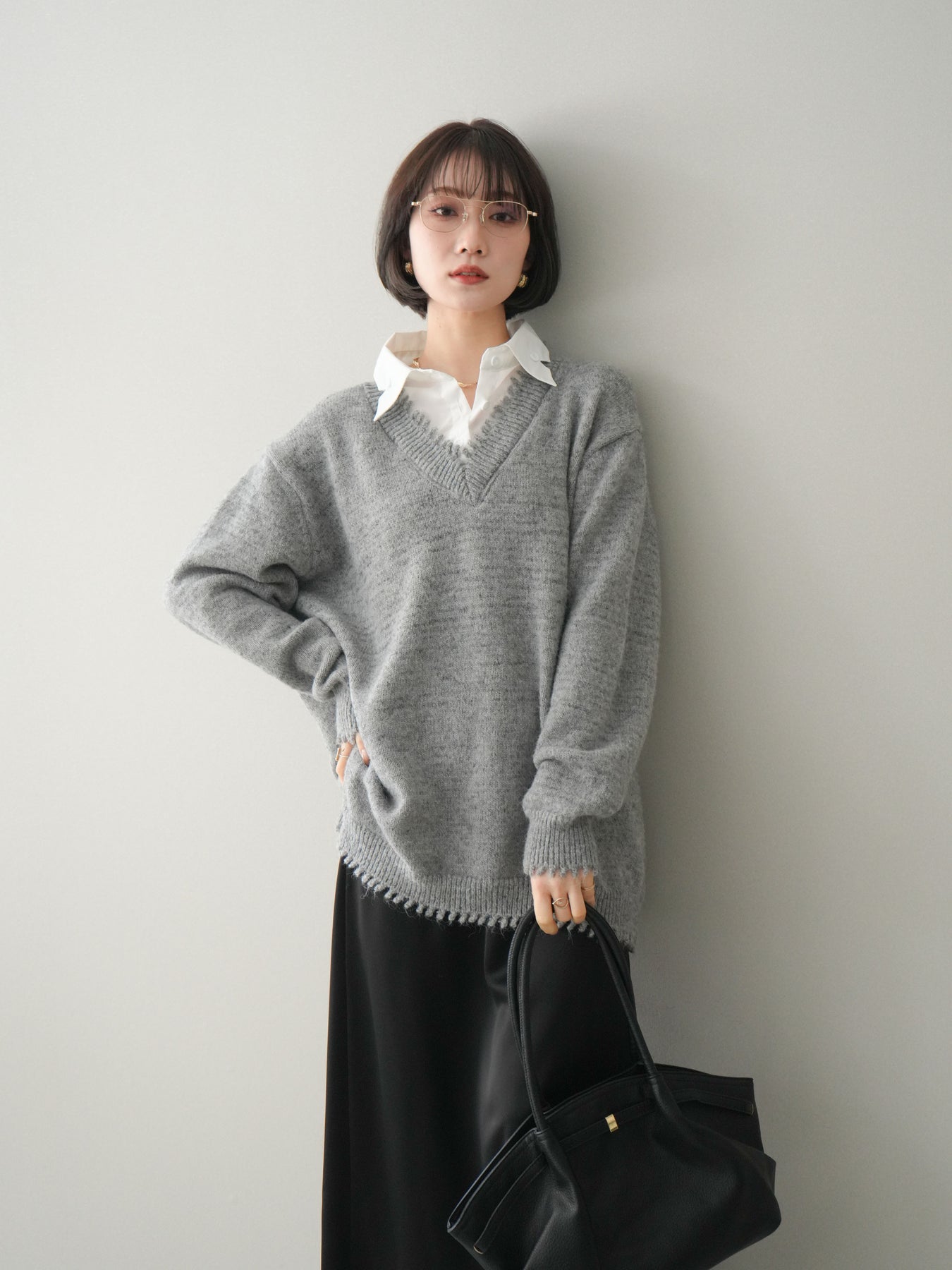 ◆ [予約]シャツドッキングVネックフリンジニットプルオーバー