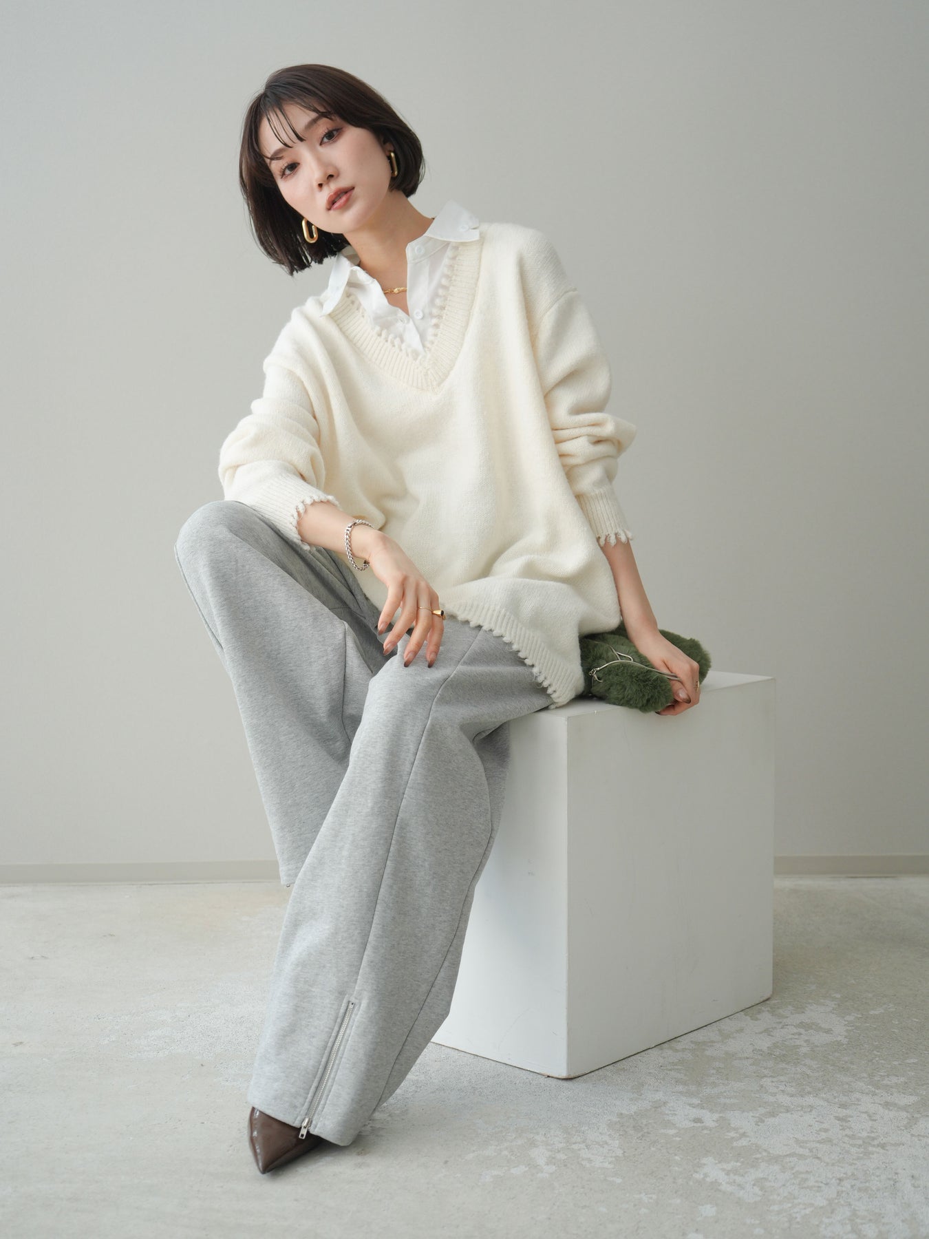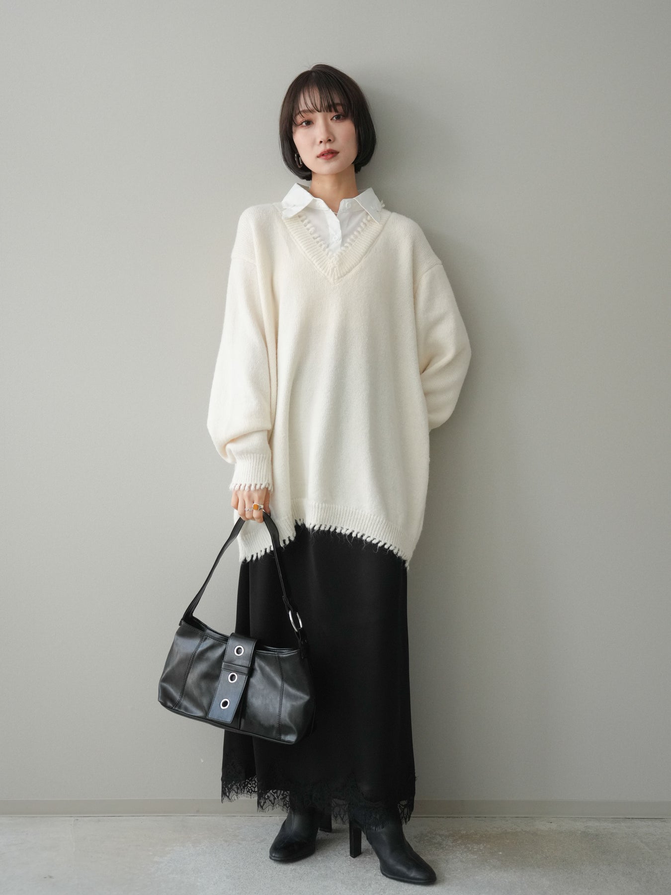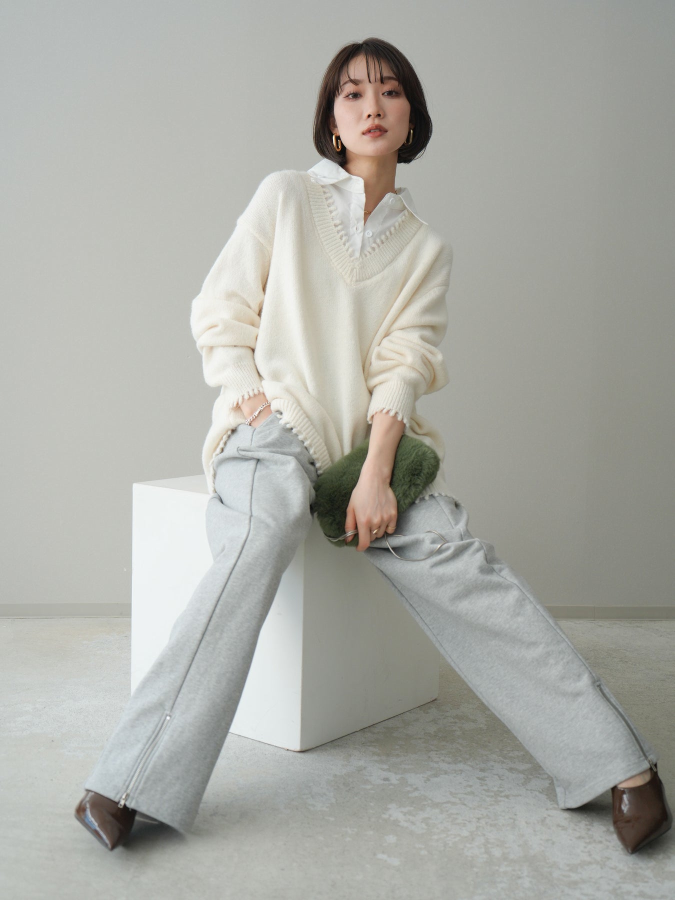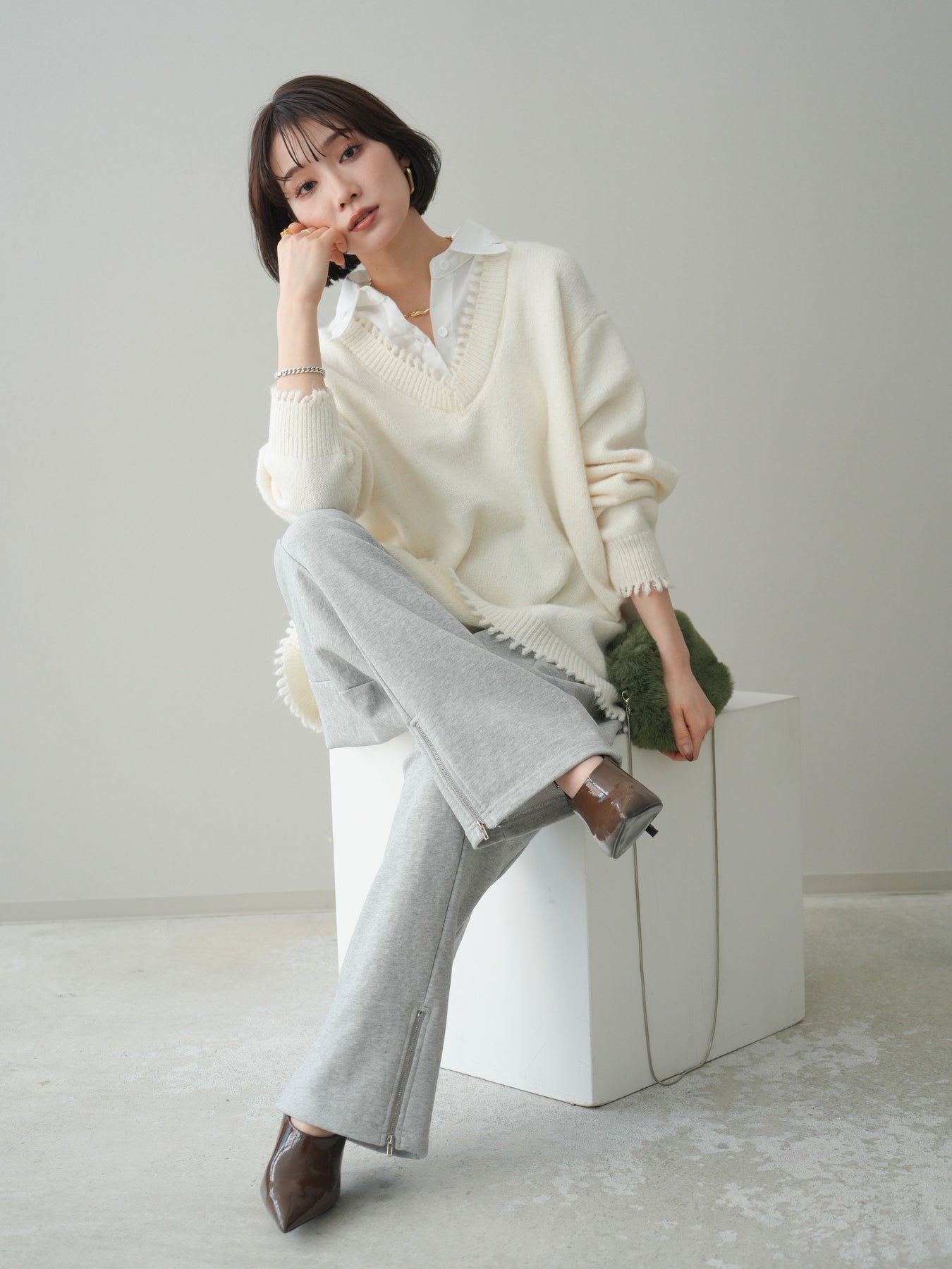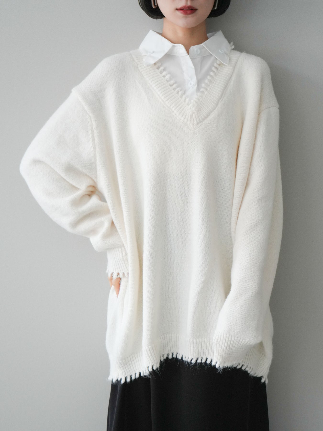 ◆ [予約]シャツドッキングVネックフリンジニットプルオーバー