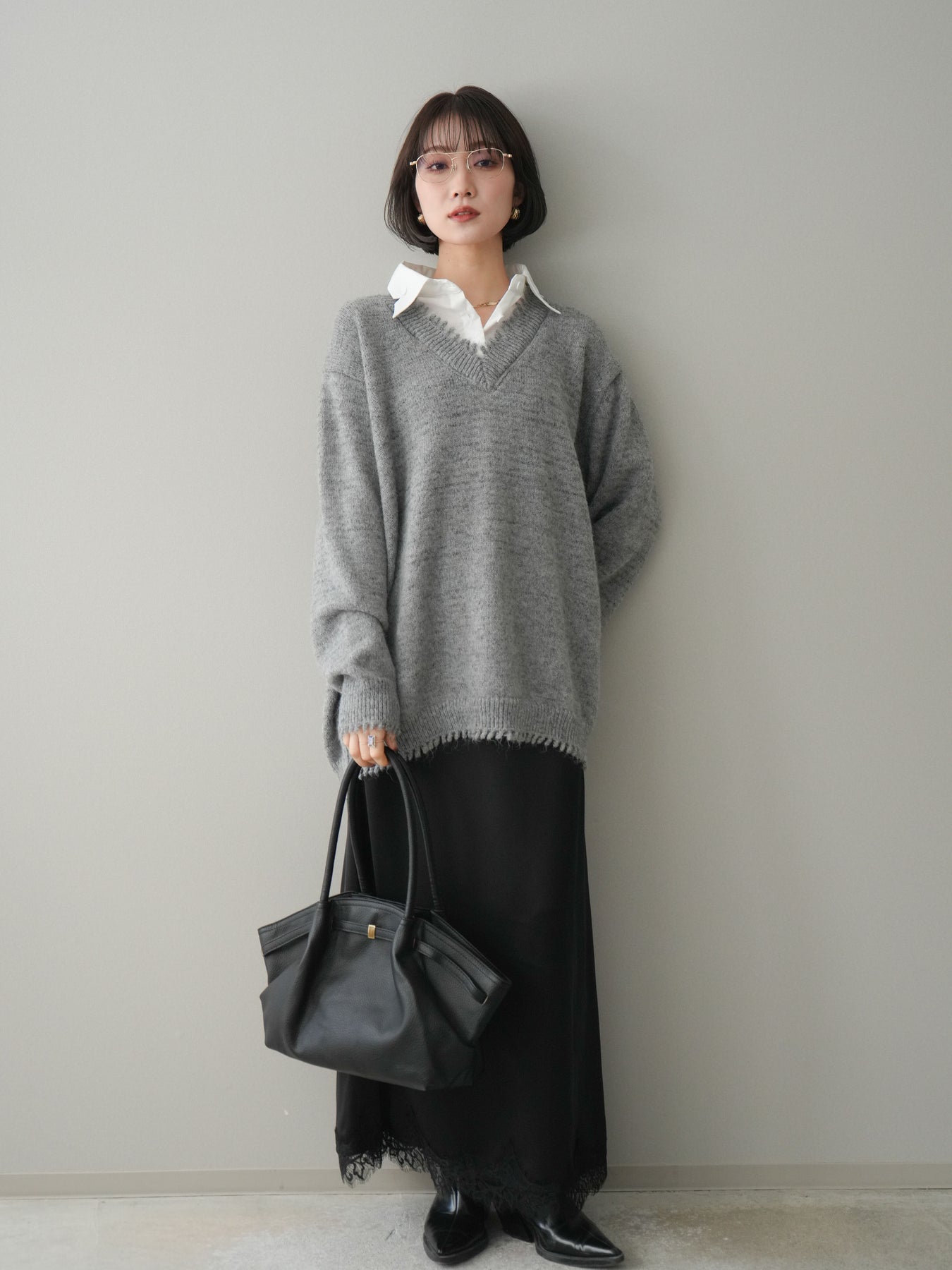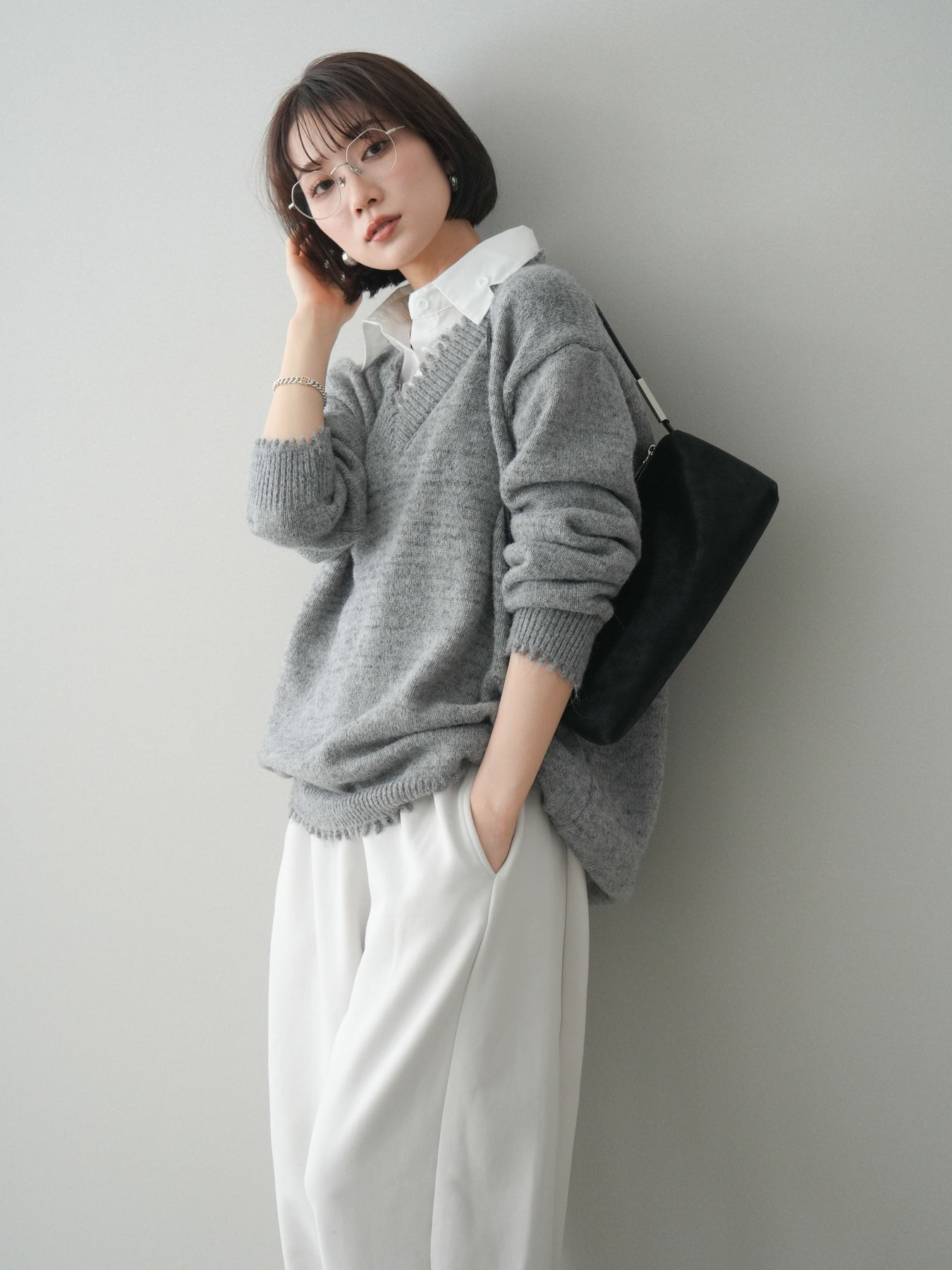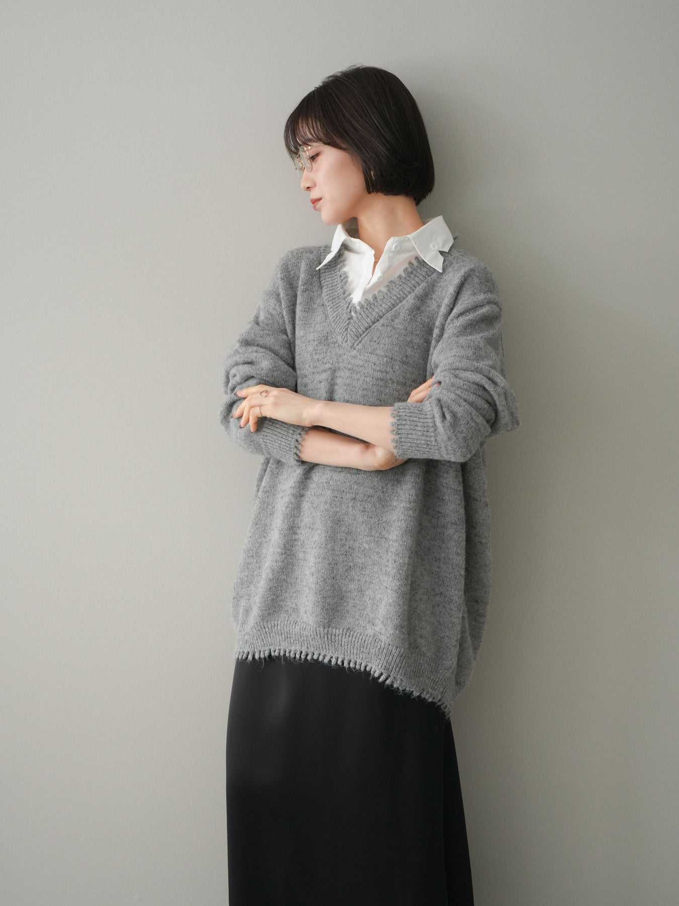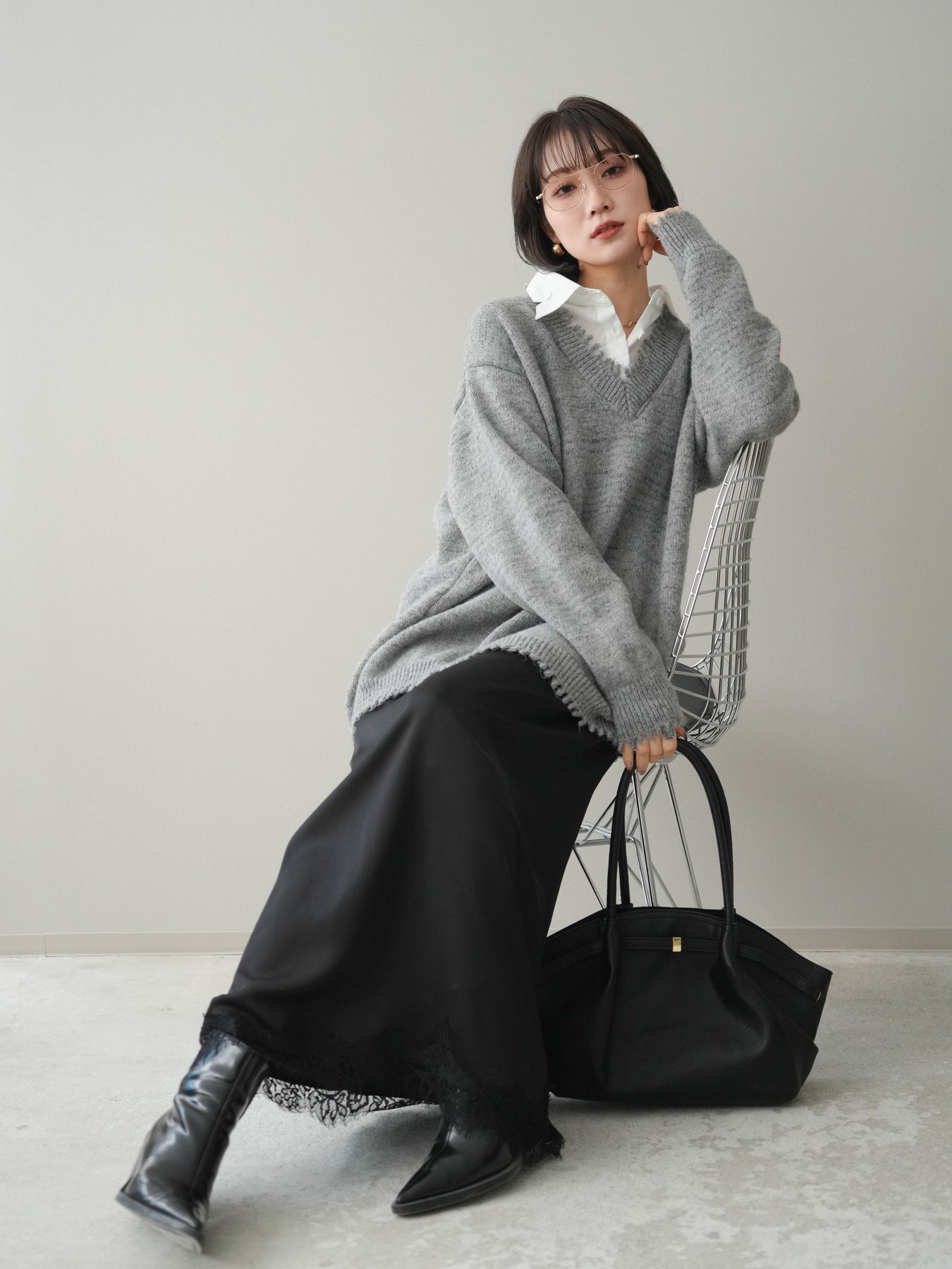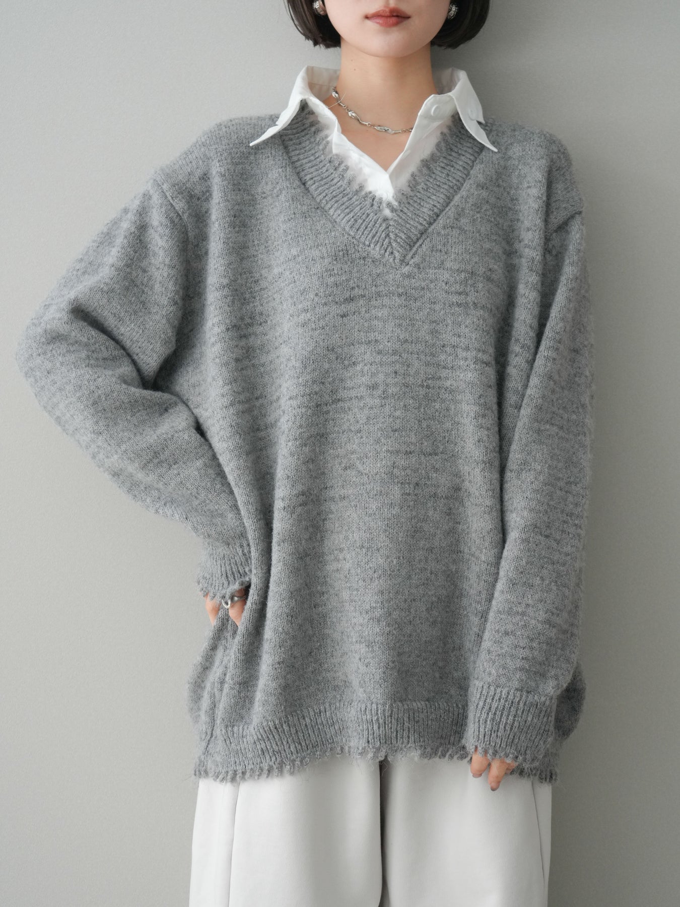 ◆ [予約]シャツドッキングVネックフリンジニットプルオーバー