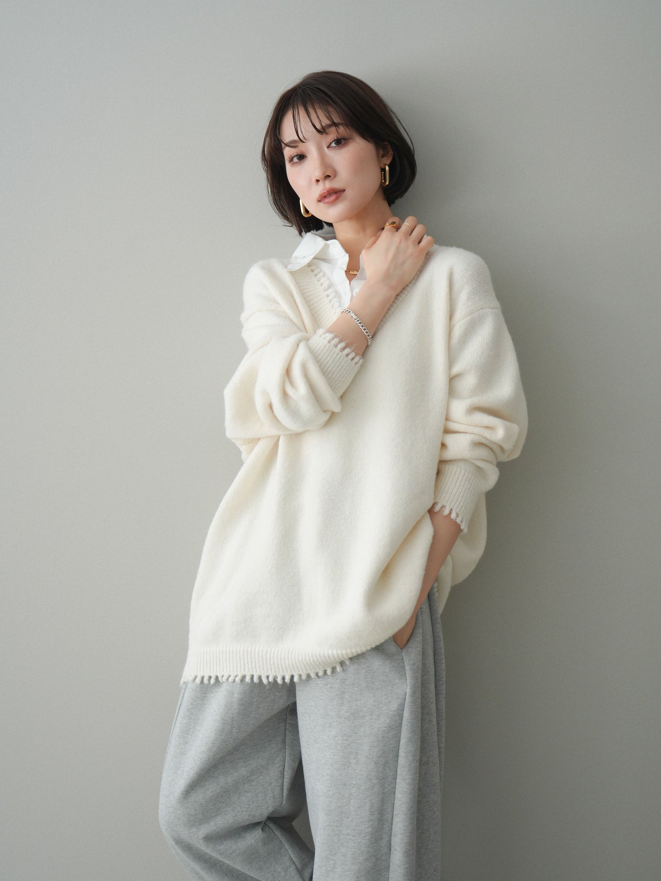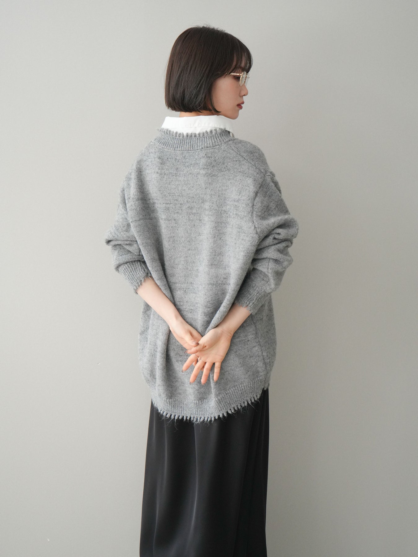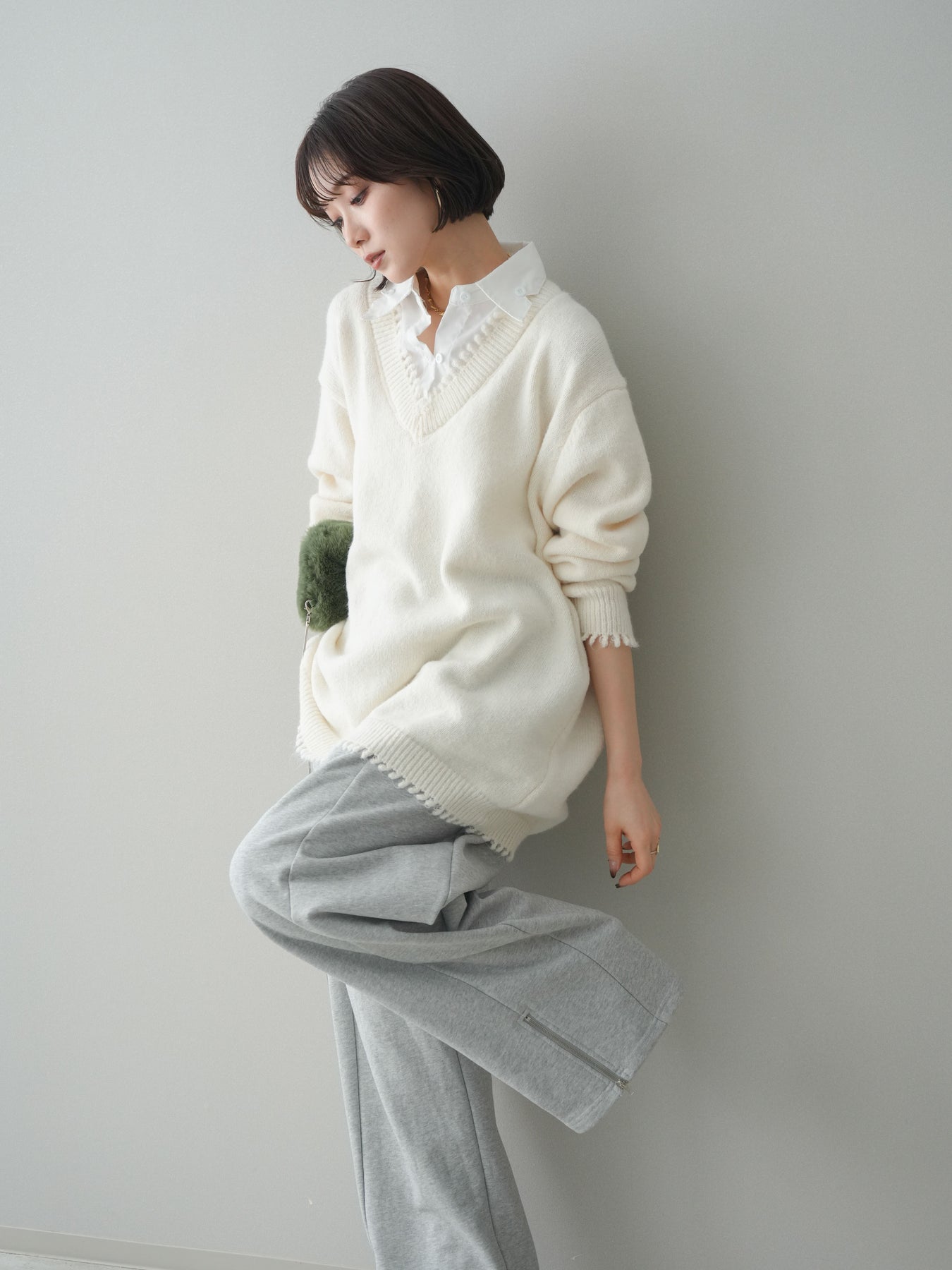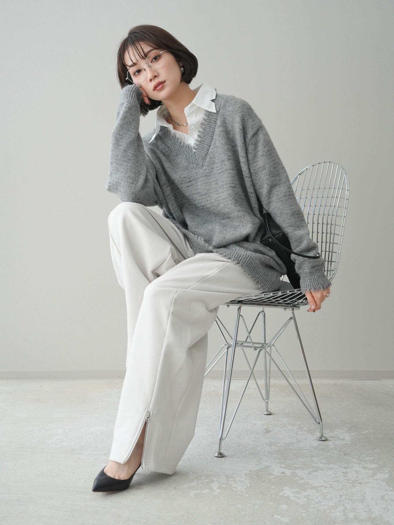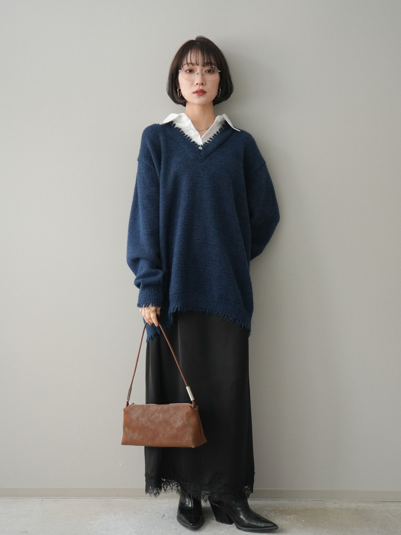 ◆ [予約]シャツドッキングVネックフリンジニットプルオーバー