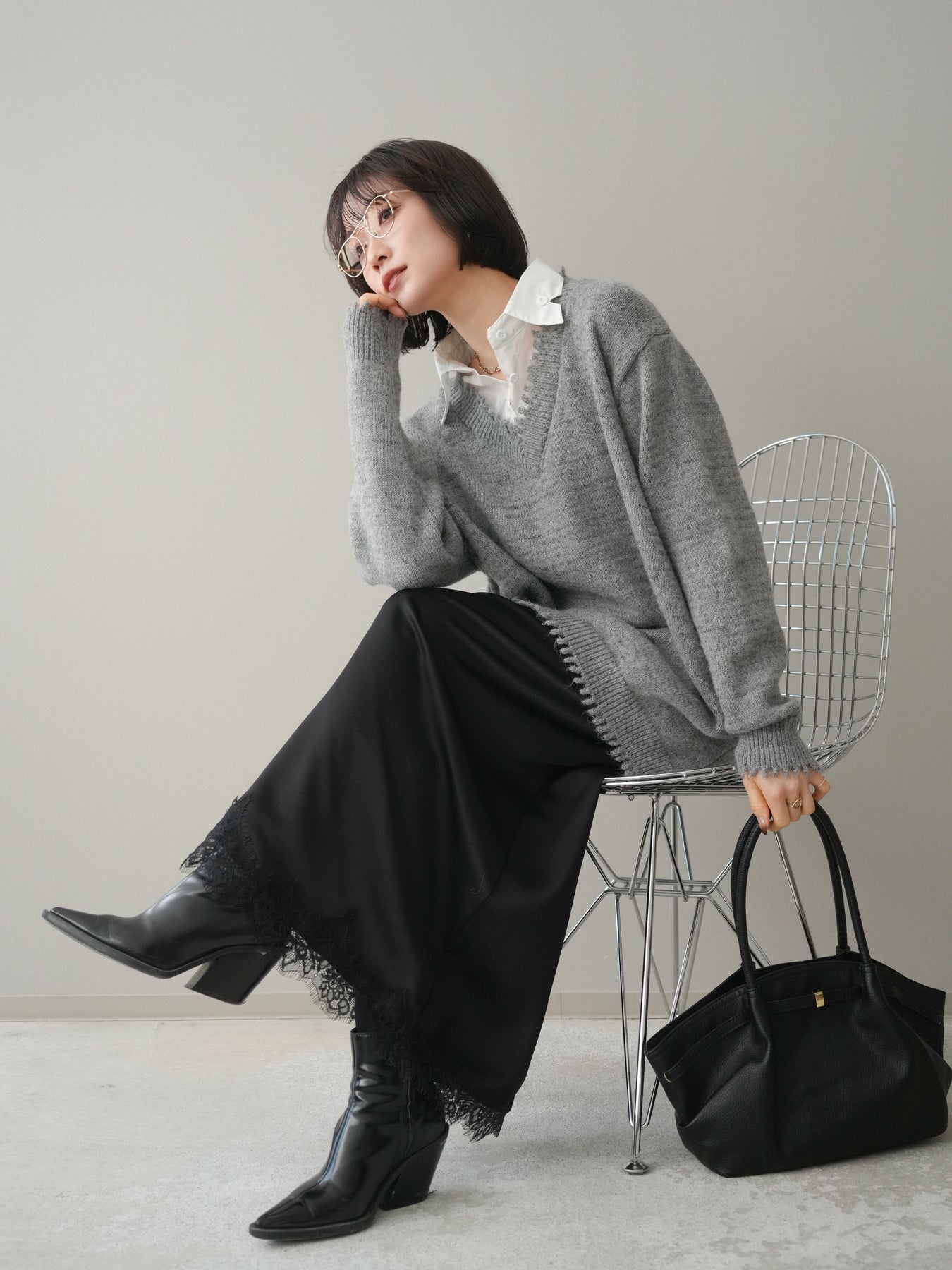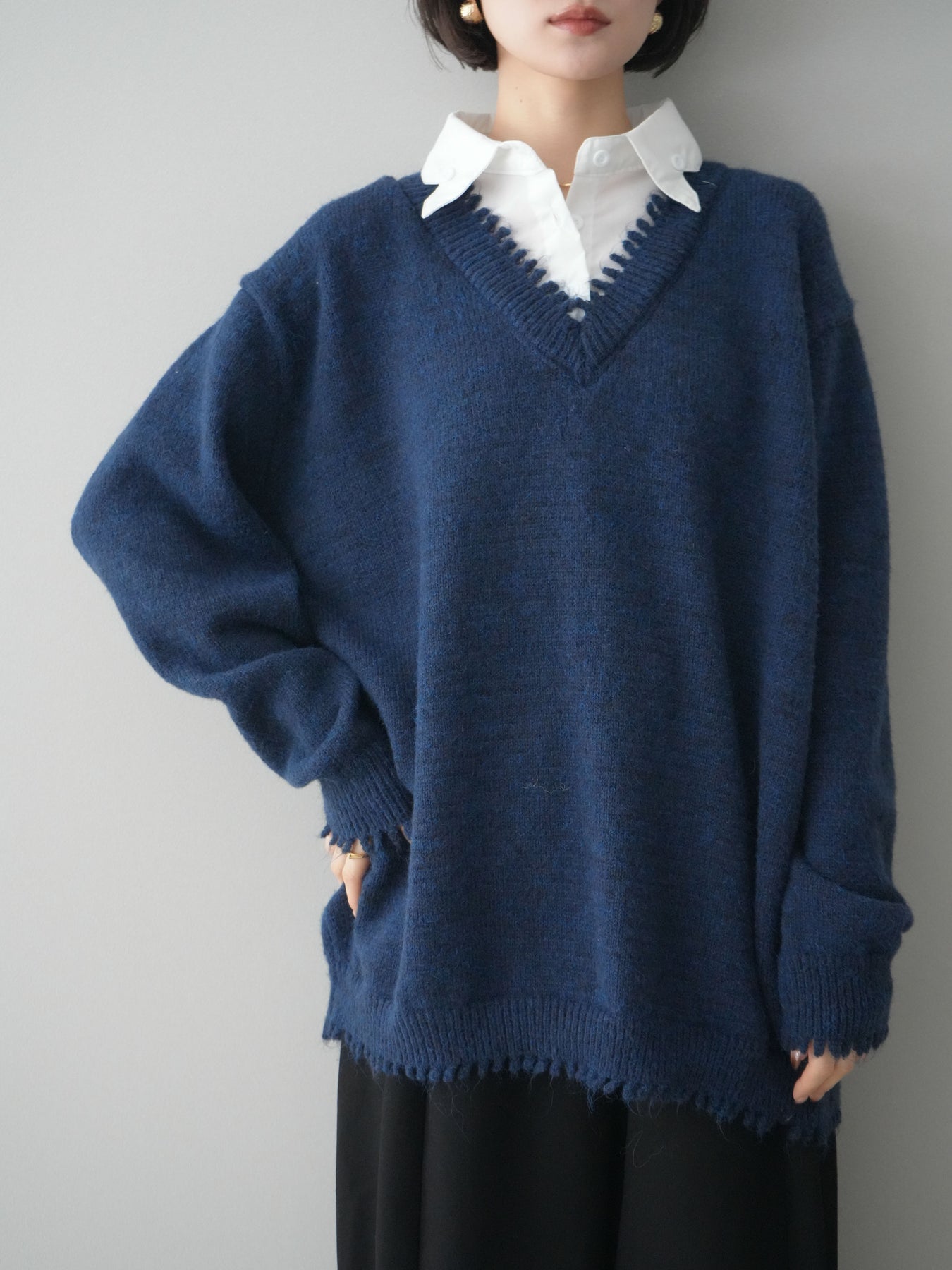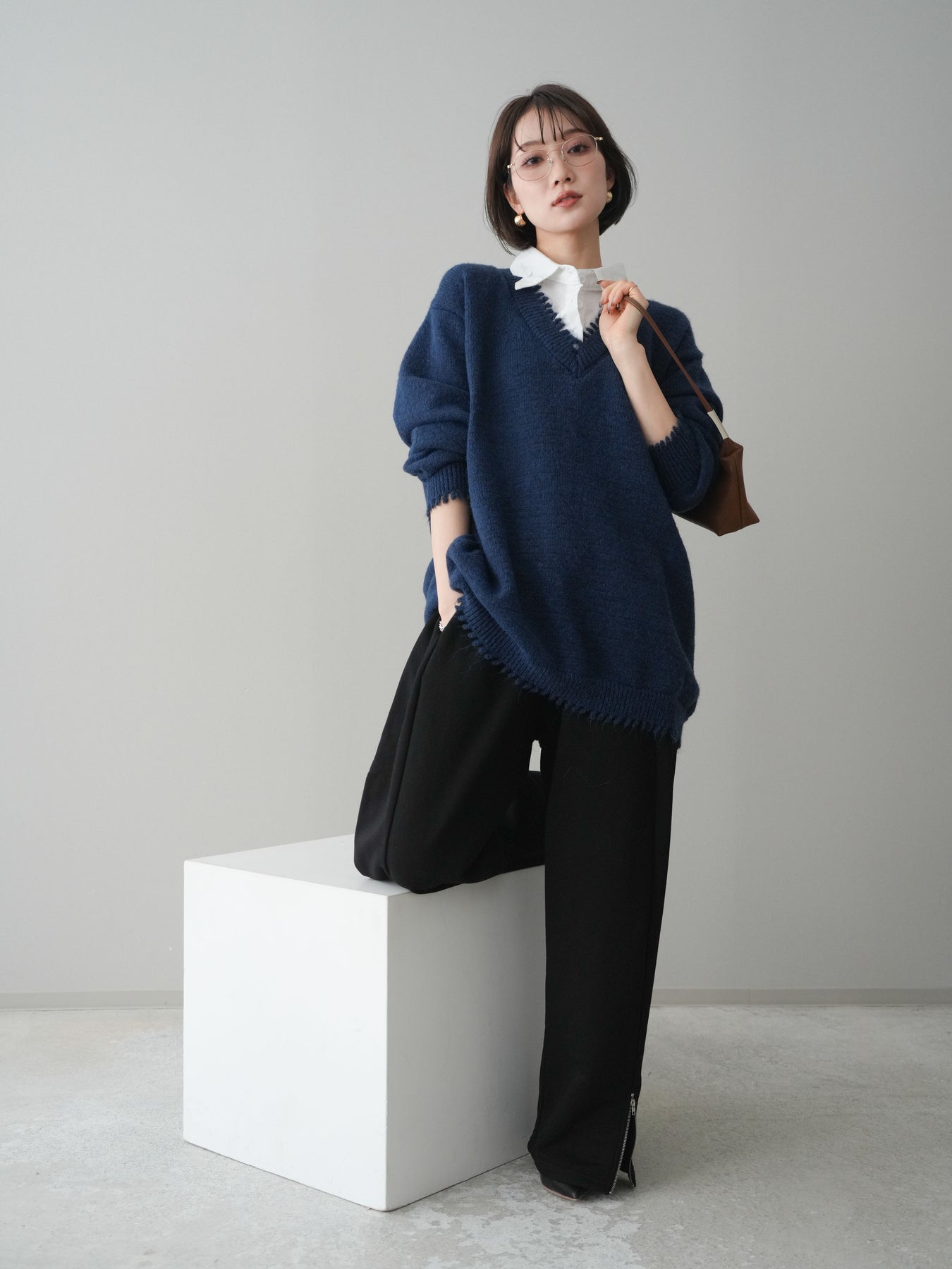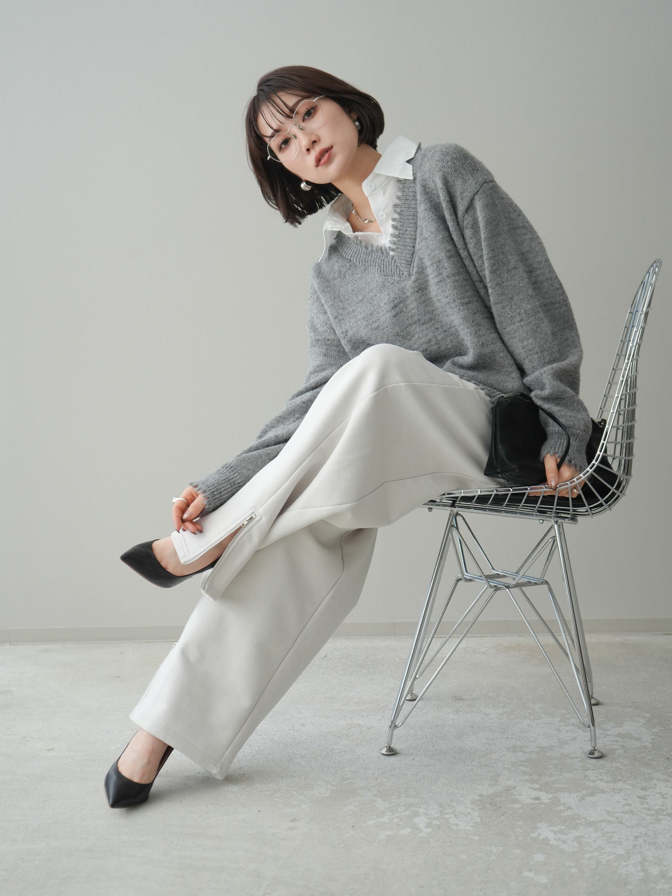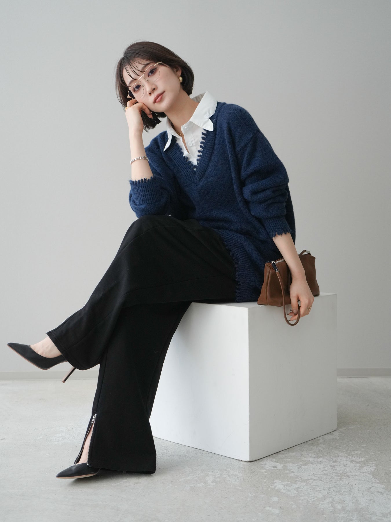 ◆ [予約]シャツドッキングVネックフリンジニットプルオーバー