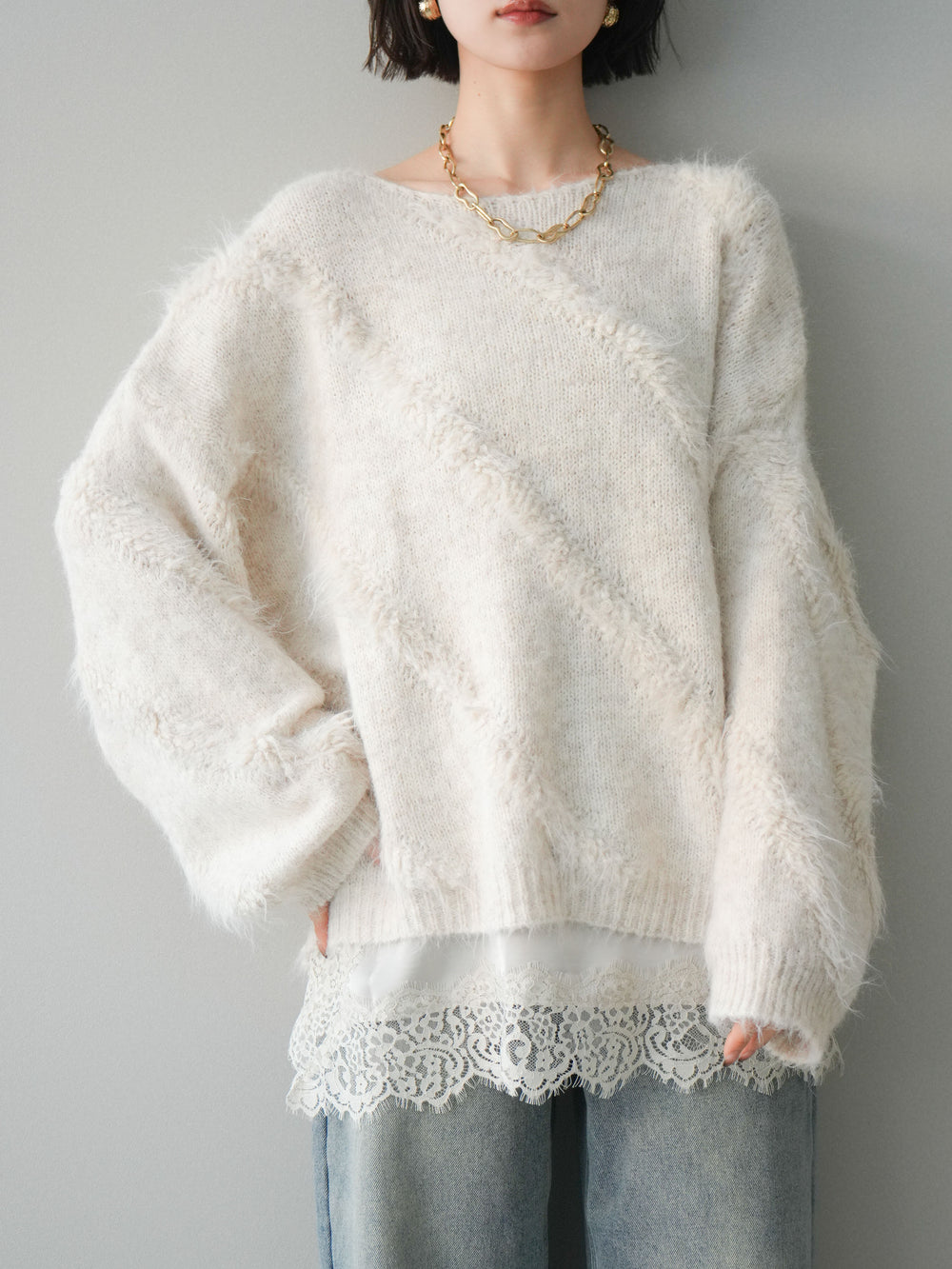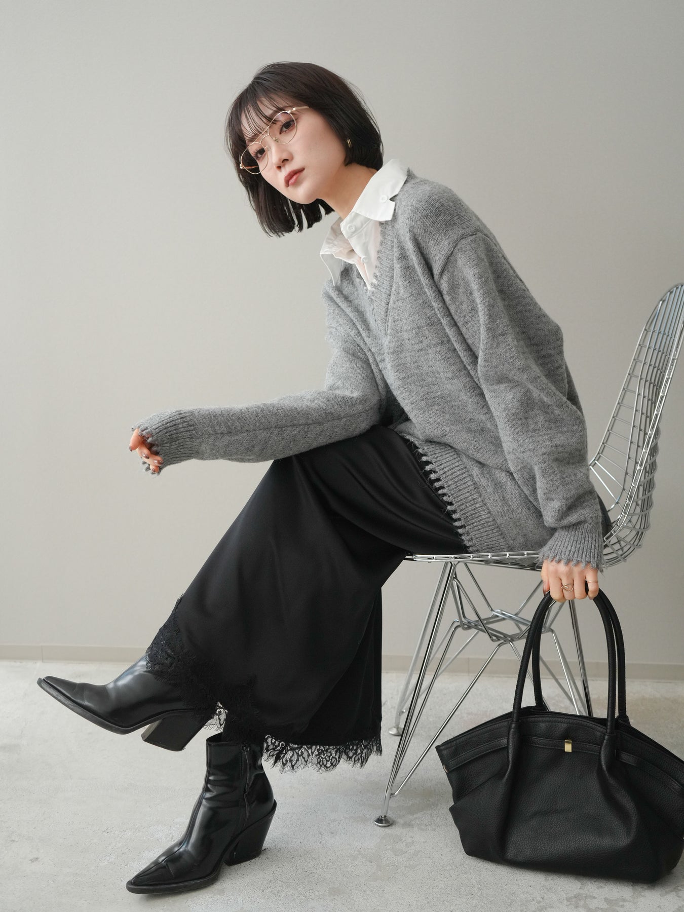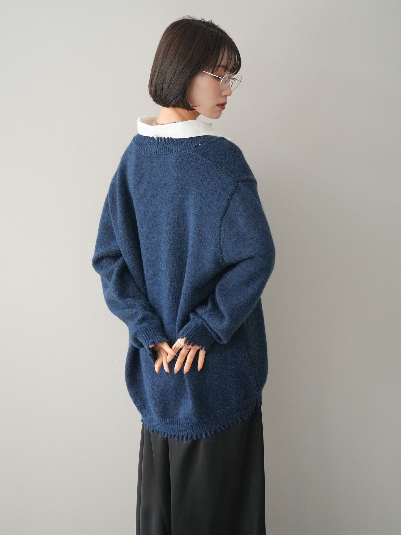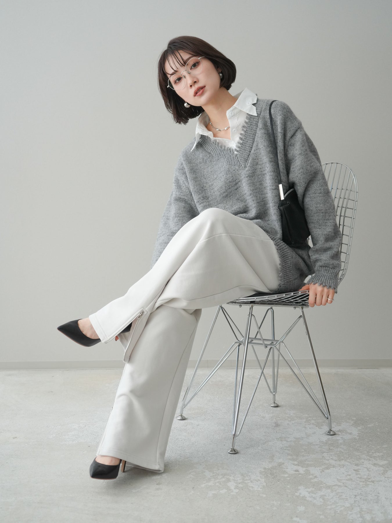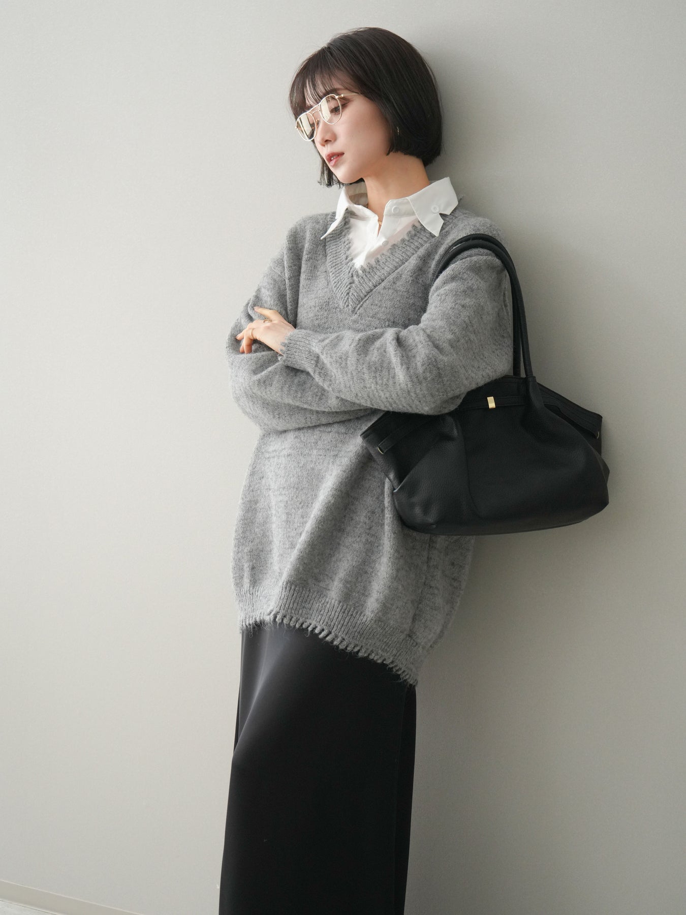 ◆ [予約]シャツドッキングVネックフリンジニットプルオーバー