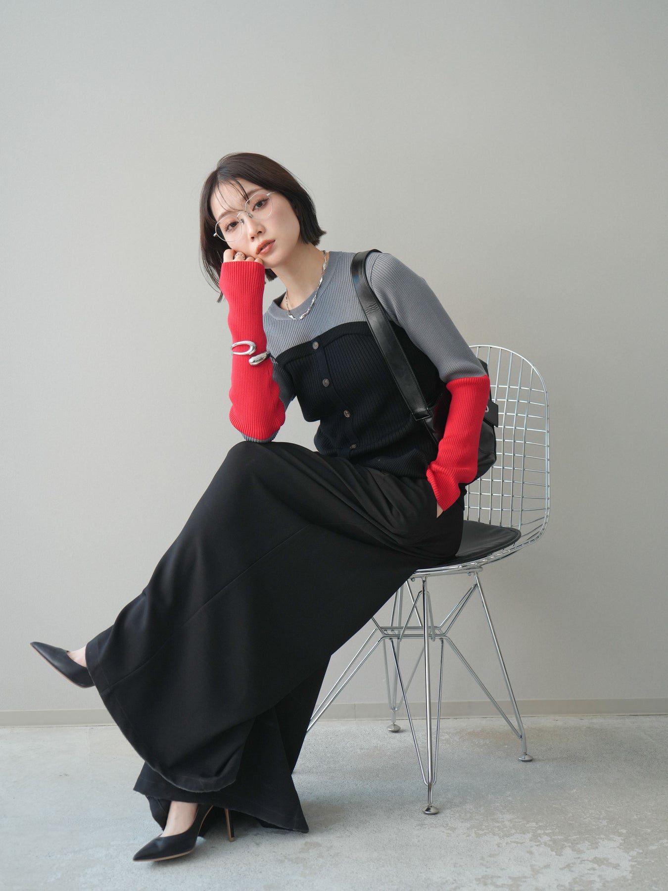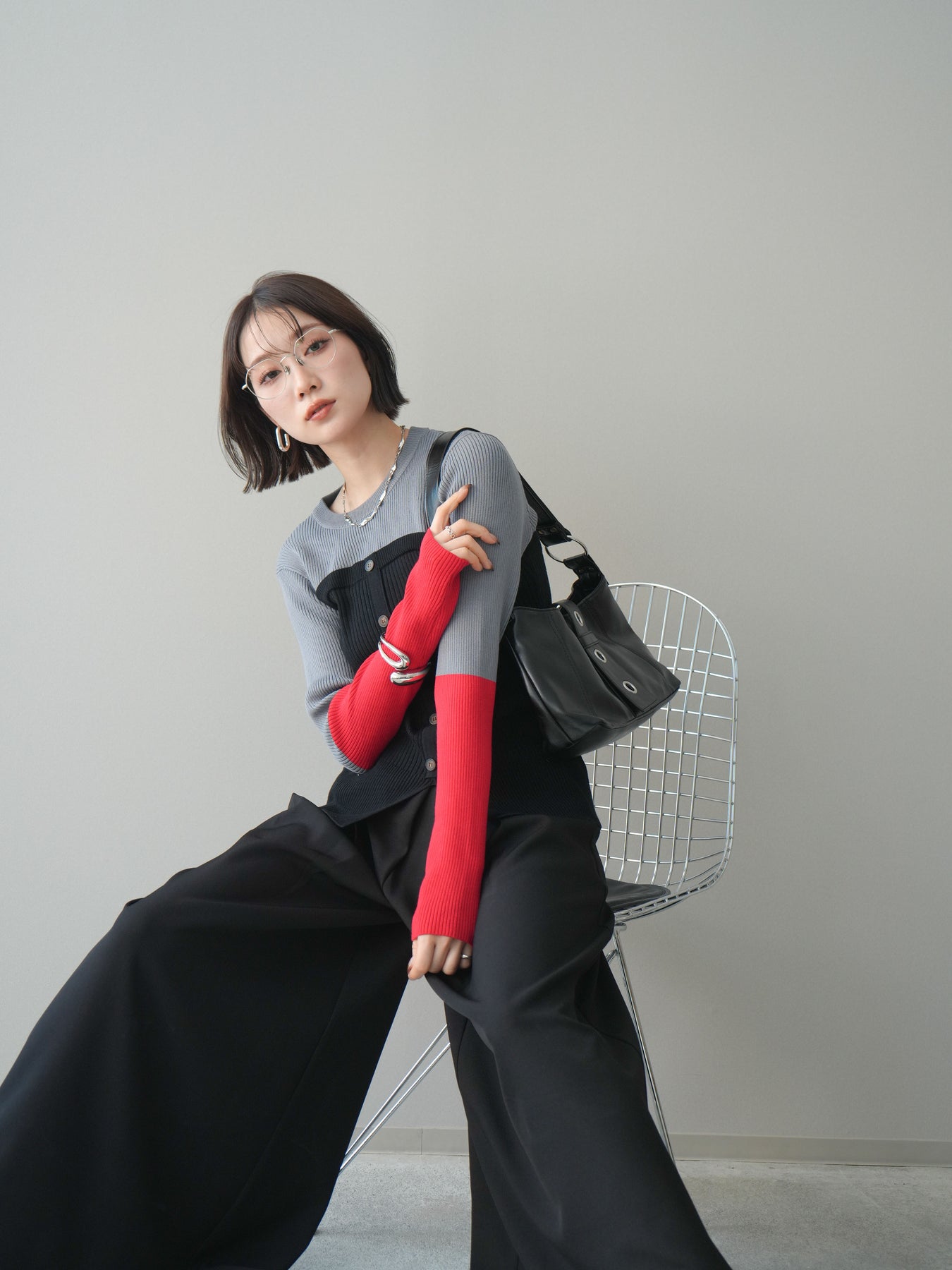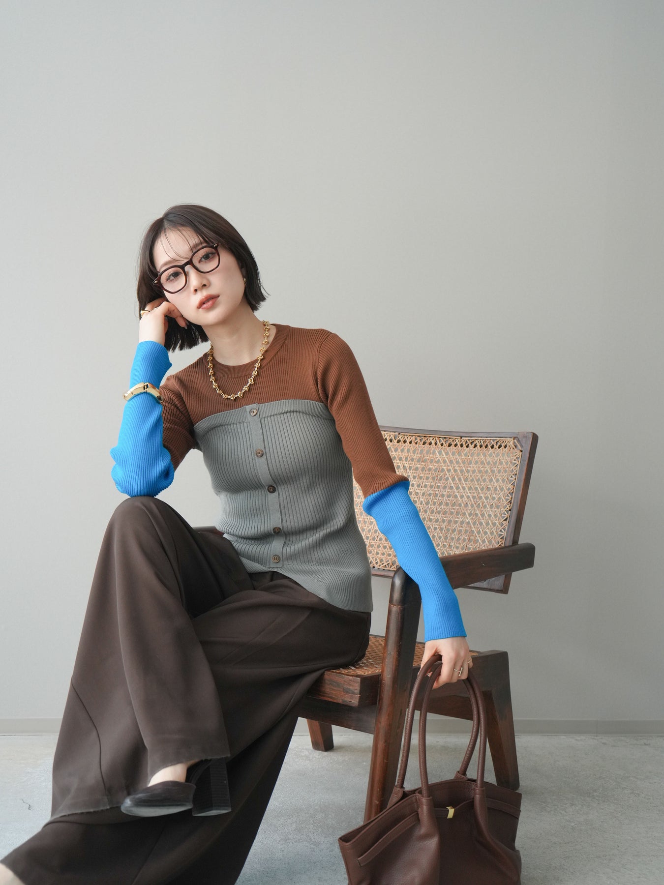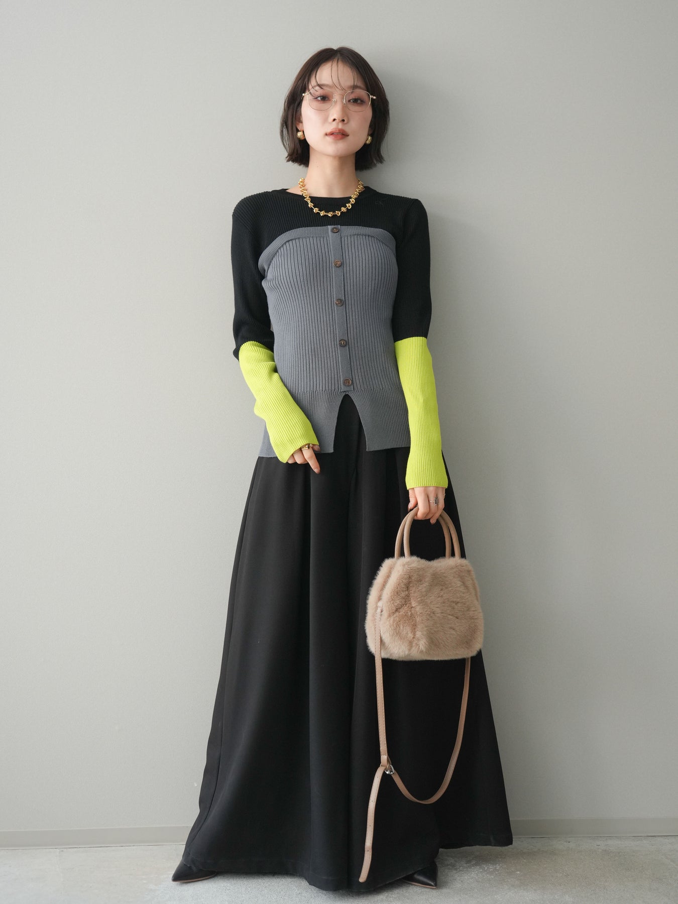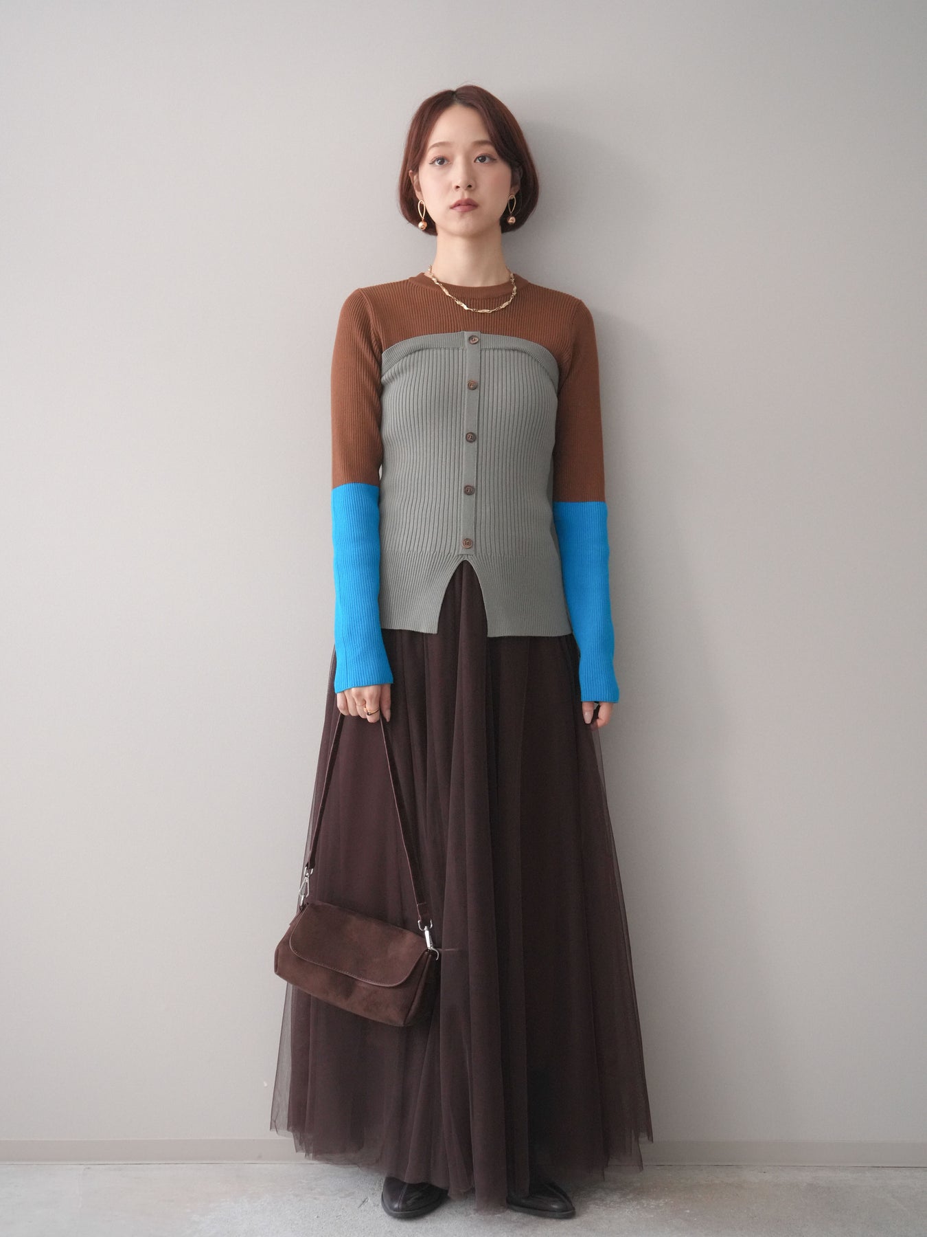 ビスチェを重ねたようなデザインが目を惹く、配色ドッキング仕様のリブニットトップス。立体感のある切り替えとフロントのボタンディテールが、シンプルな着こなしにも奥行きをプラスします。程よくフィットするリブ素材が身体のラインをきれいに見せつつ、1枚でコーディネートが完成するのも魅力。デニムやスラックス、スカートまで幅広いボトムスと相性が良く、デイリーからお出かけまで活躍する着映えアイテムです。 ※ボトムス、キャミソール(インナー)以外の商品は一律でインナーは付属していません。
