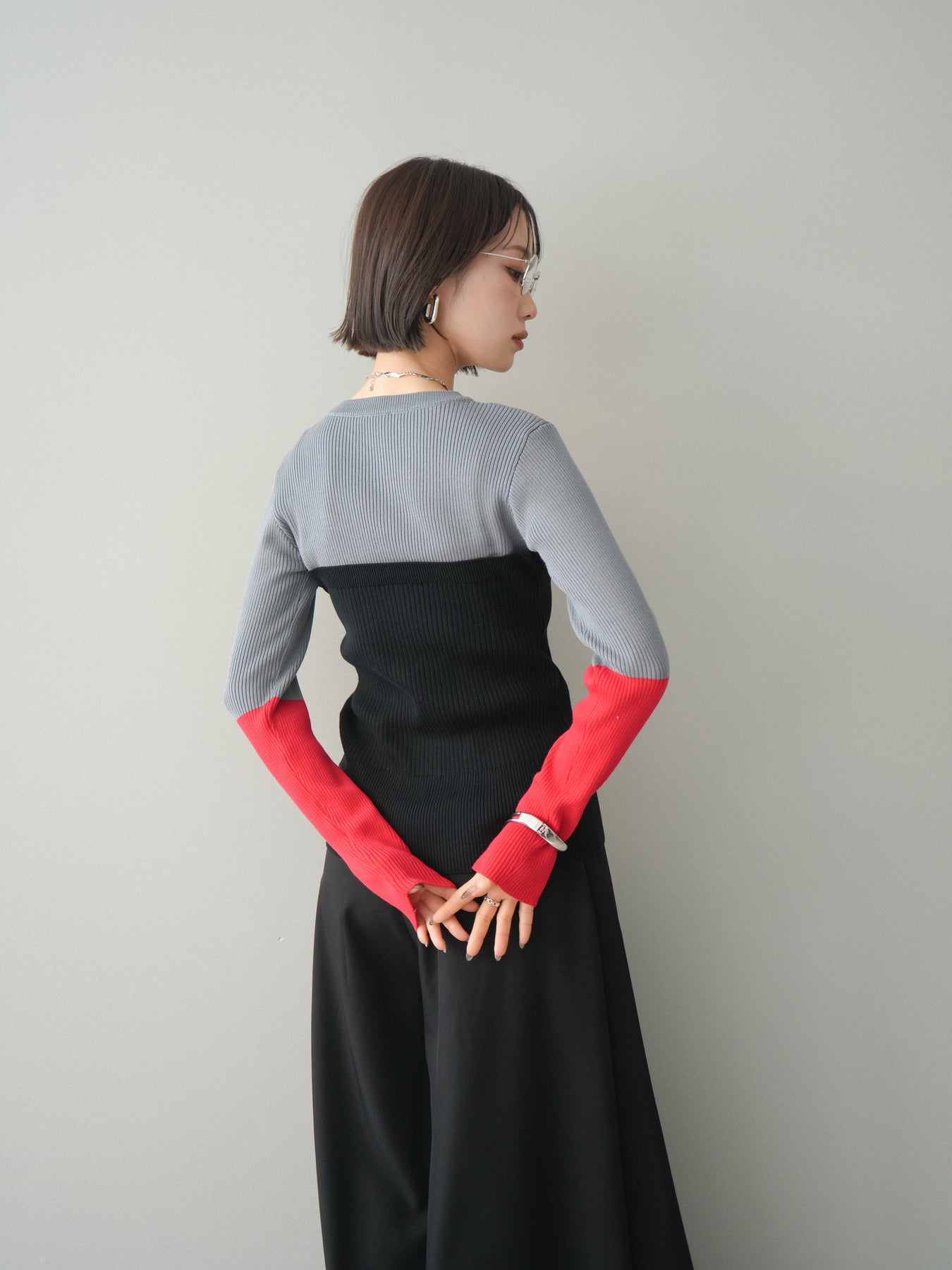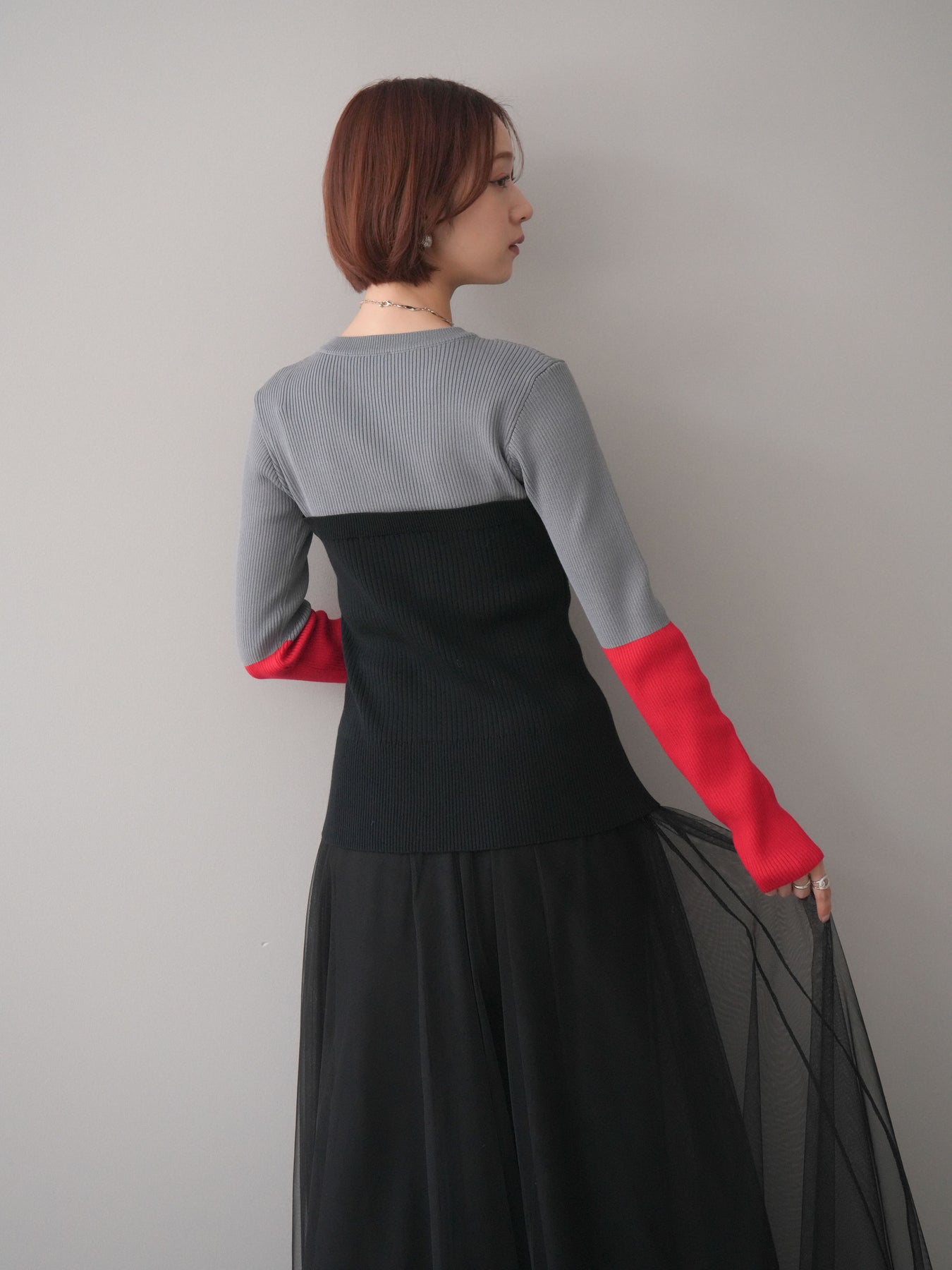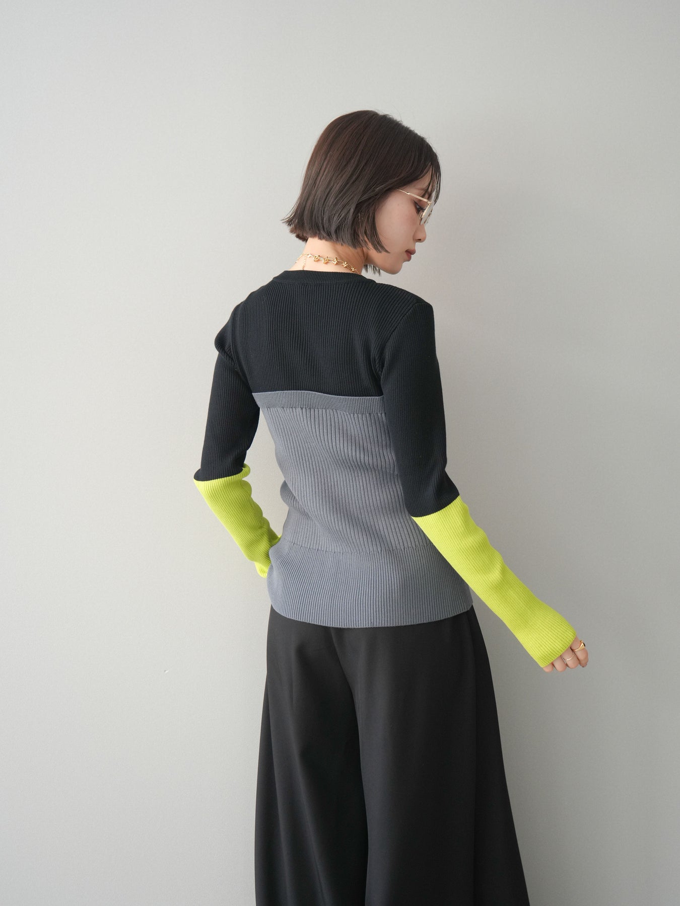 ◆ [予約]配色ビスチェドッキングリブニットトップス