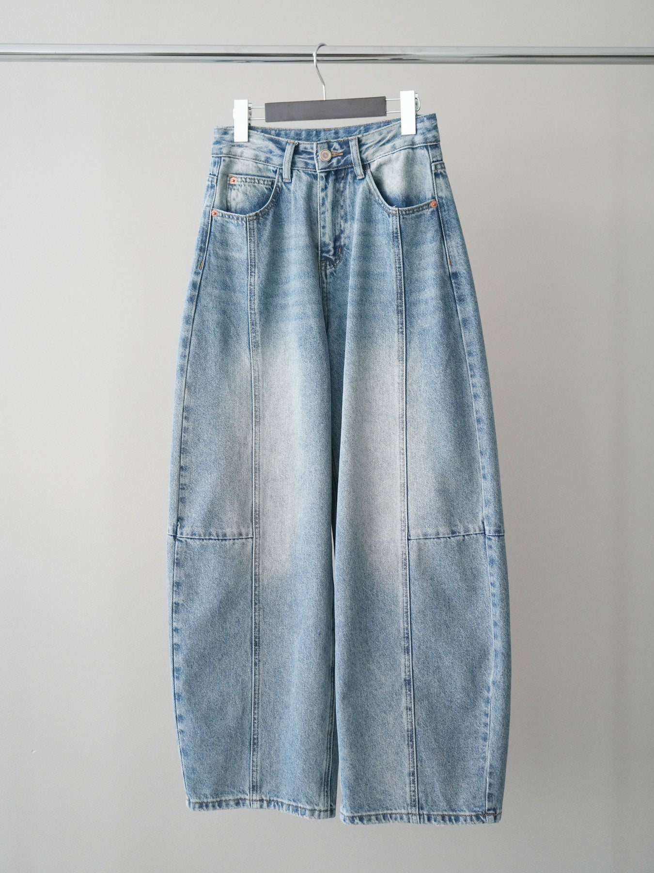 ガーメントウォッシュ加工による、こなれた風合いが魅力のカーブデニムパンツ。立体的な切り替えと丸みのあるシルエットが、脚のラインを拾いにくく、自然な体型カバーを叶えます。程よく存在感のあるデザインながら、落ち着いた印象でトップスを選ばず合わせやすいのもポイント。カジュアルスタイルはもちろん、きれいめアイテムと合わせたミックスコーデにも馴染み、デイリーに活躍する一本です。