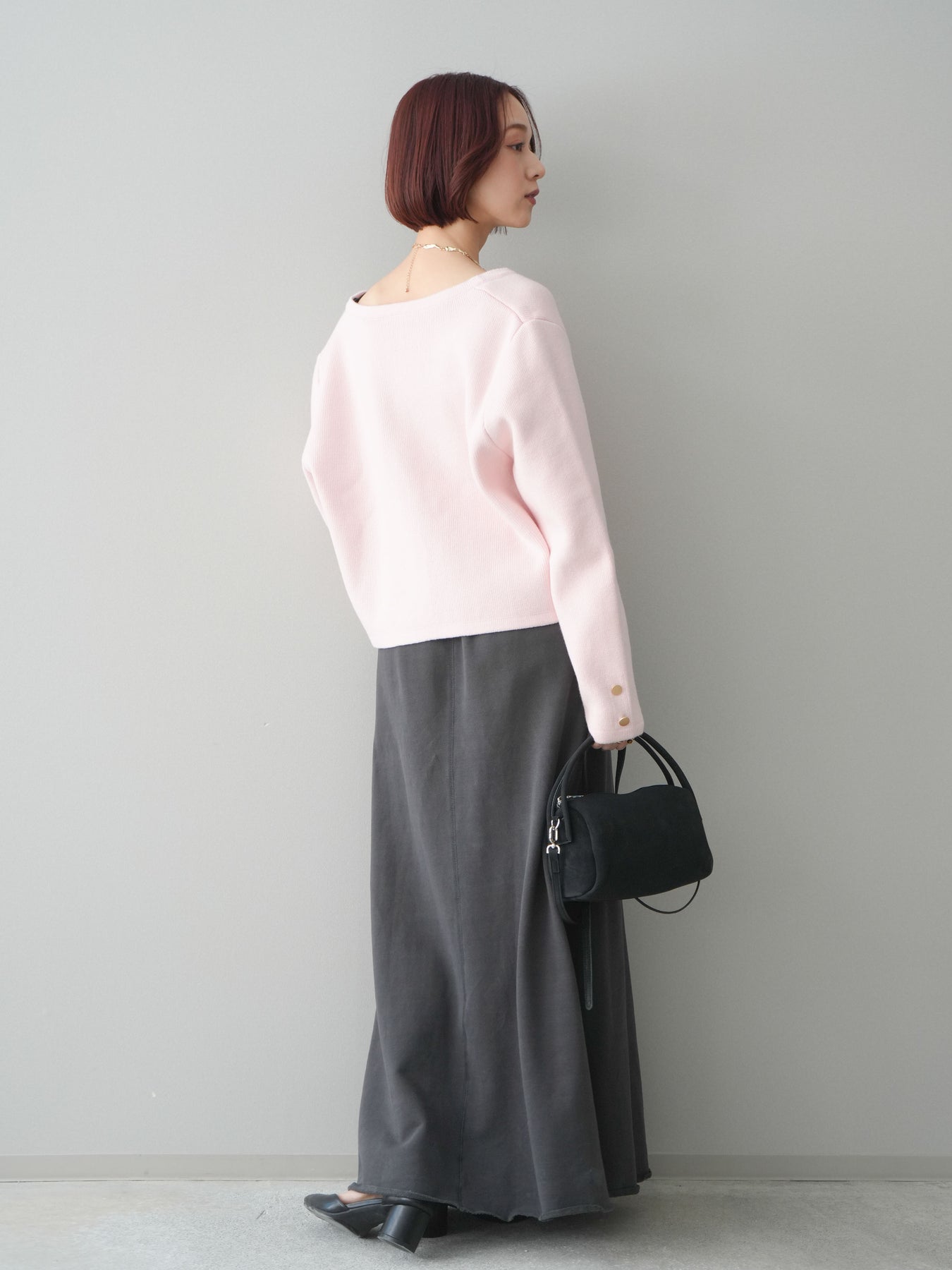 リラックス感と上品さを兼ね備えたスエット素材のロングスカート。落ち感のあるシルエットが縦のラインを美しく見せ、カジュアルながらもすっきりとした印象に仕上がります。ウエストはゴム仕様で穿き心地が良く、デイリー使いにも取り入れやすいデザイン。シンプルなトップスはもちろん、ニットやシャツとも相性が良く、合わせるアイテム次第で幅広いスタイリングが楽しめる一着です。