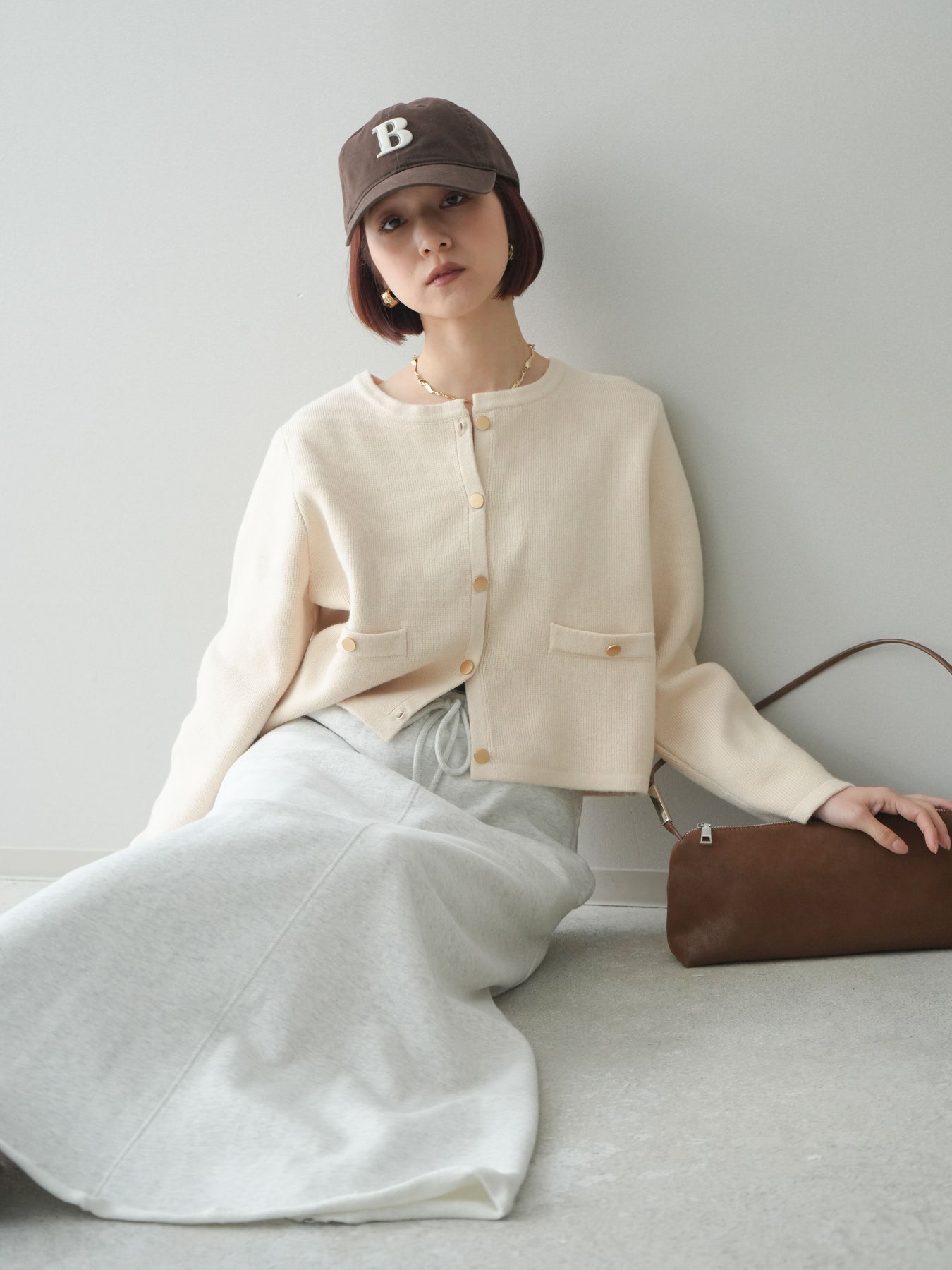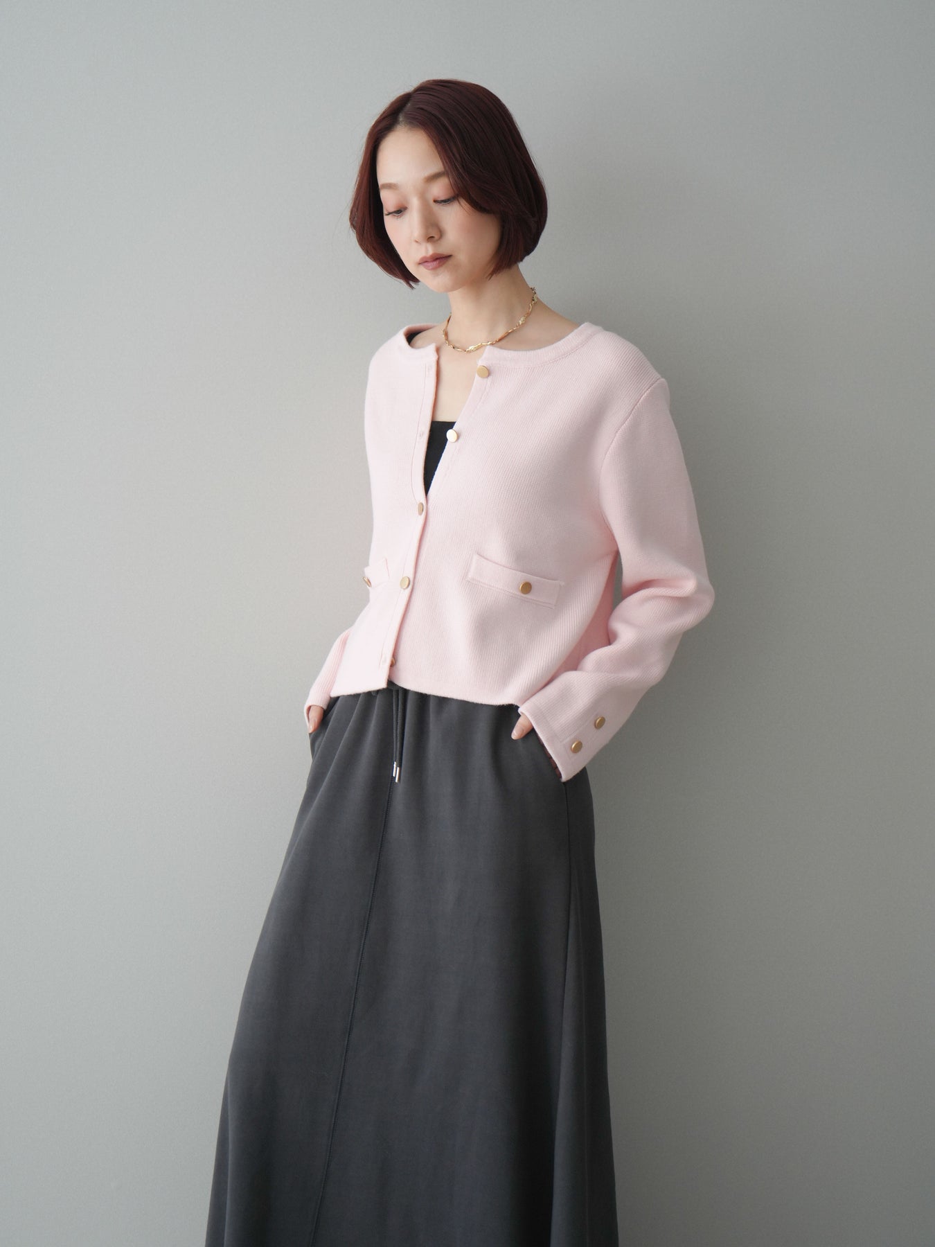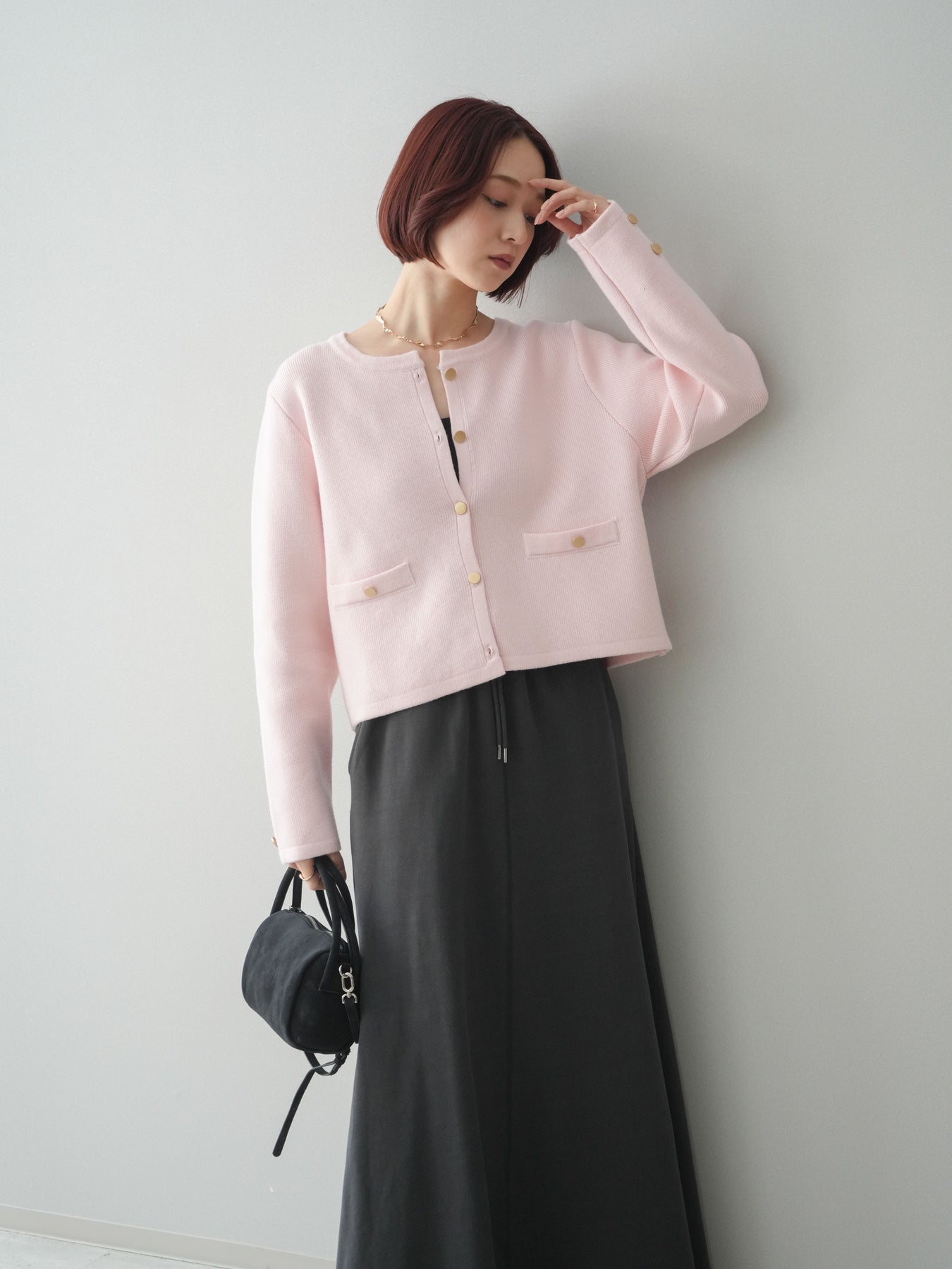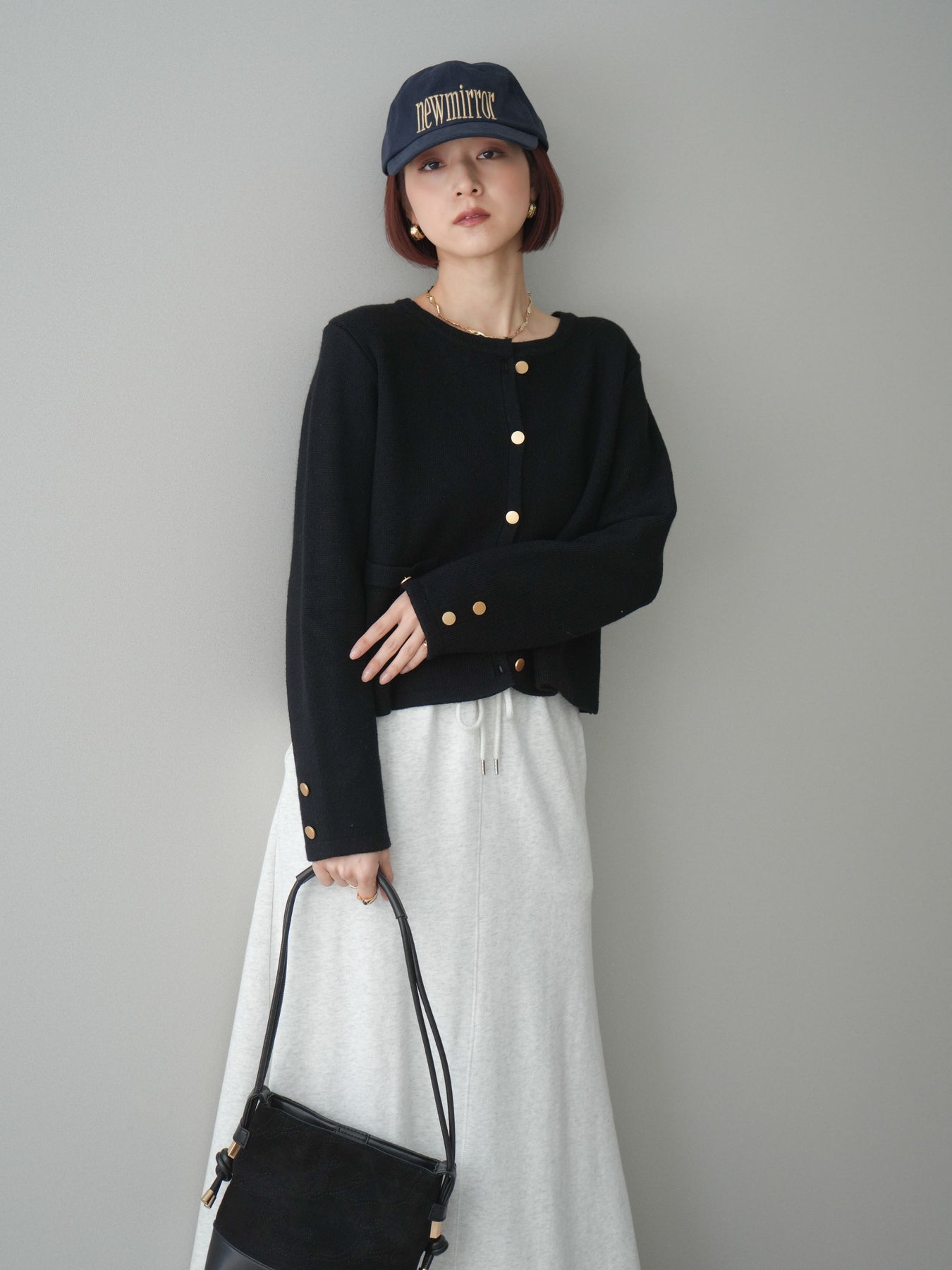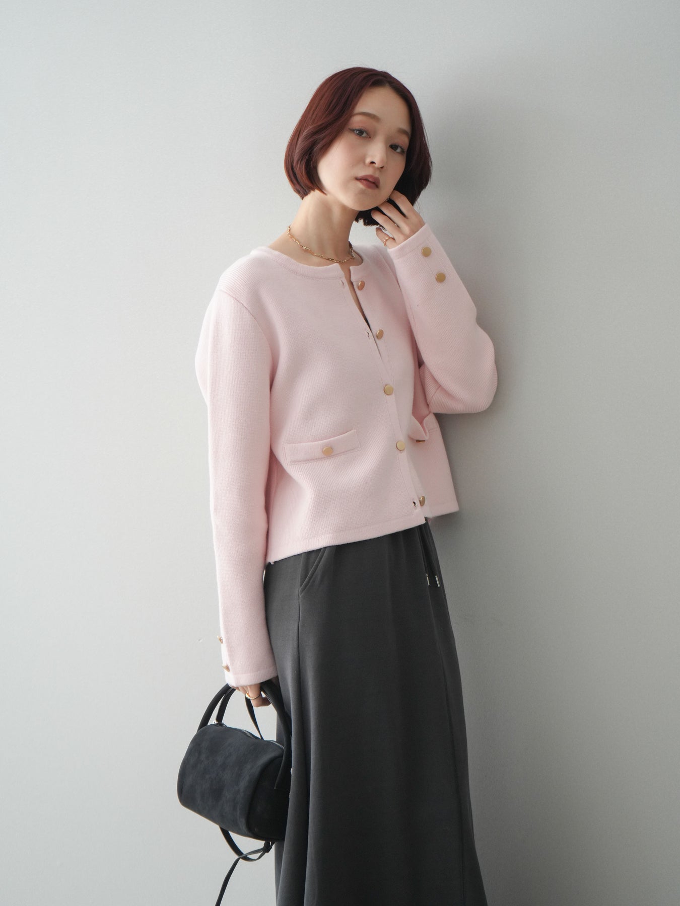 ◆ [予約]ゴールドボタンノーカラーニットジャケット