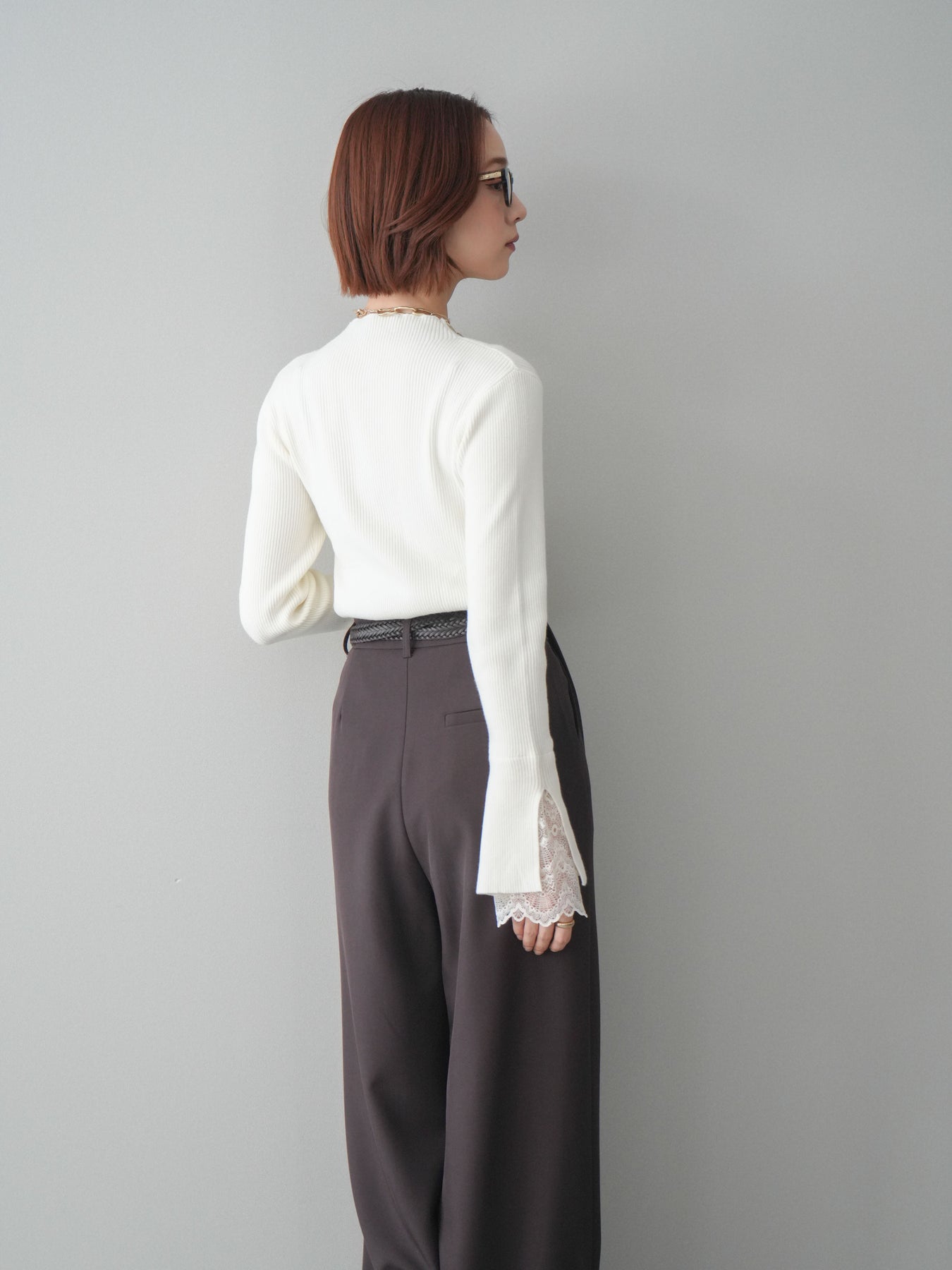 ◆ [予約]袖スカラップレースオフネックニットトップス