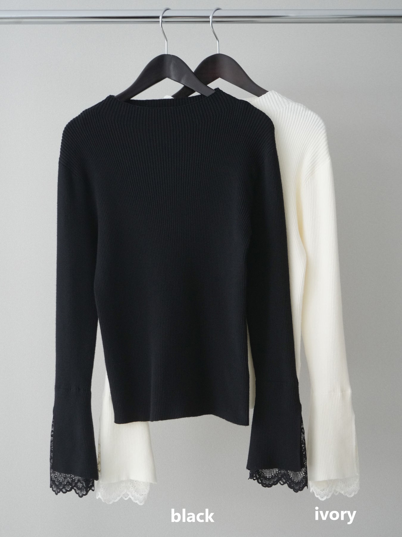 ◆ [予約]袖スカラップレースオフネックニットトップス
