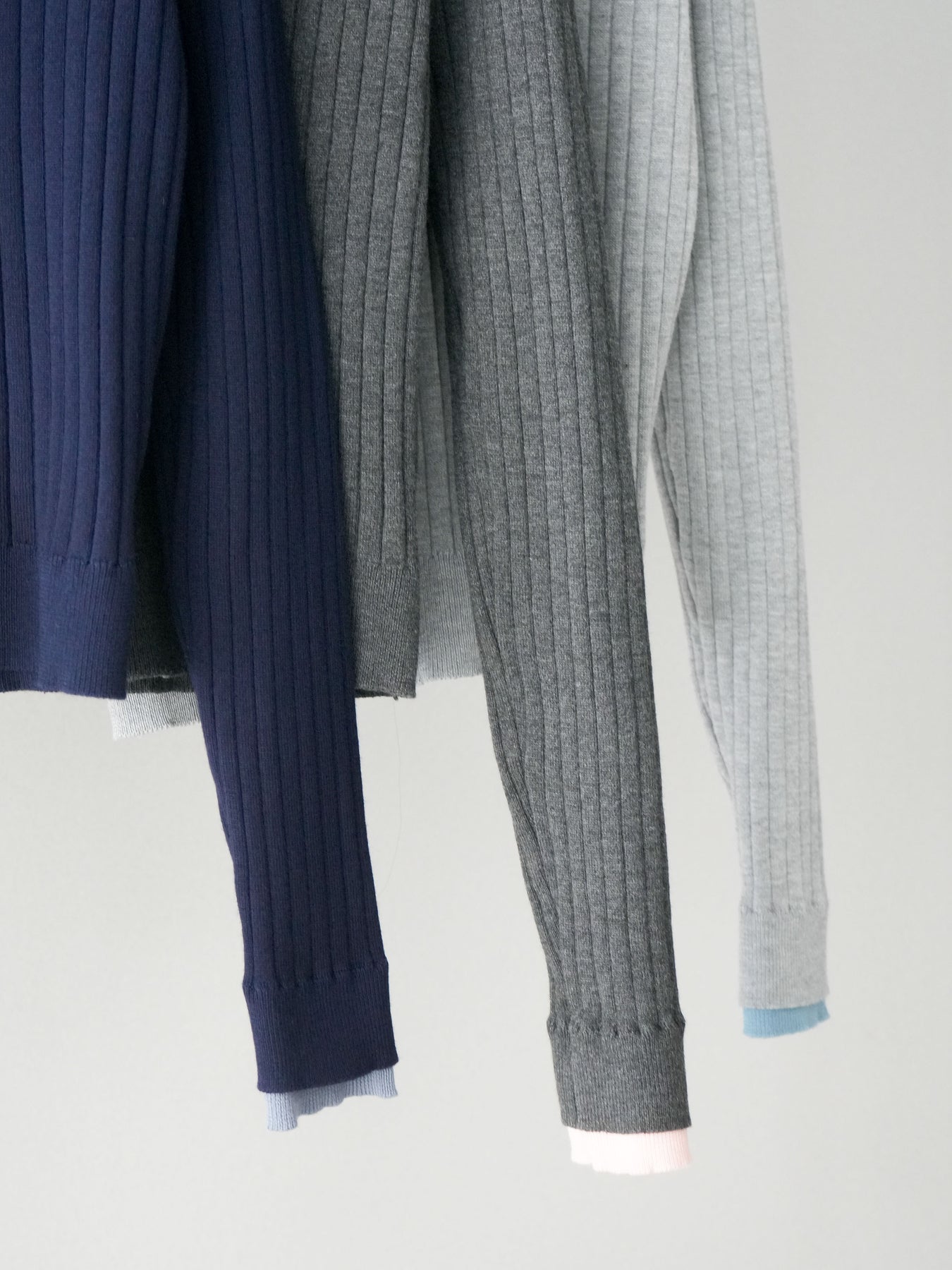 ・お手入れ方法:水温30℃以下手洗いでのお洗濯をお薦めします。素材の特性上、洗濯の際に色落ち・縮みが生じる恐れがありますので単独で・短時間でのお洗濯をお薦めします。裏返してネットに入れ手洗いコースで洗濯、洗濯後は形を整えてから干してください。※タンブラー乾燥は控えてください。 濡れたままの状態で擦れると、色落ち色移りすることがあります。つけ置き洗いや雨や汗で濡れたまま放置は避け、速やかに処理してください。着用中の摩擦や汗、水濡れ、濃淡差があるものとの重ね着にご注意ください。 また、素材の特性上伸びやすい為ハンガーの使用はお控えいただき畳んで保管ください。