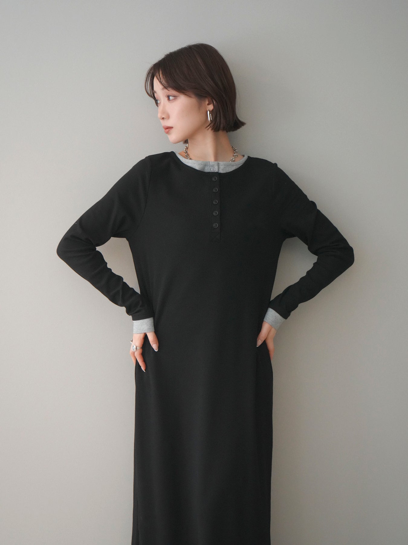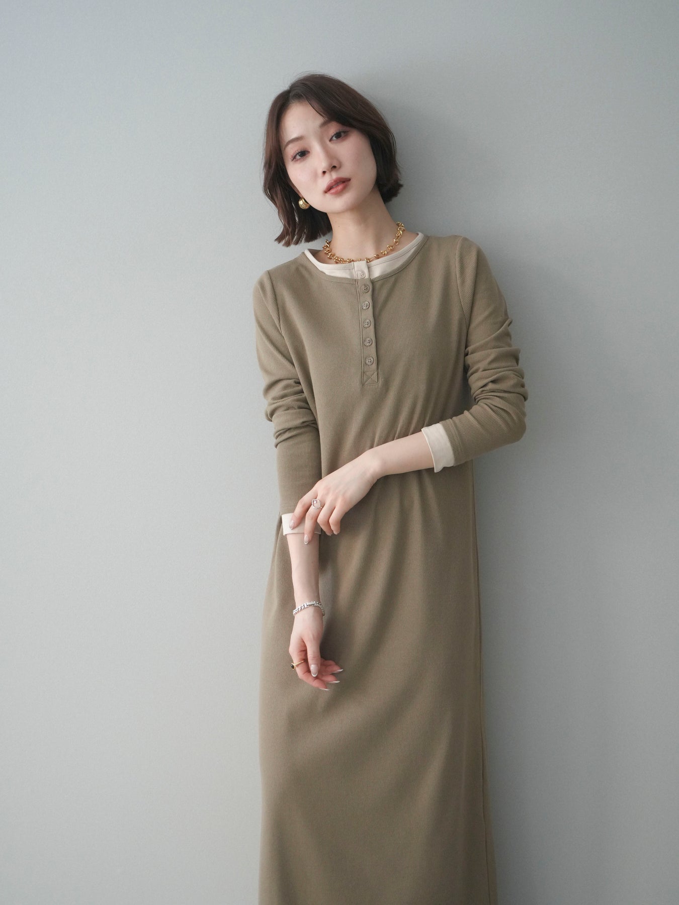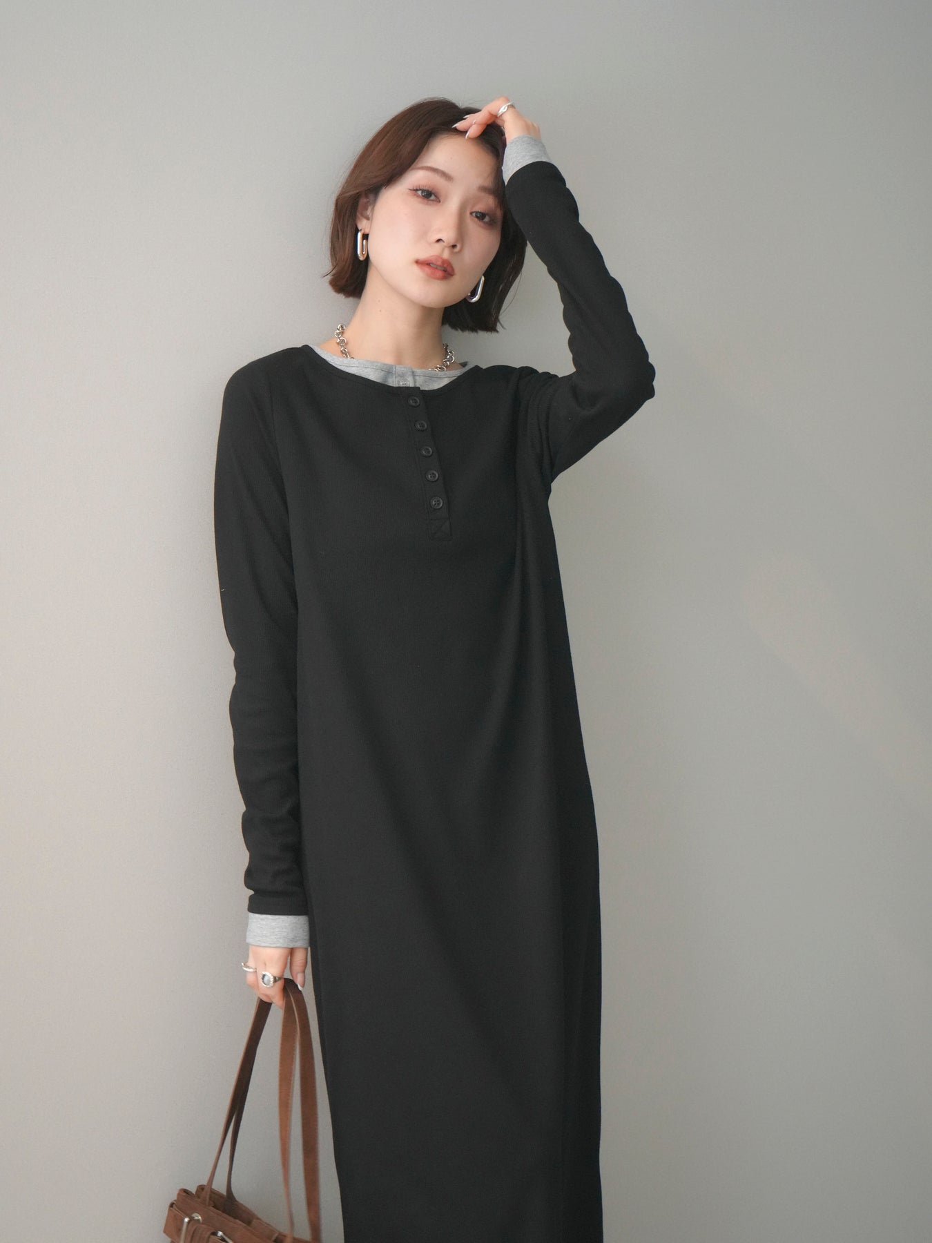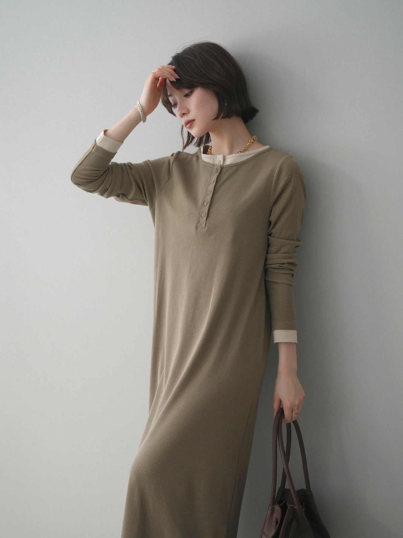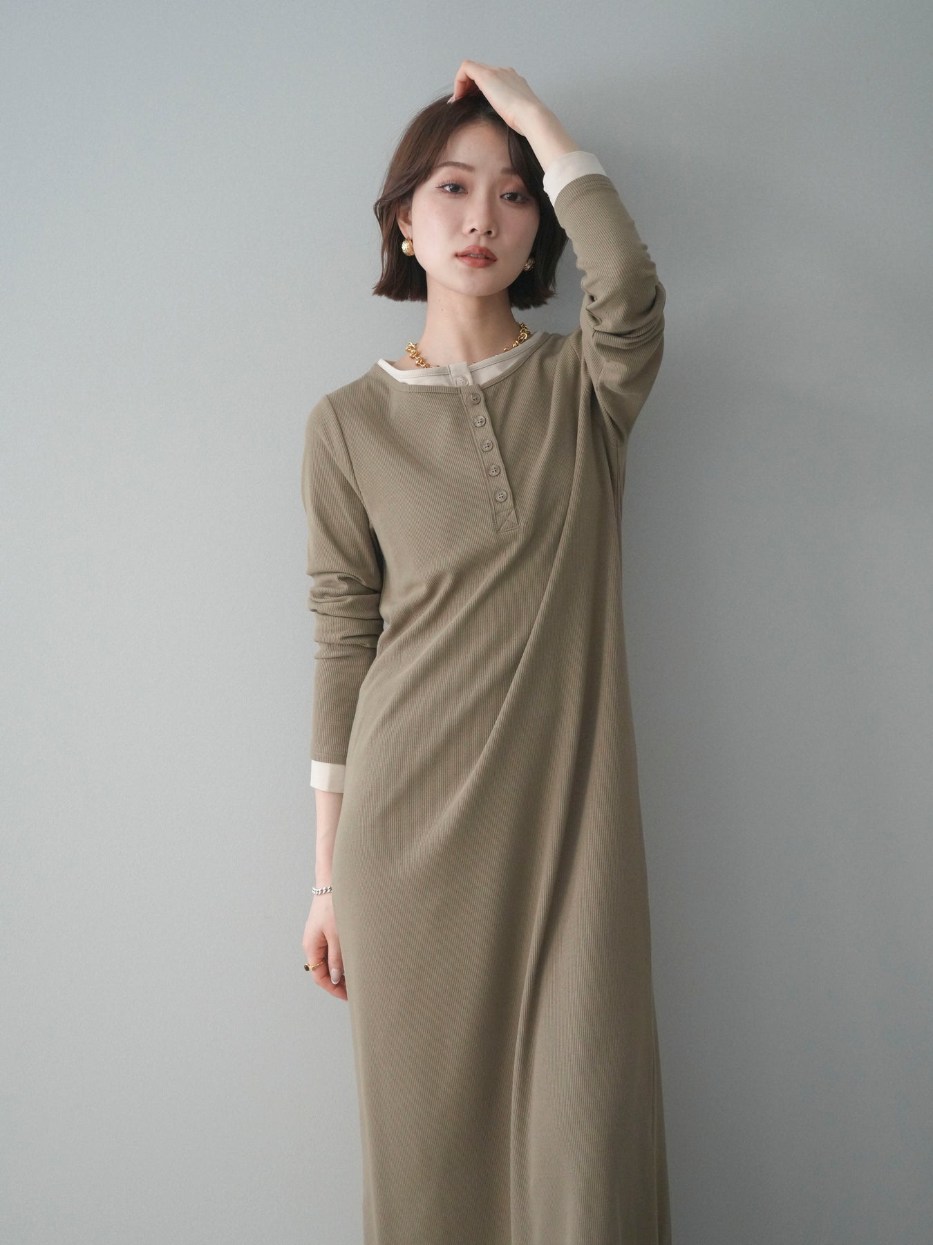 ◆ [予約]配色レイヤードヘンリーネックカットリブワンピース