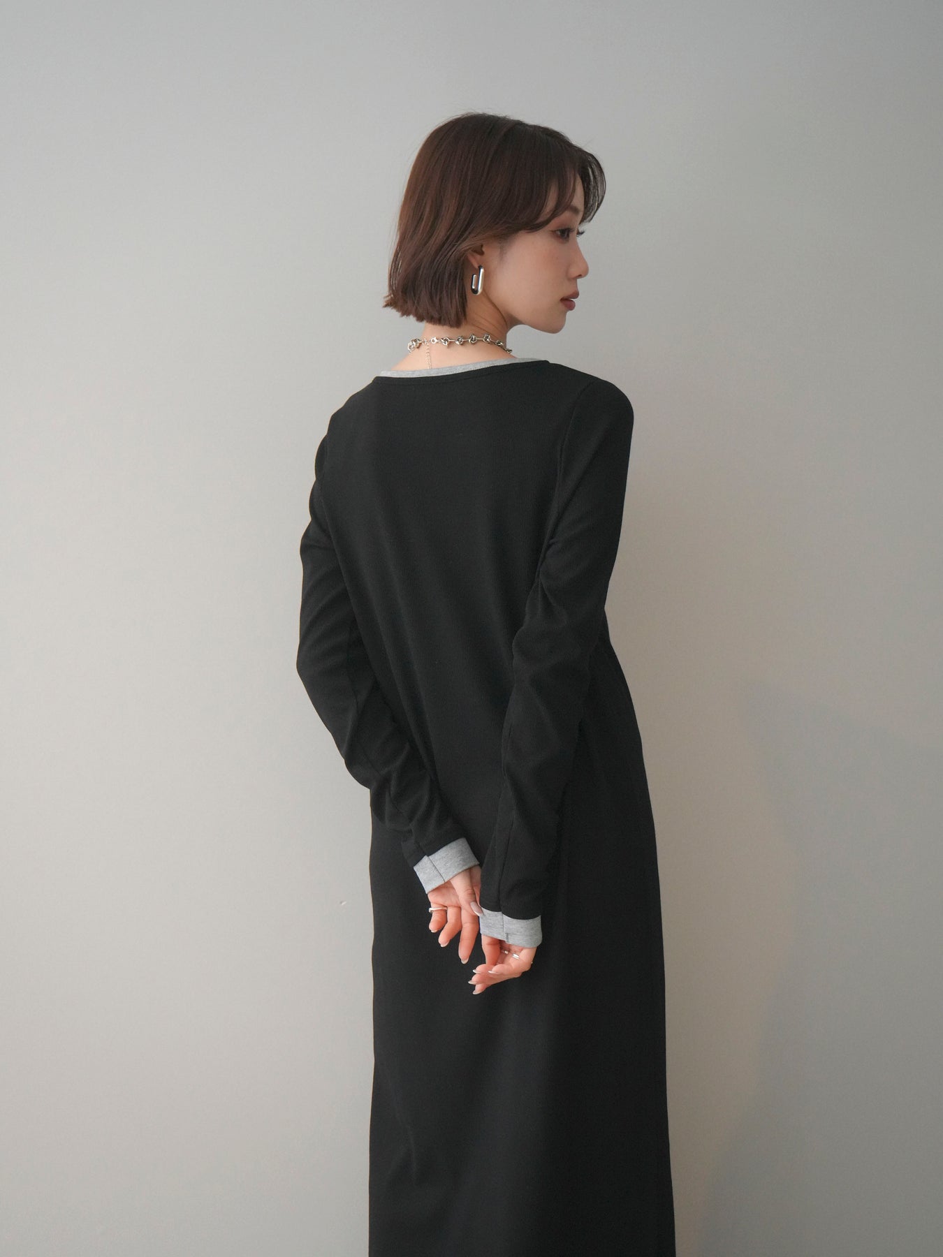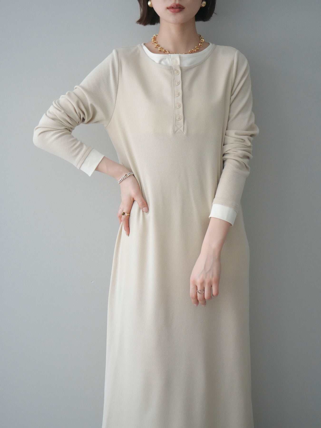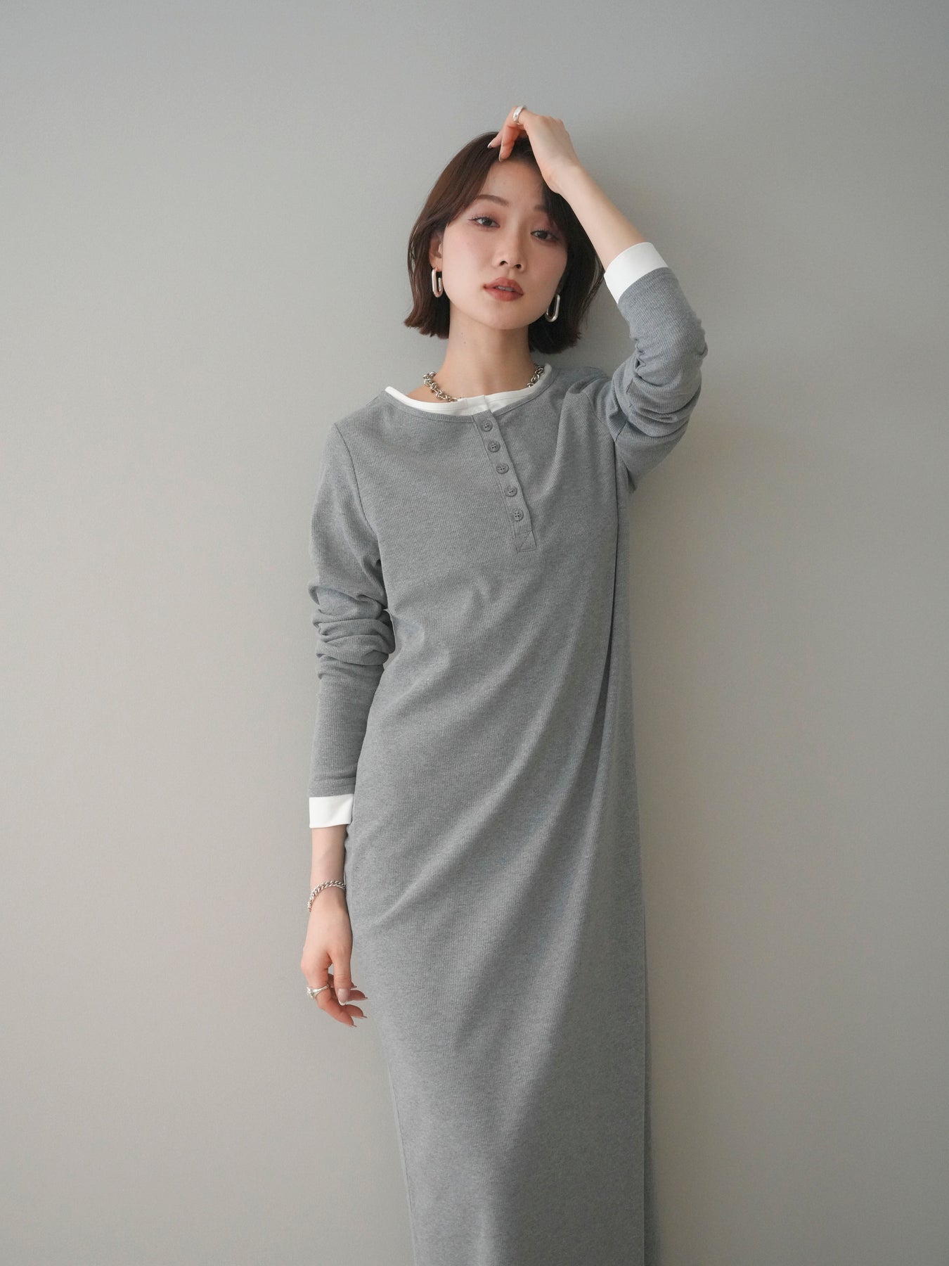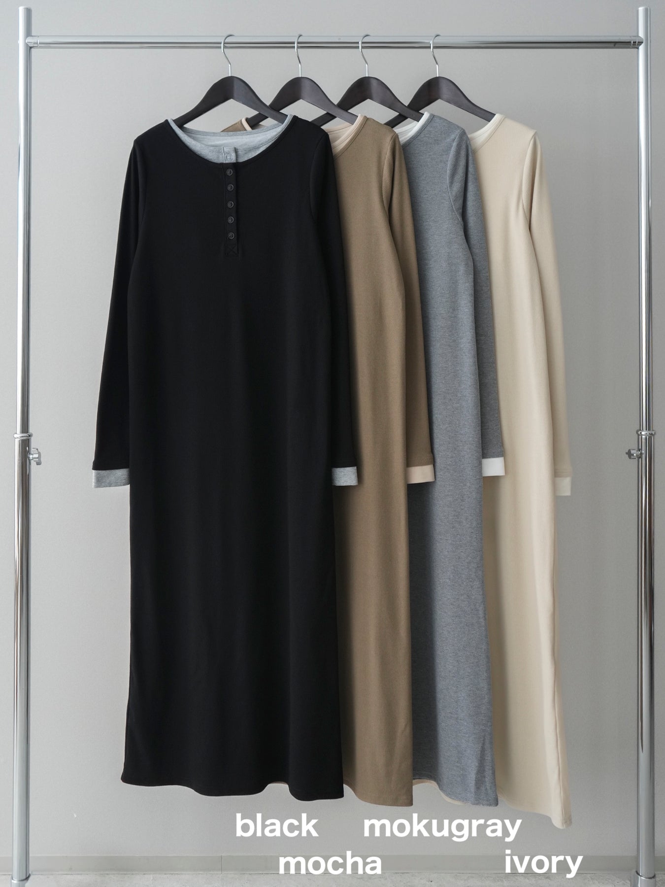 ◆ [予約]配色レイヤードヘンリーネックカットリブワンピース