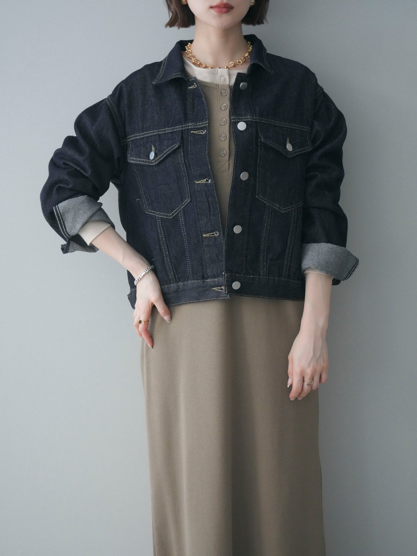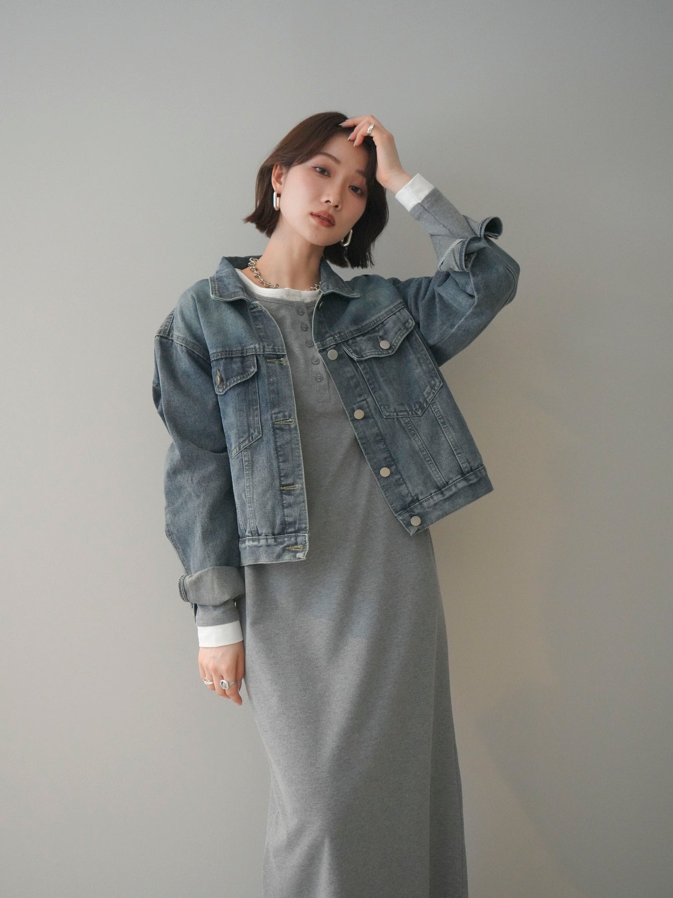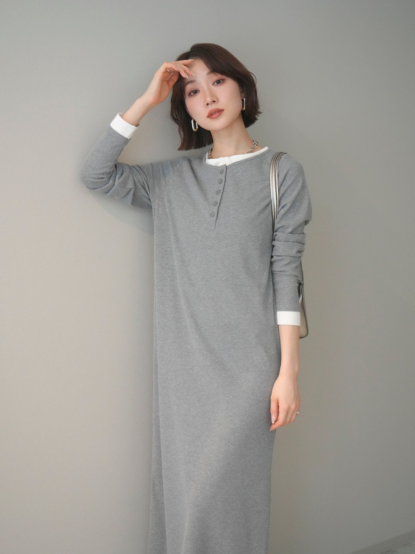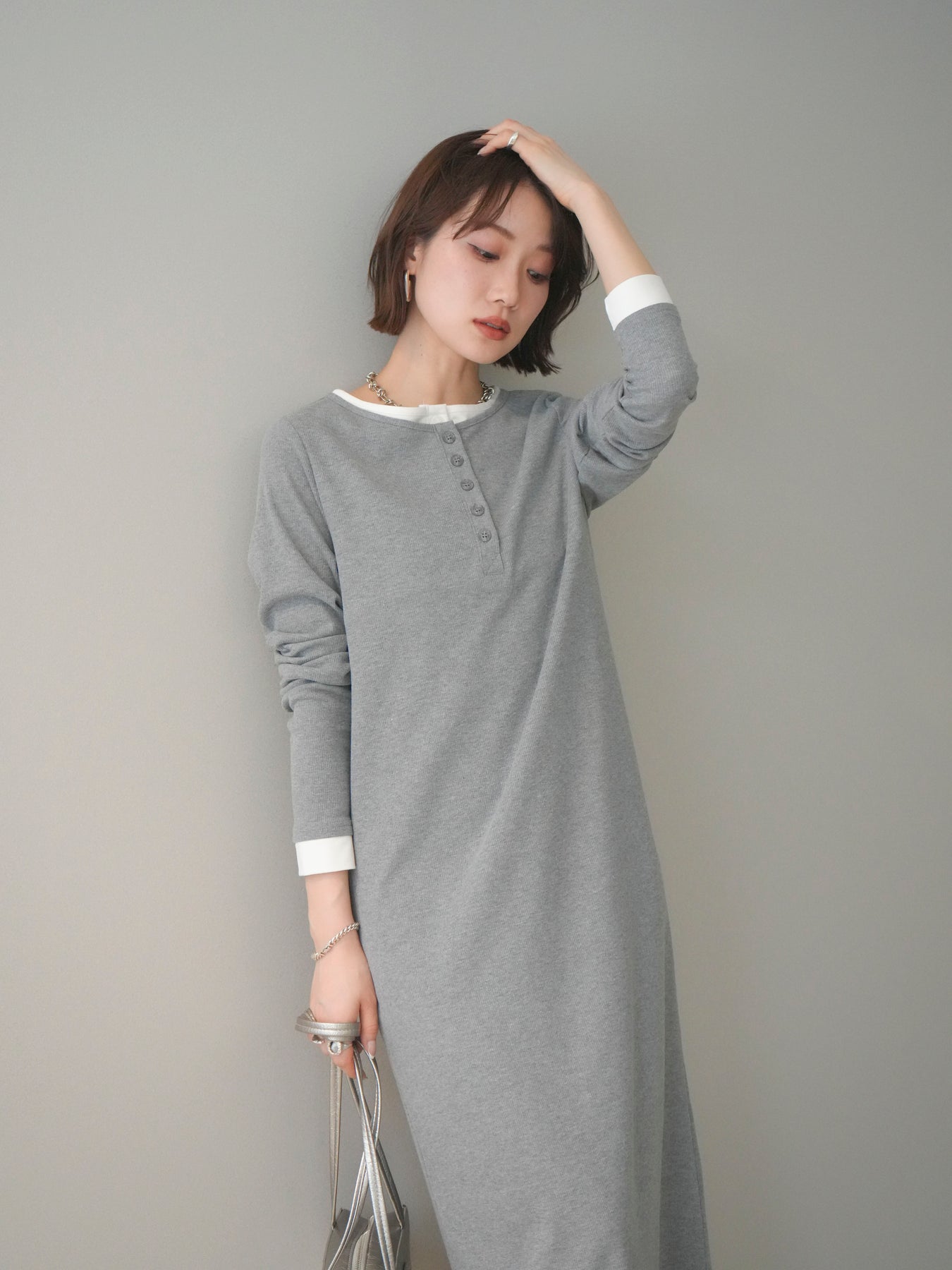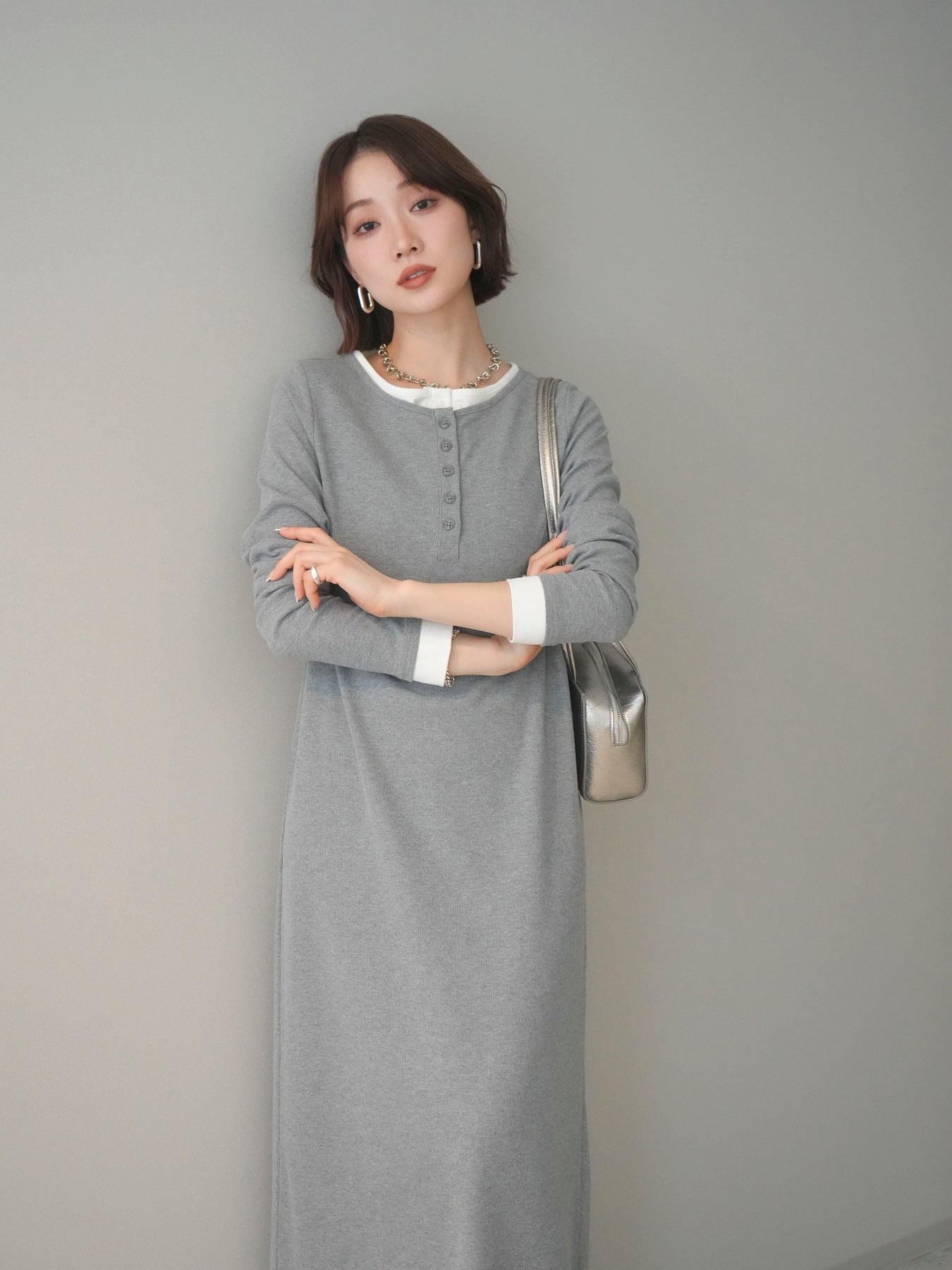 ◆ [予約]配色レイヤードヘンリーネックカットリブワンピース