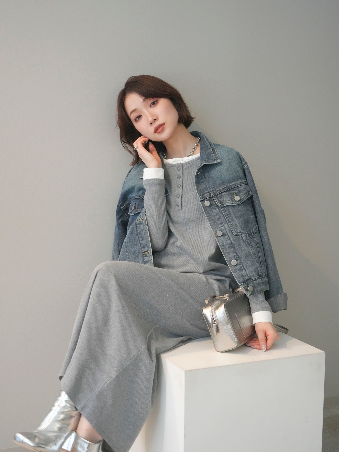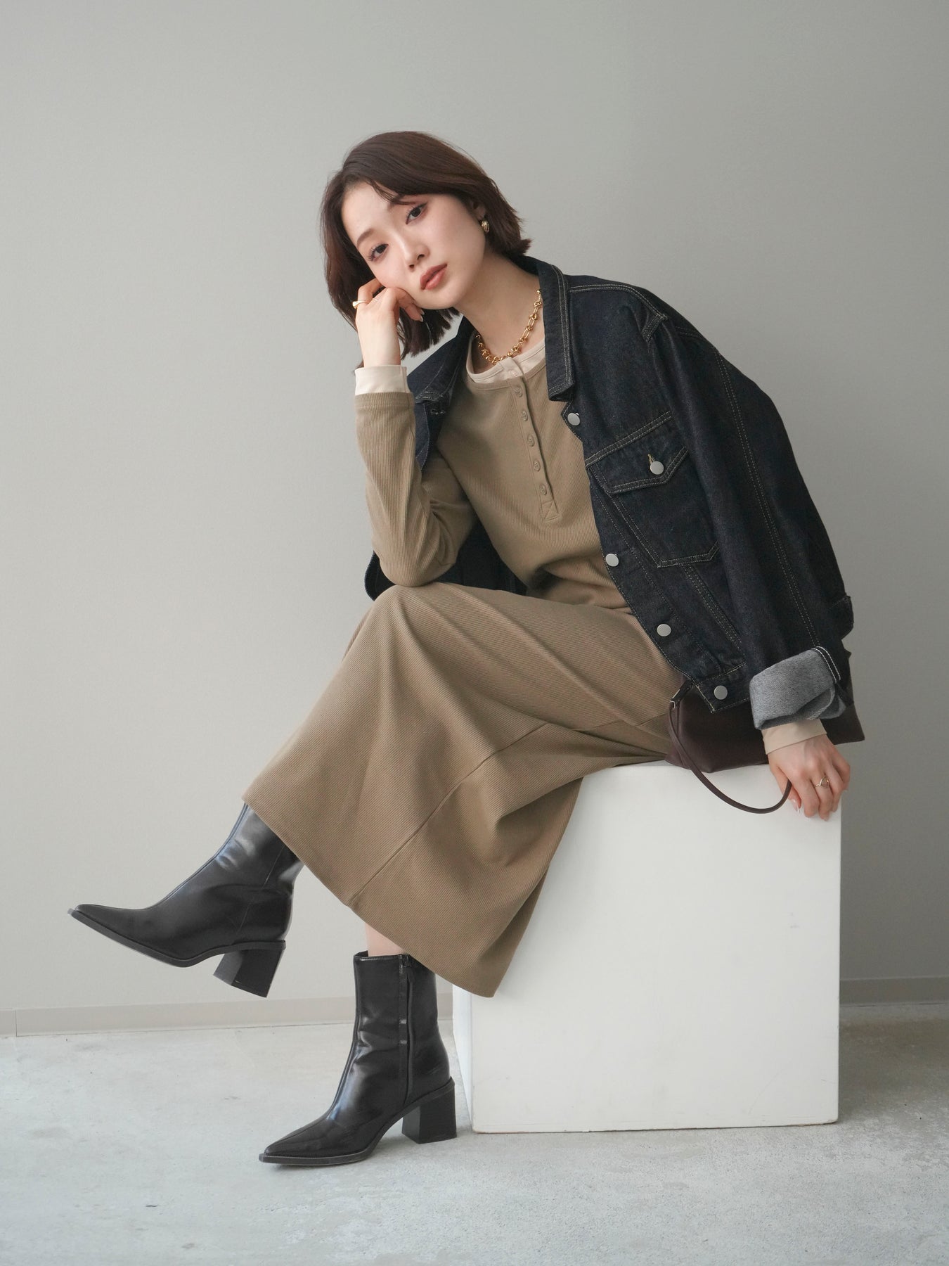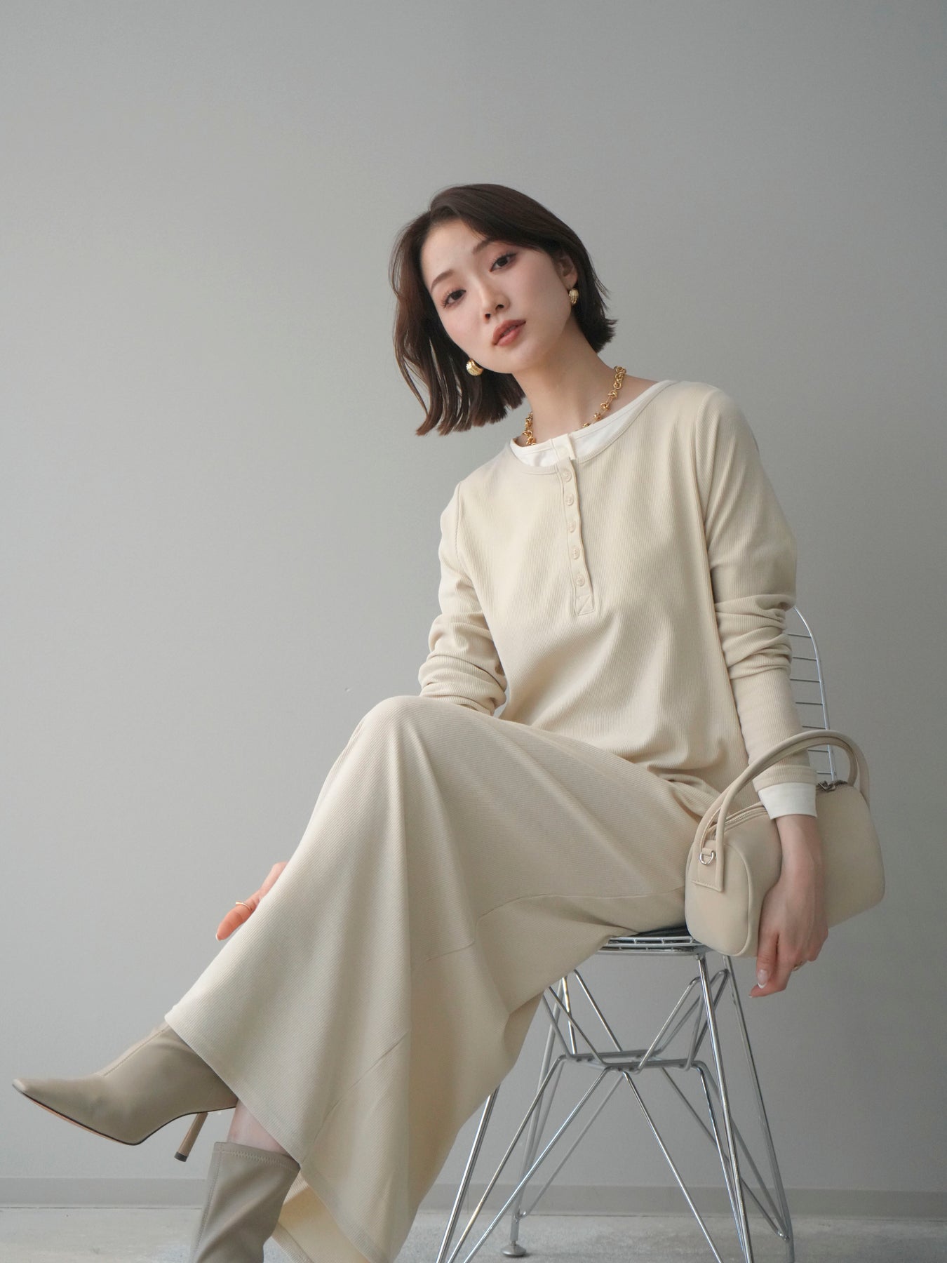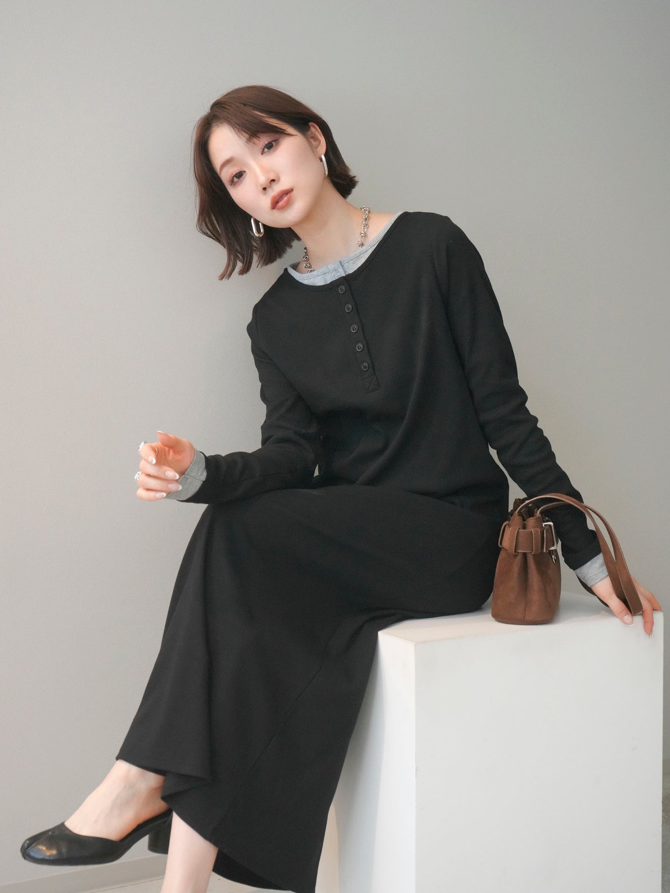 [予約]配色レイヤードヘンリーネックカットリブワンピース + [予約]配色レイヤードヘンリーネックカットリブワンピース