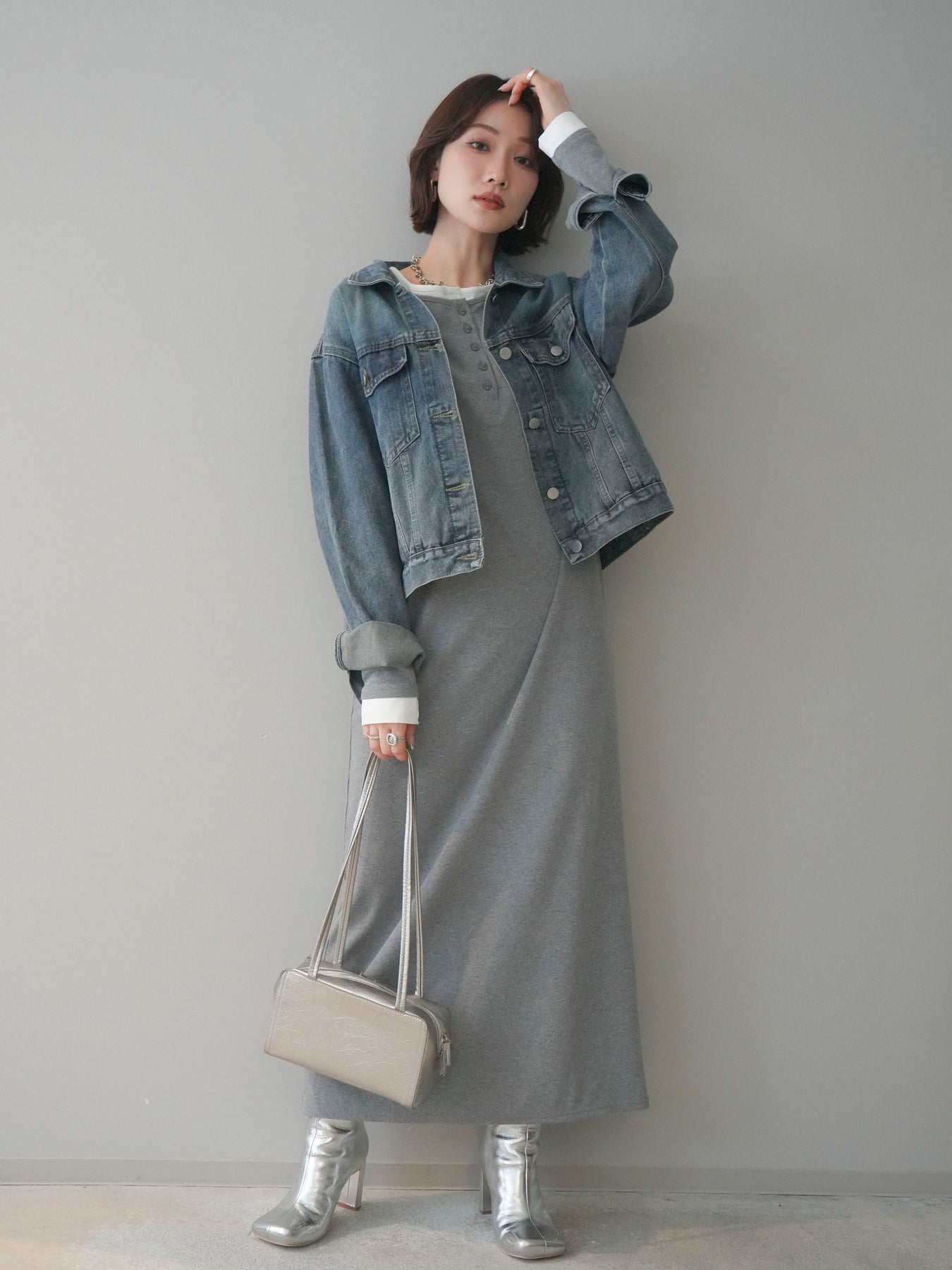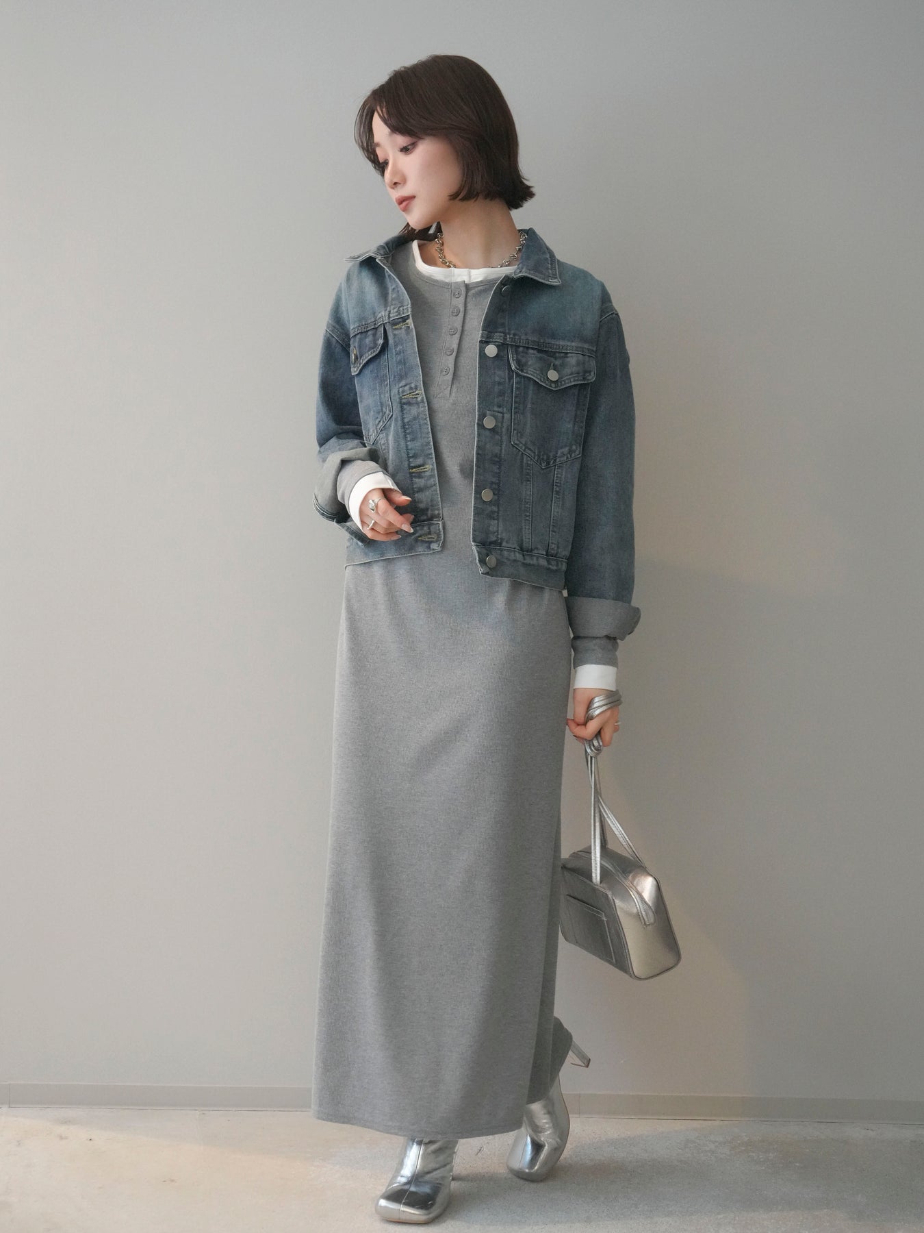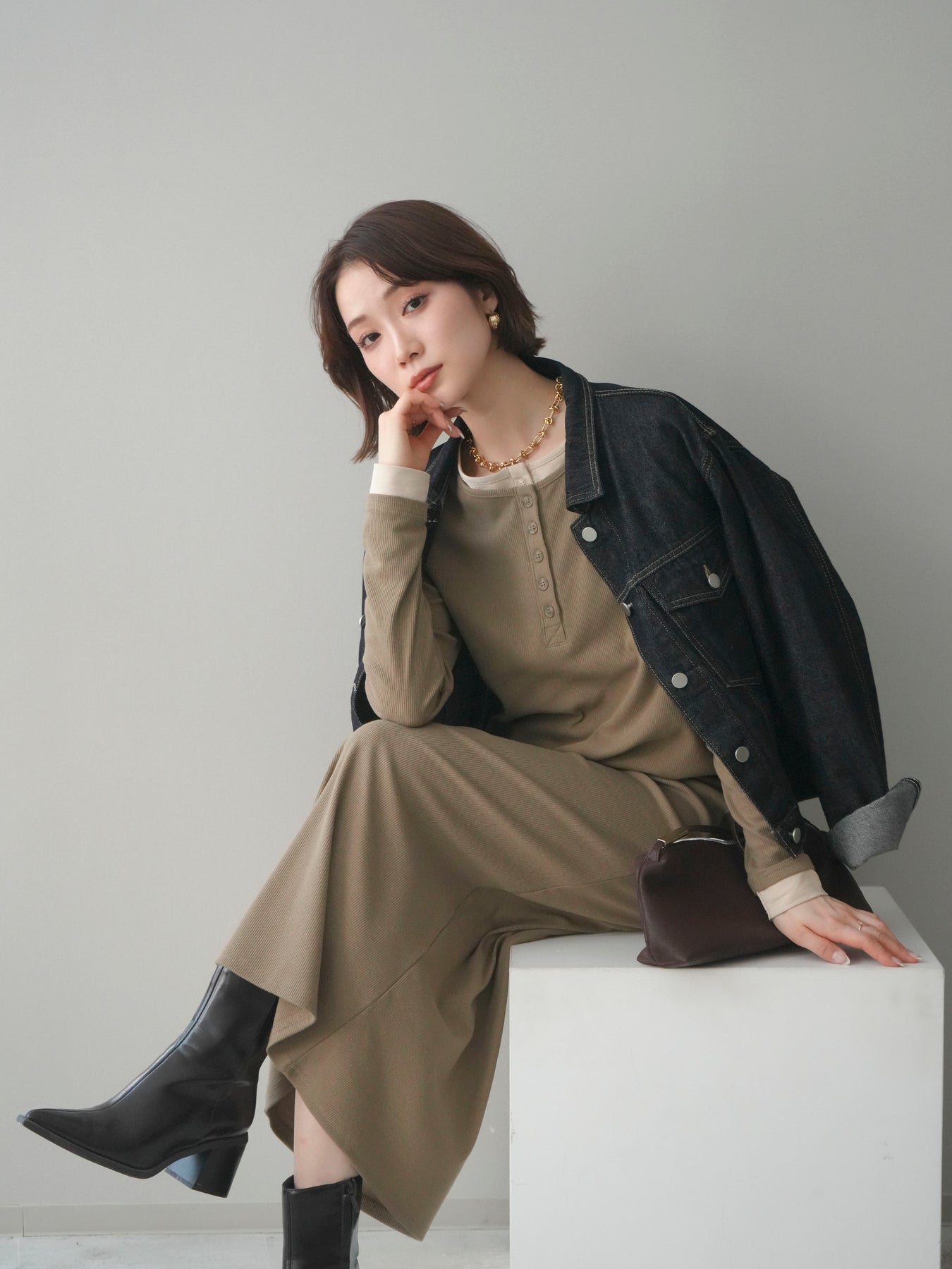 配色デザインを効かせたレイヤード風のヘンリーネックカットリブワンピース。 首元と袖口に覗くコントラストが、シンプルな中にさりげないアクセントを添えています。 程よく身体に沿うリブ素材は、縦ラインを強調し、すっきりとした印象に。 フロントのヘンリーネックデザインが抜け感を生み、ボタンの開け閉めで表情の変化も楽しめます。 一枚でスタイルが完成し、シューズや小物次第で雰囲気を切り替えられる、着回し力の高い一着です。 ※ボトムス、キャミソール(インナー)以外の商品は一律でインナーは付属していません。
