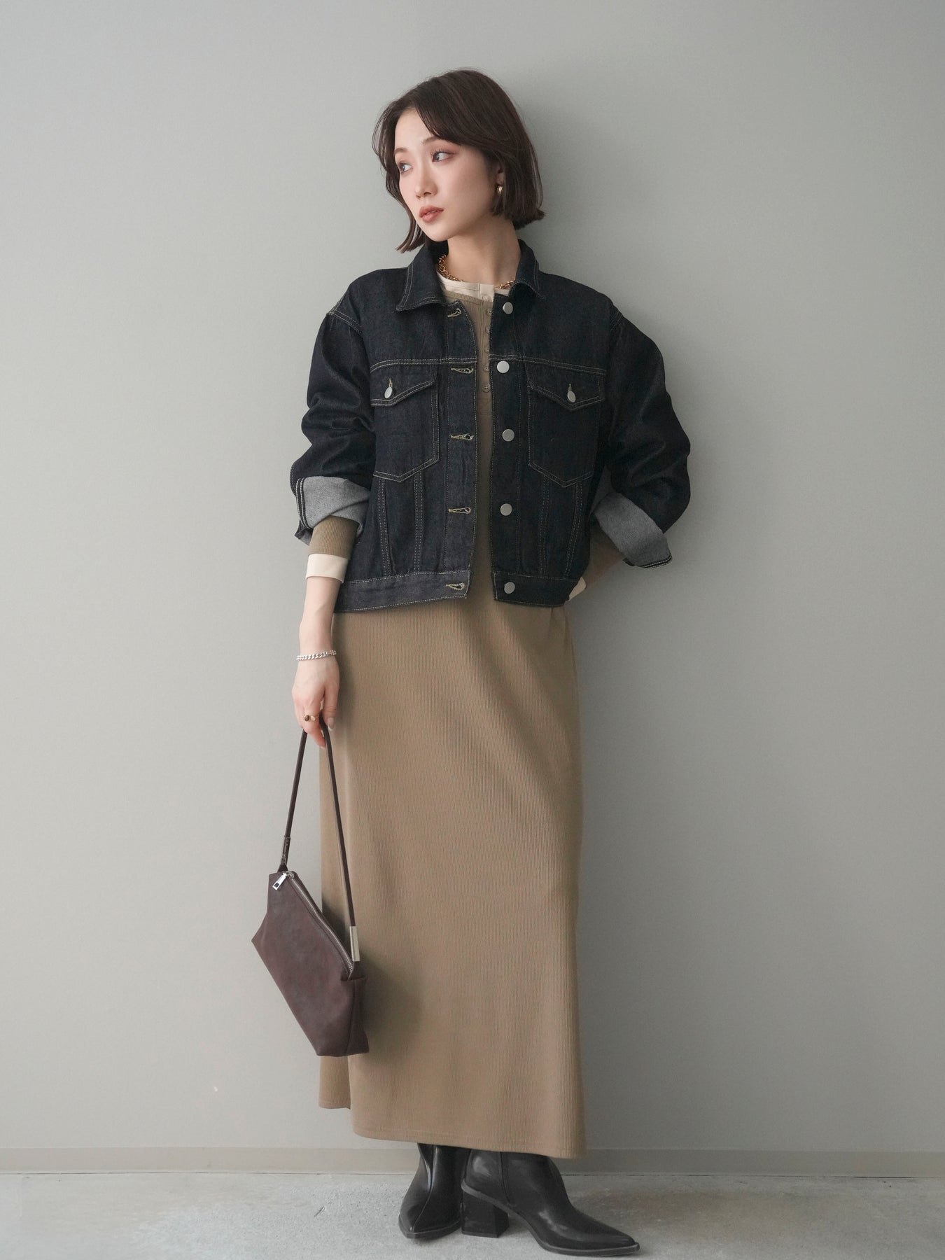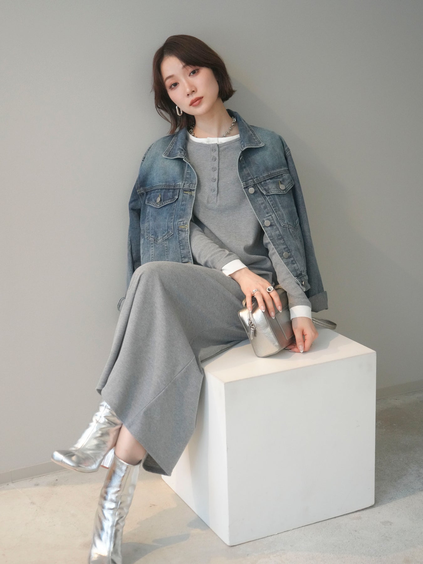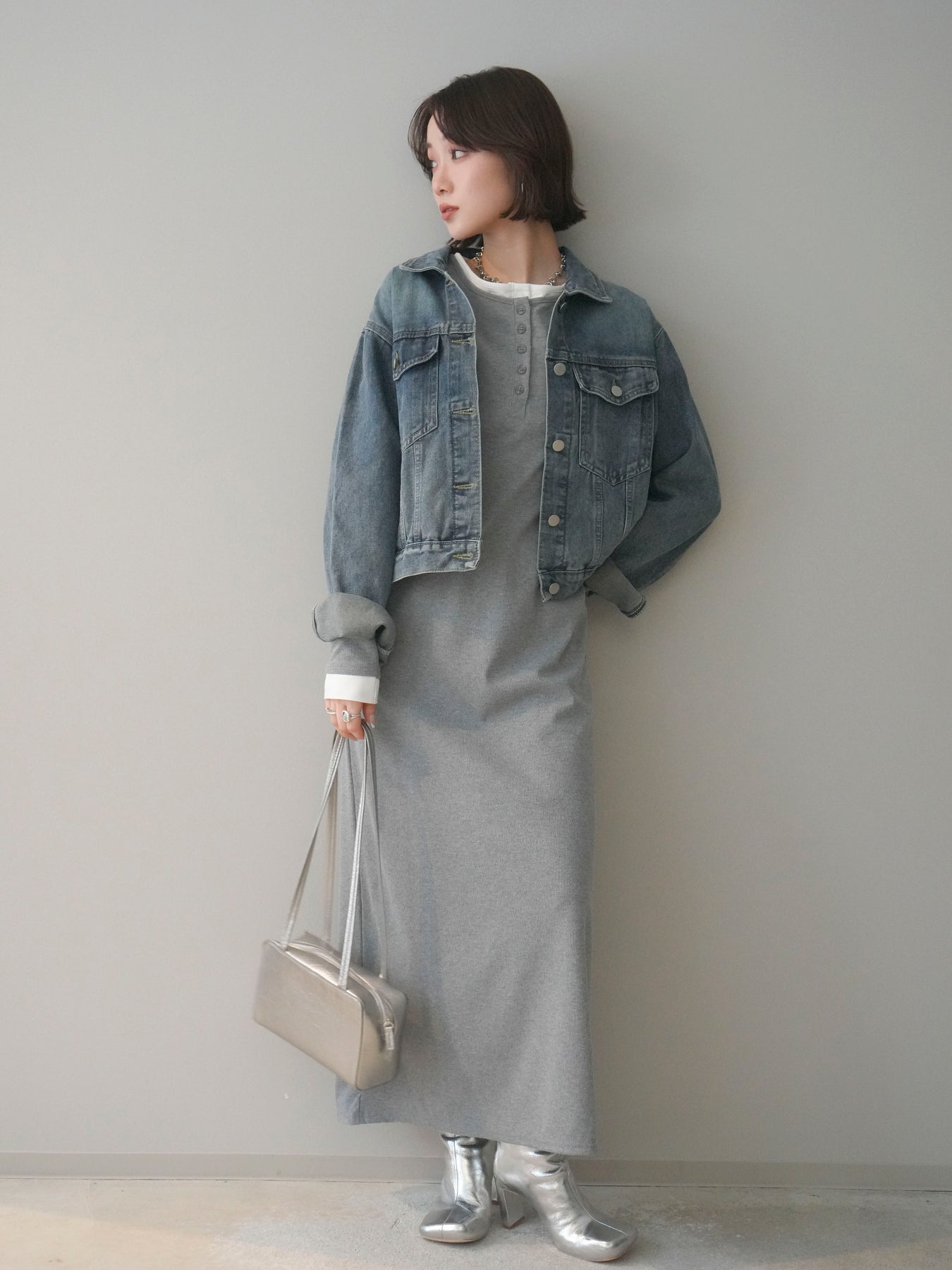 配色デザインを効かせたレイヤード風のヘンリーネックカットリブワンピース。 首元と袖口に覗くコントラストが、シンプルな中にさりげないアクセントを添えています。 程よく身体に沿うリブ素材は、縦ラインを強調し、すっきりとした印象に。 フロントのヘンリーネックデザインが抜け感を生み、ボタンの開け閉めで表情の変化も楽しめます。 一枚でスタイルが完成し、シューズや小物次第で雰囲気を切り替えられる、着回し力の高い一着です。 ※ボトムス、キャミソール(インナー)以外の商品は一律でインナーは付属していません。