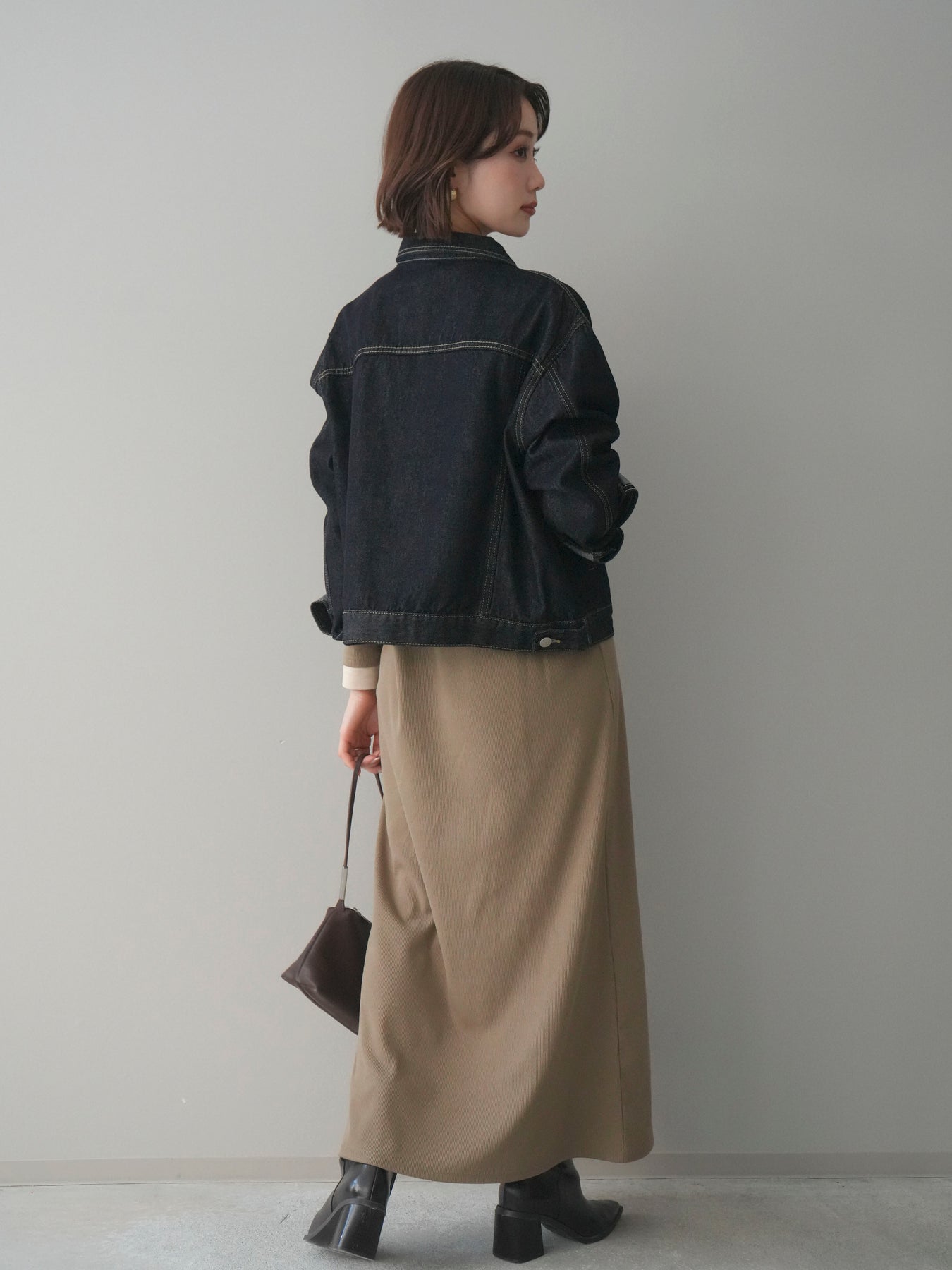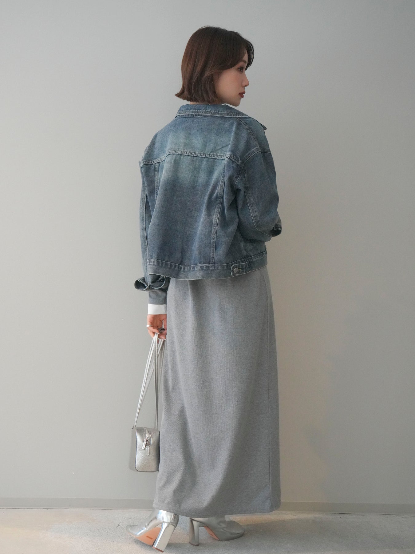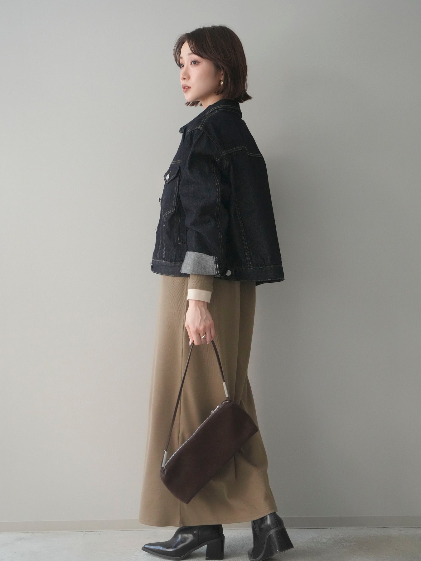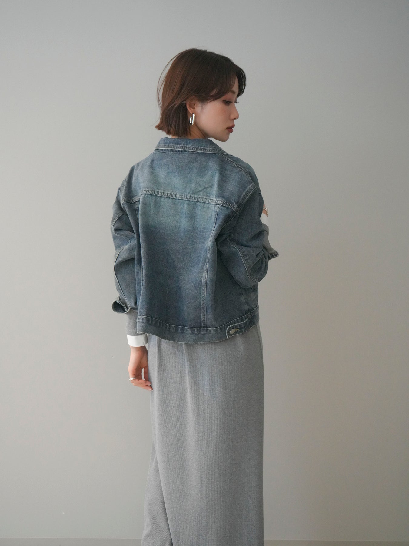 配色ステッチがさりげないアクセントになったデニムジャケット。 ベーシックなデザインをベースにしながら、ステッチ使いで表情を持たせ、シンプルすぎない仕上がりにまとめています。 程よくゆとりのあるシルエットで、インナーを選ばず重ねやすい一着。 袖をロールアップしたり、前を開けてラフに羽織ったりと、着こなしのアレンジも自在です。 ワンピースやスカート、パンツスタイルまで幅広く合わせやすく、スタイリングに程よいカジュアル感をプラスしてくれます。 季節の変わり目にも活躍し、長くワードローブに寄り添うデニムジャケットです。 ※ボトムス、キャミソール(インナー)以外の商品は一律でインナーは付属していません。