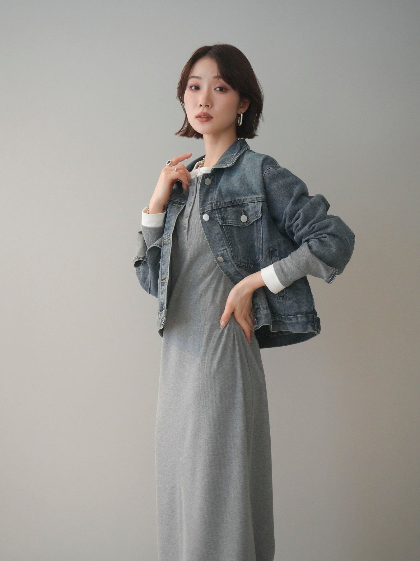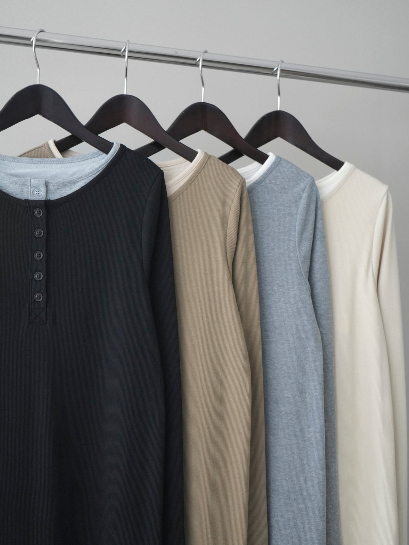 ◆ [予約]配色レイヤードヘンリーネックカットリブワンピース