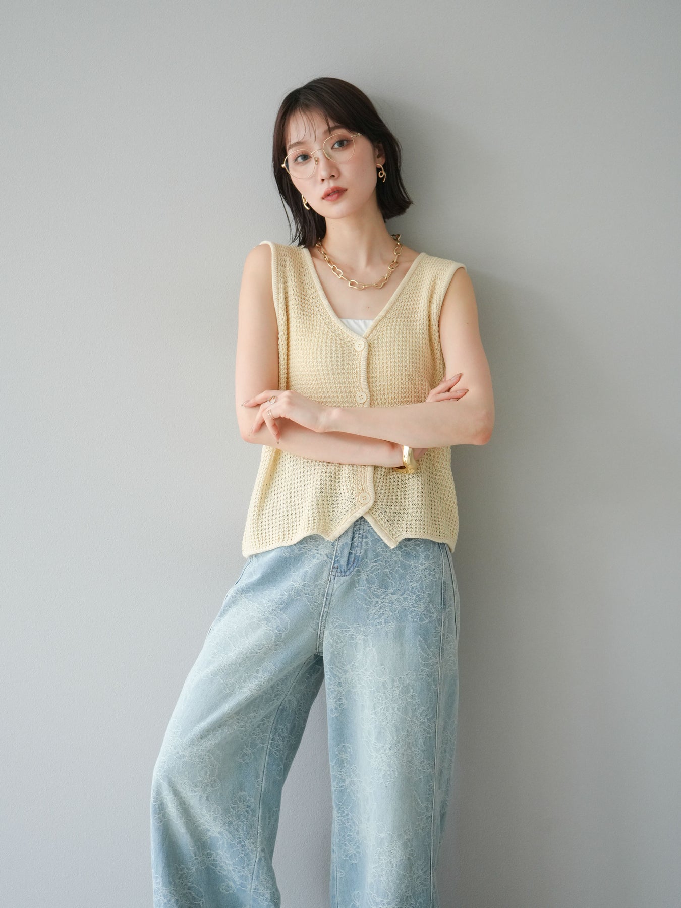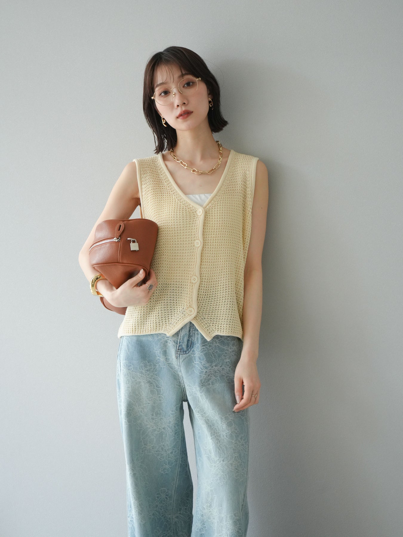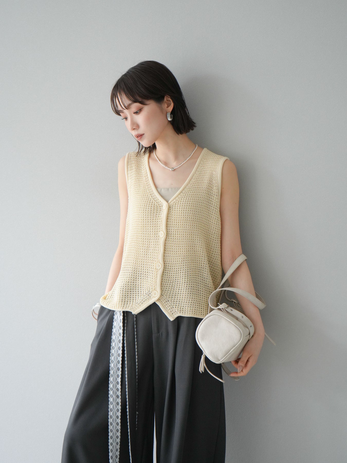立體華夫格針織背心,非常適合春夏季節。輕盈透氣的材質,即使在炎熱天氣也能保持舒適穿著。正面扣環設計,方便穿脫,也適合搭配各種風格的內搭。 V領設計,打造乾淨俐落的臉部造型,可搭配各種內衣。色彩柔和,從自然到女性化的多種風格都能輕鬆搭配。 *除下裝和吊帶背心(內衣)外,其他商品均不含內衣。