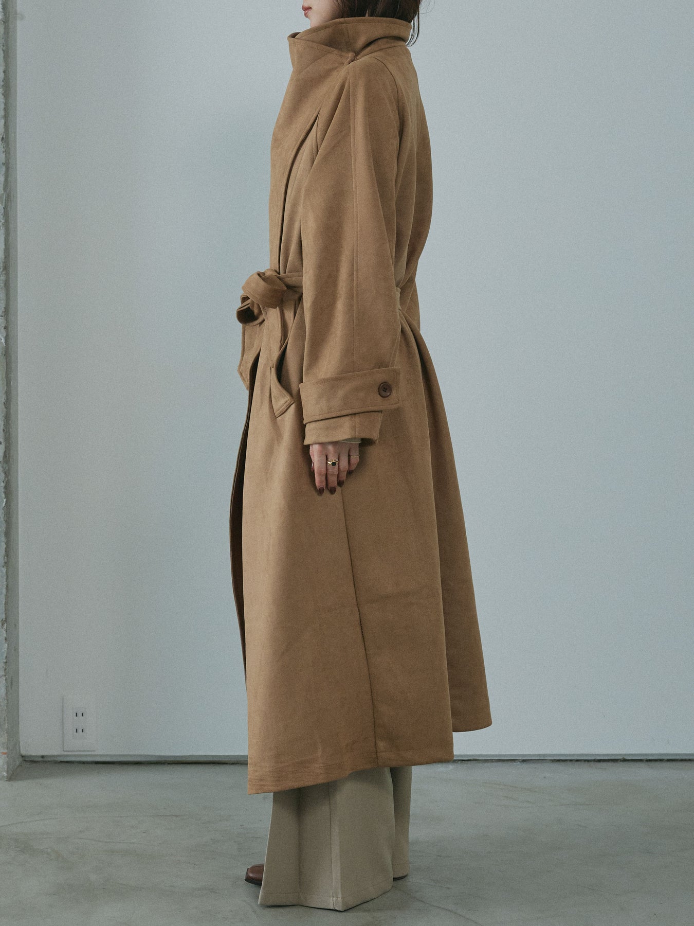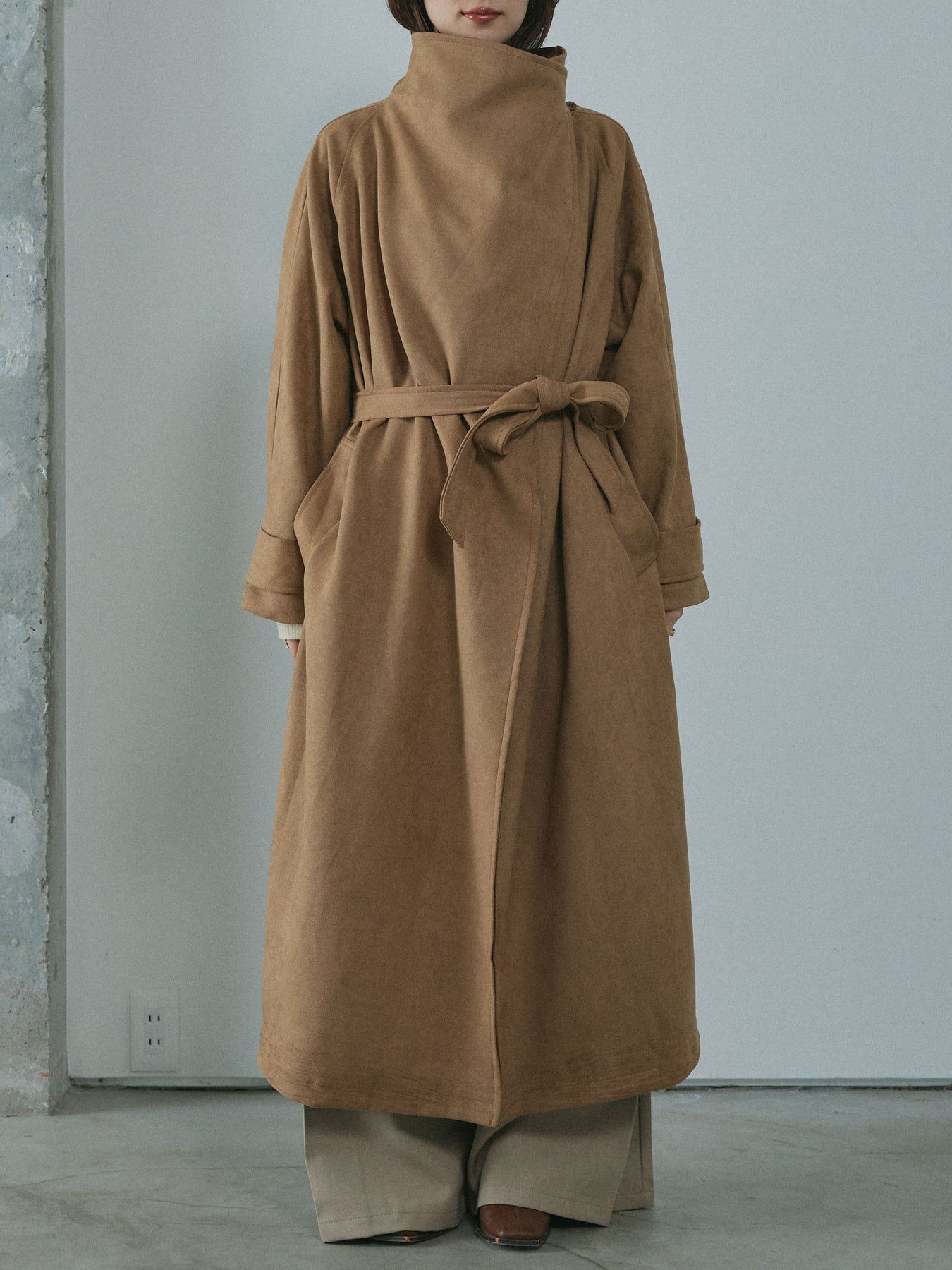 しなやかなスウェード調素材とフェイクレザーを組み合わせた、上品なムード漂うロングコート。 異素材のコントラストが洗練された印象を与え、羽織るだけでスタイルが完成する存在感のある一枚です。 ゆったりとしたシルエットながらも、落ち感のある生地が身体のラインを美しく見せ、抜け感のある大人の雰囲気を演出。 柔らかな質感で軽く羽織れるため、季節の変わり目にも活躍します。 デイリーから特別なシーンまで、幅広いスタイリングにマッチする主役アウターです。 ※ボトムス、キャミソール(インナー)以外の商品は一律でインナーは付属していません。
